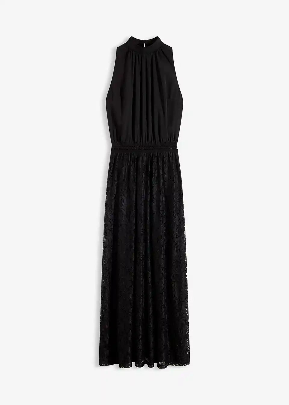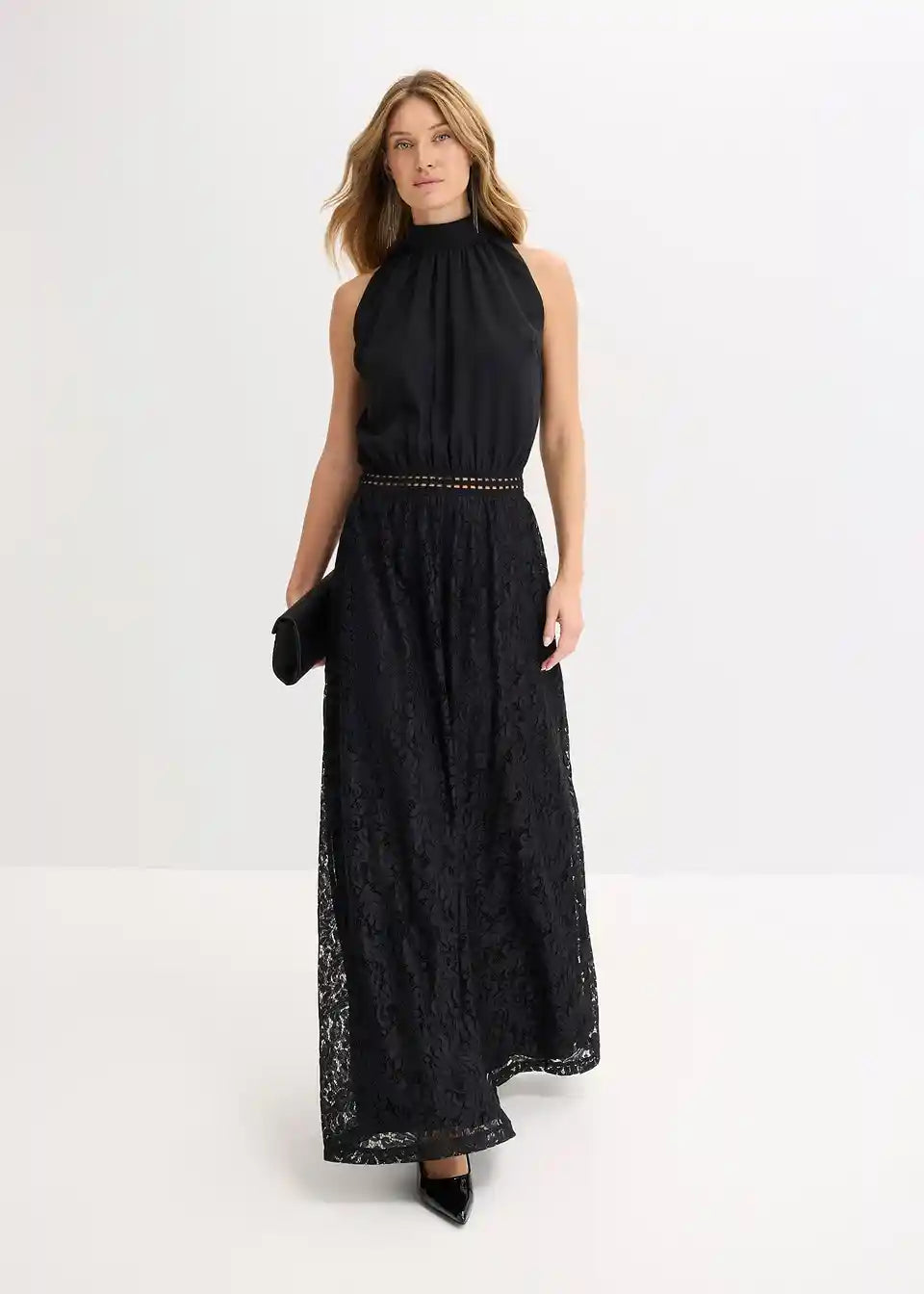 Modern und feminin: Bezauberndes Abendkleid mit Stehkragen und Rock aus romantischer Spitze