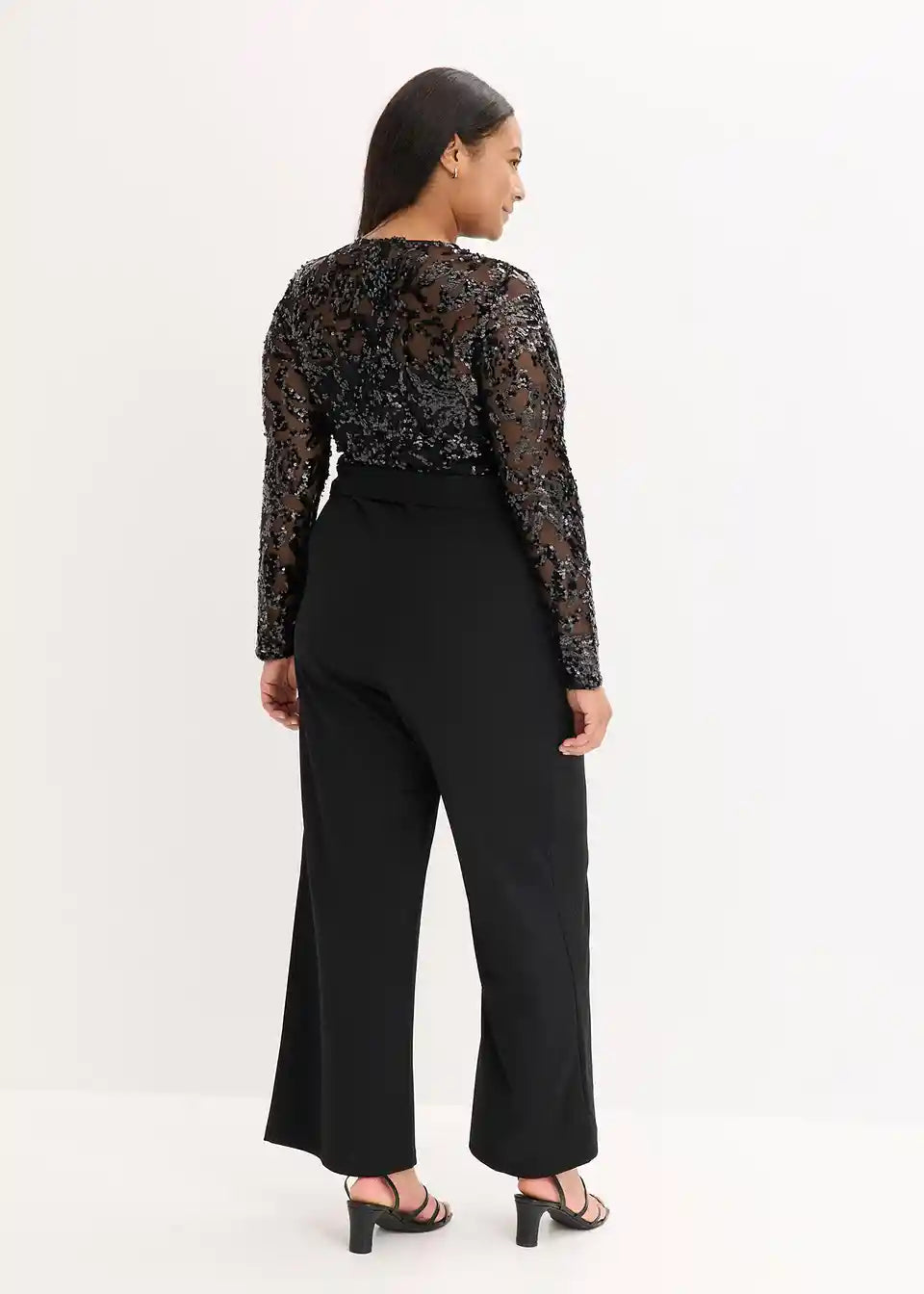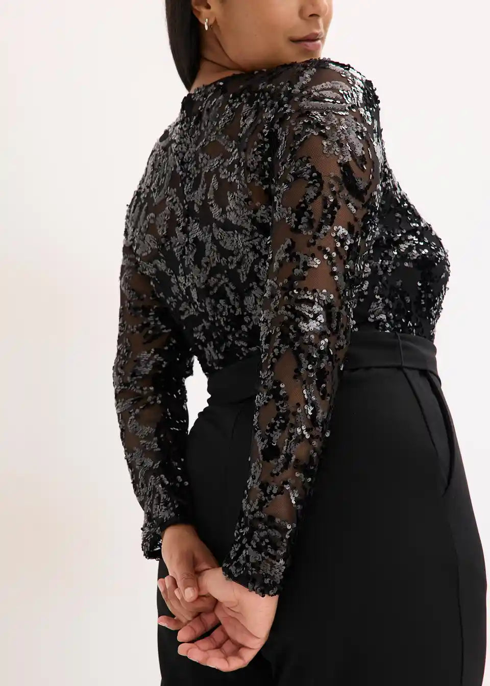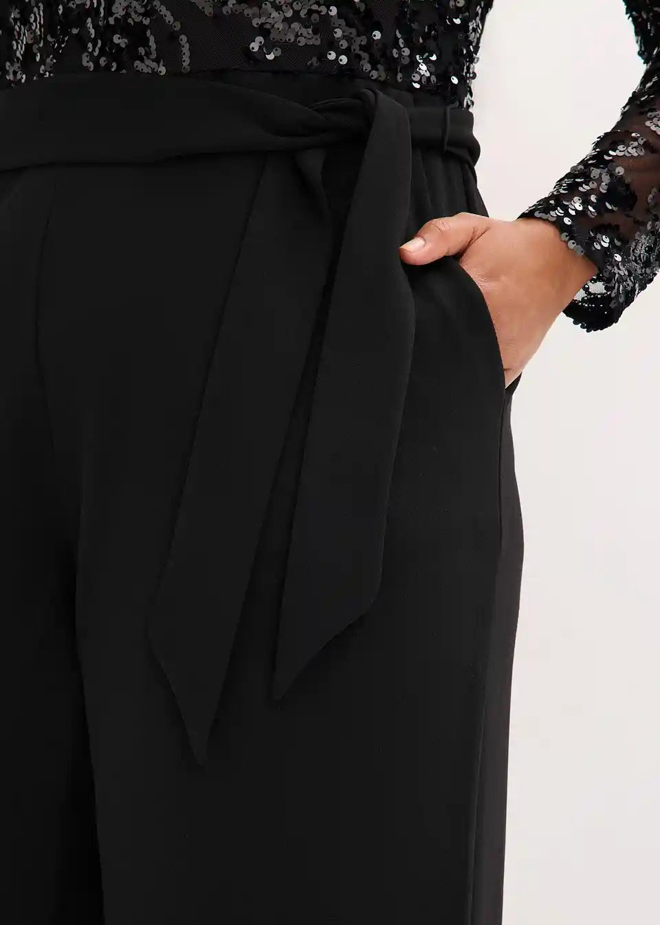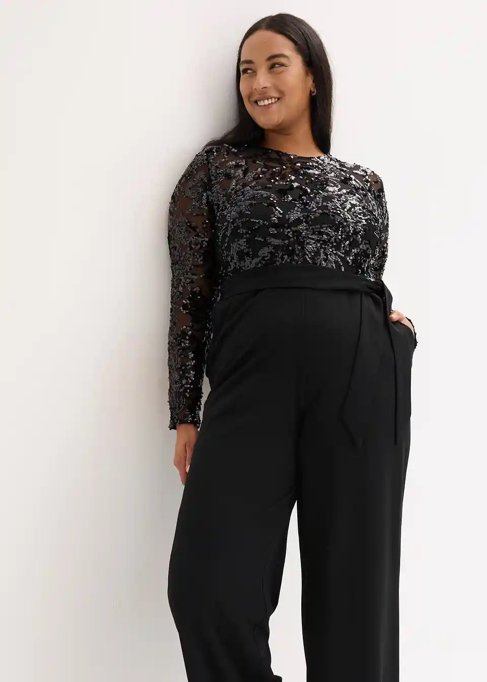 Modern und feminin: Overall mit Paillettenstickerei und Binde-Detail in der Taille