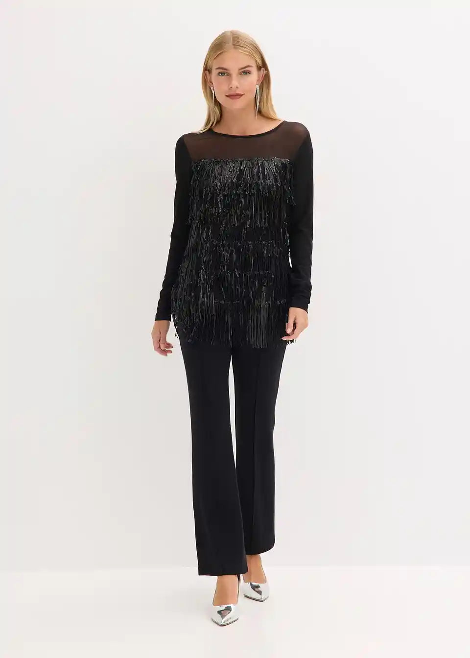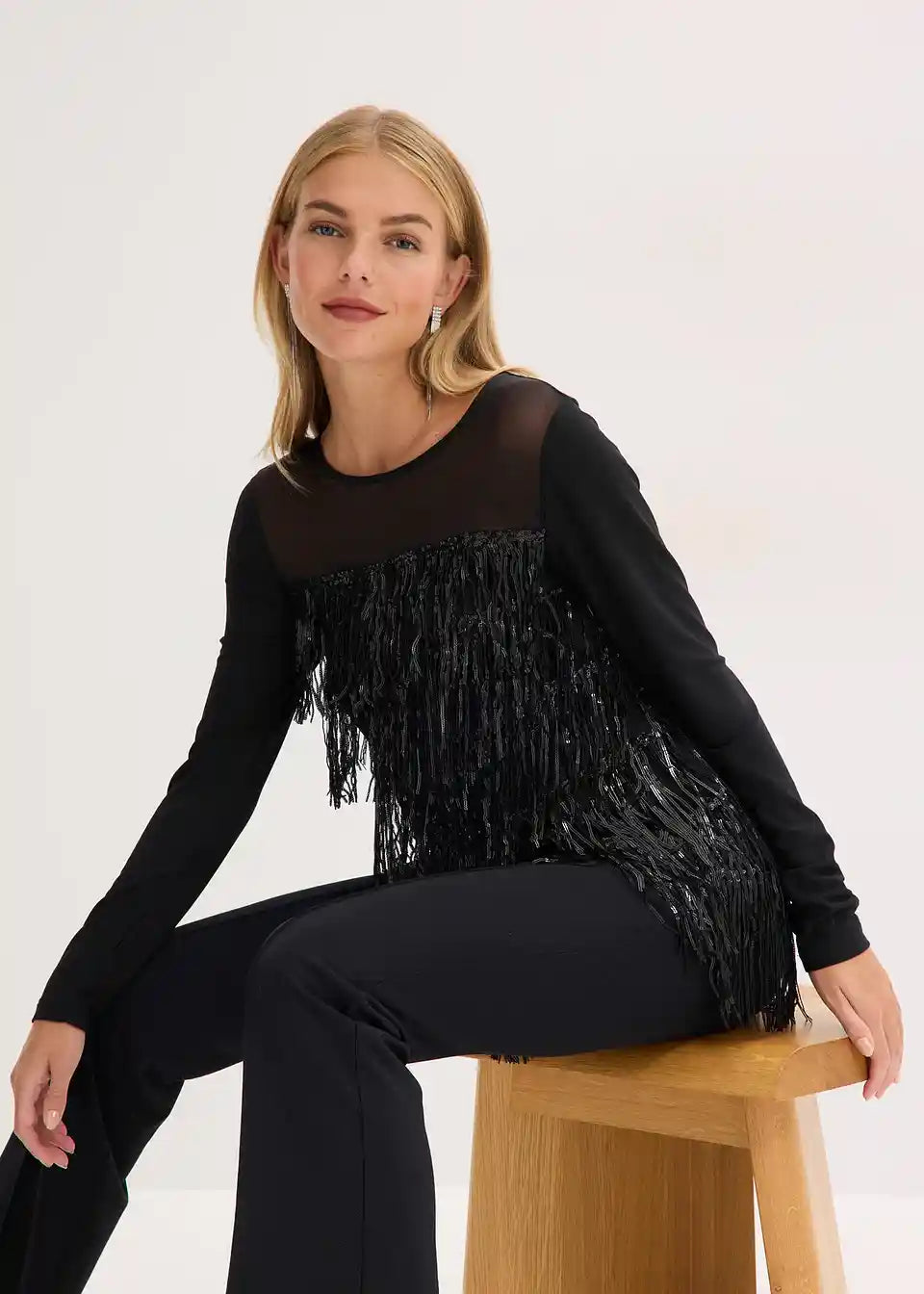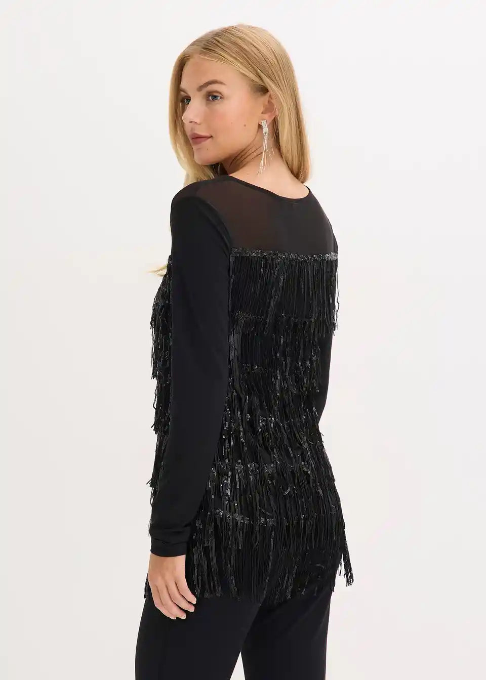 Langarmshirt mit Pailletten-Fransen