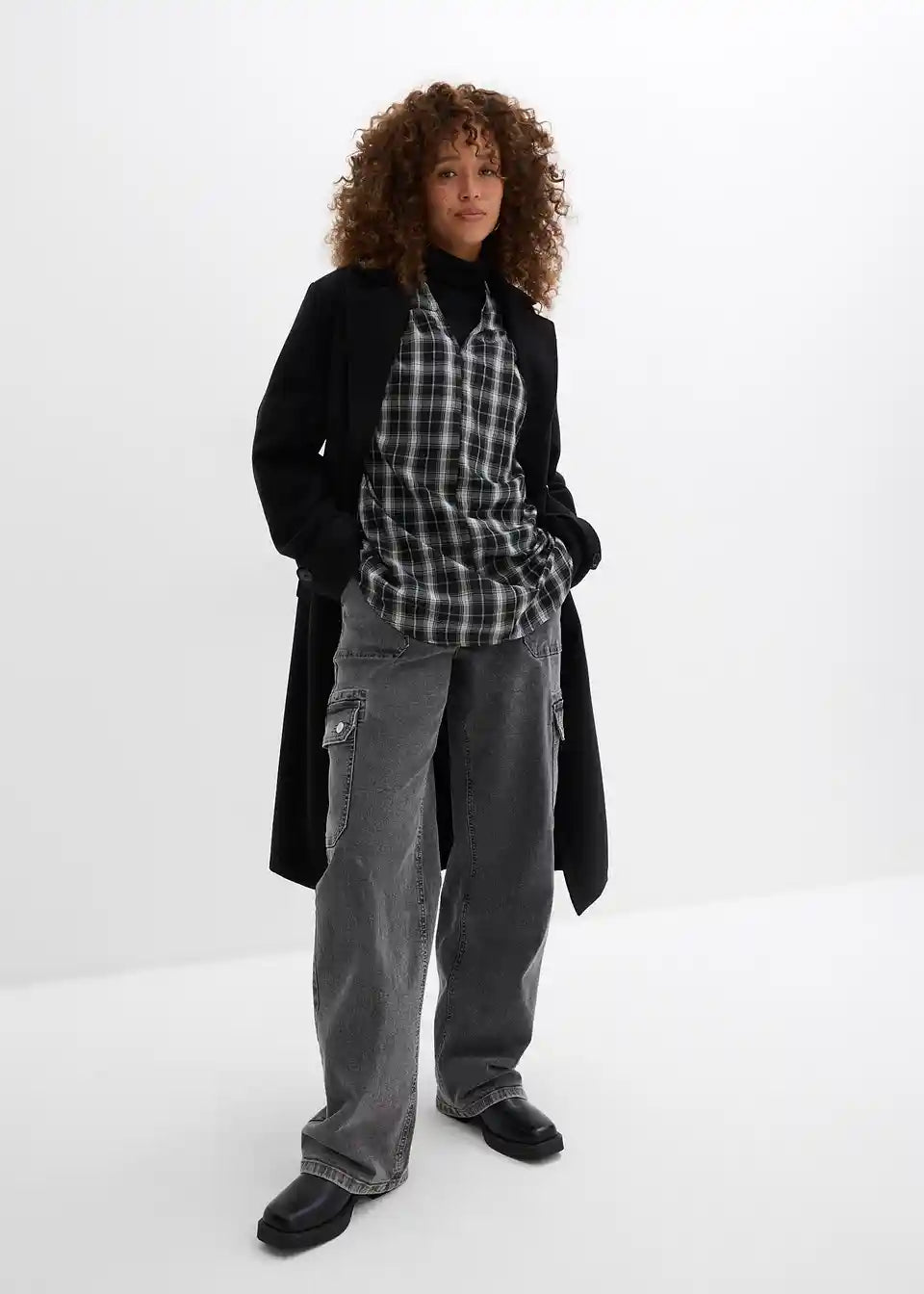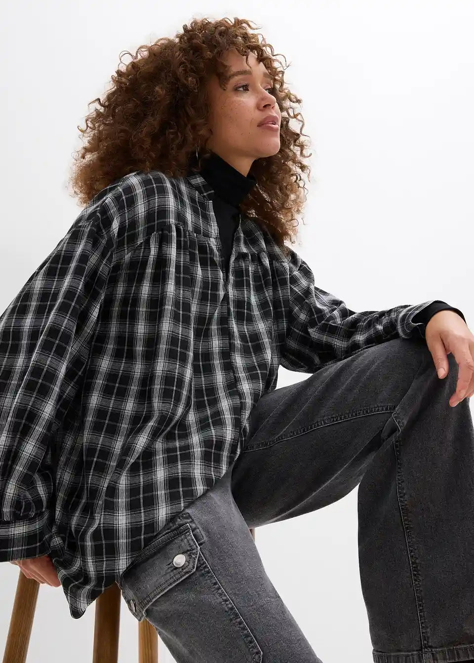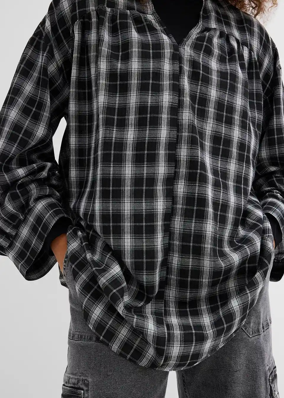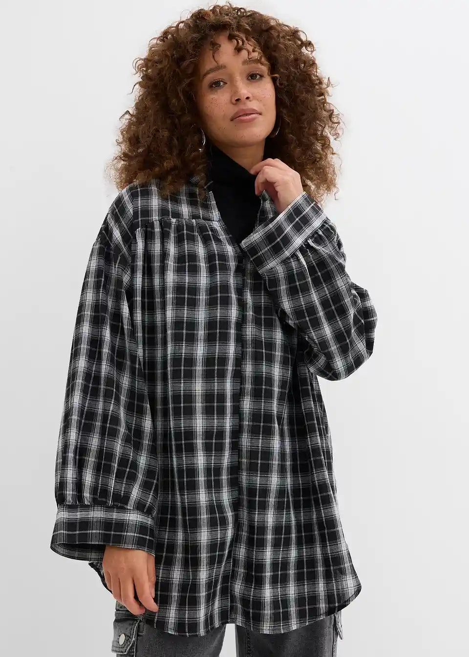 Lässige Oversize Longbluse mit Karomuster