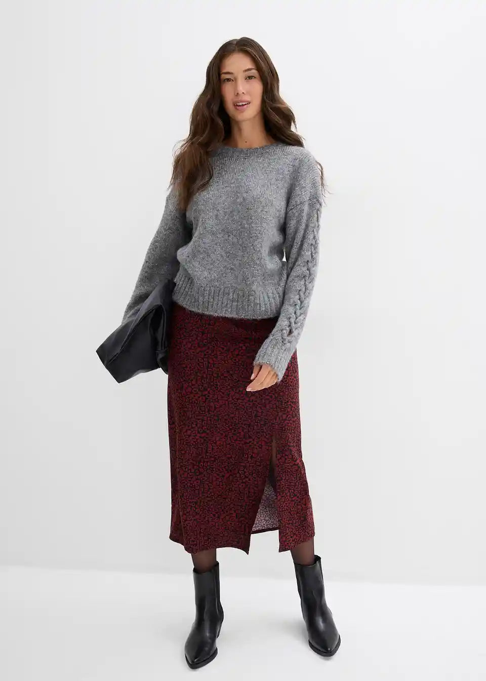 Modischer Midirock aus fließender Viskose mit seitlichem Schlitz
