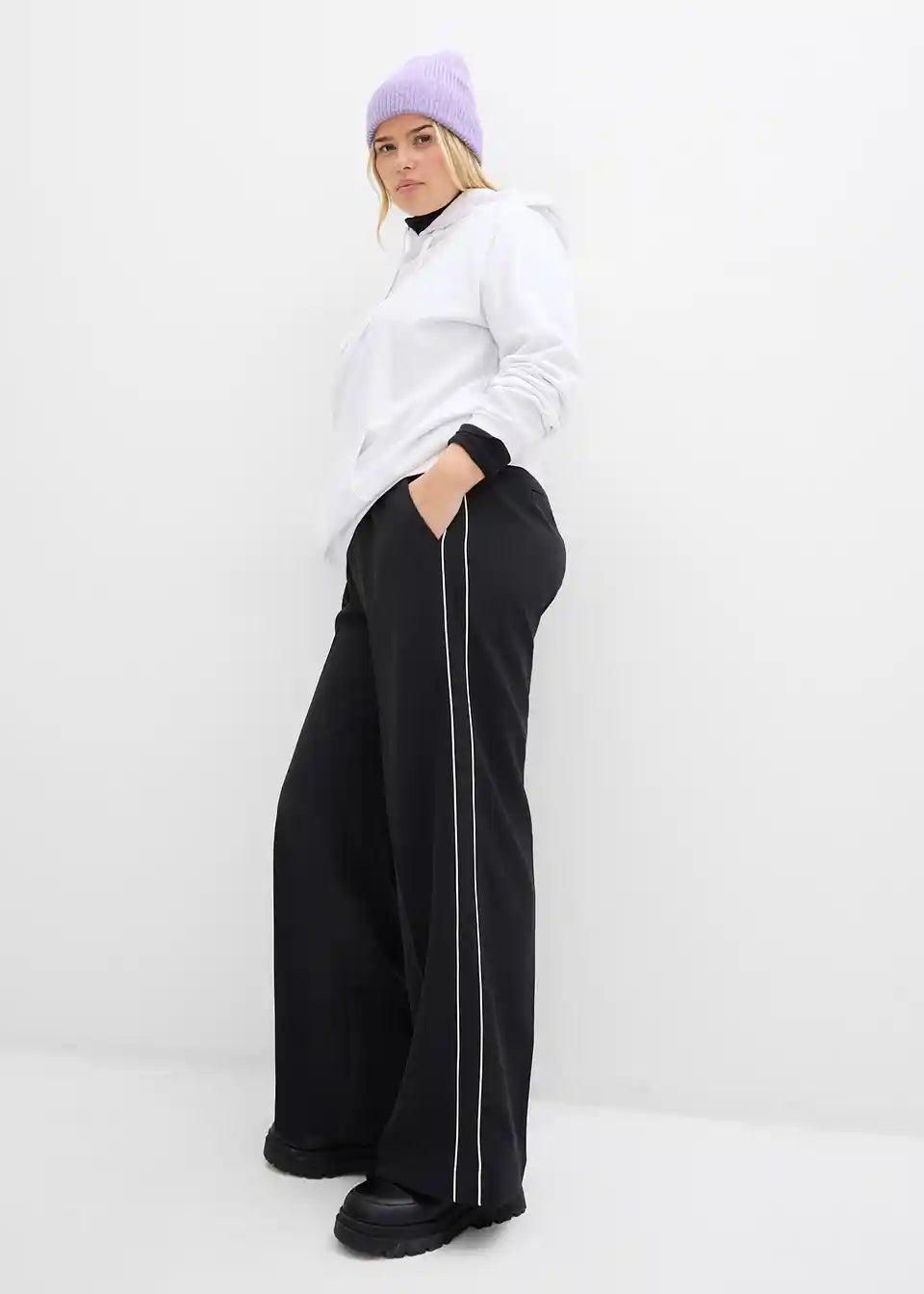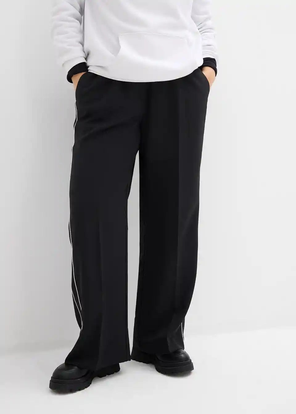 Lässige weit geschnittene Hose mit Zierstreifen und Gummibund