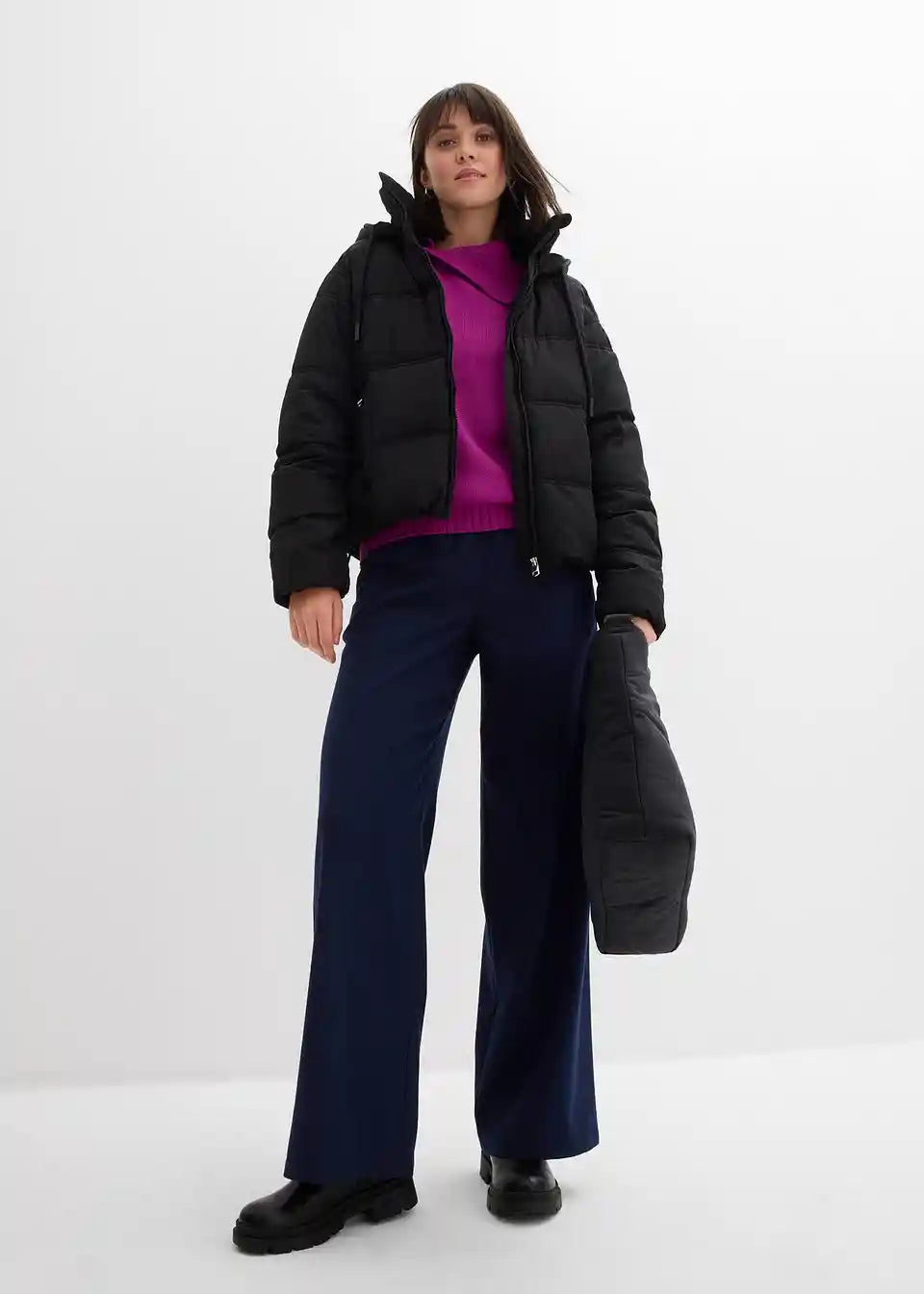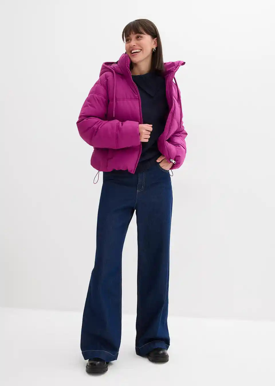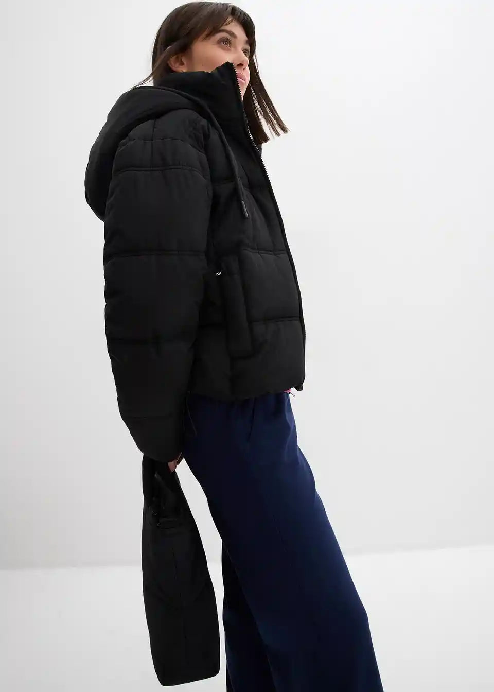 Kurze Steppjacke mit Kapuze und seitlichen Taschen