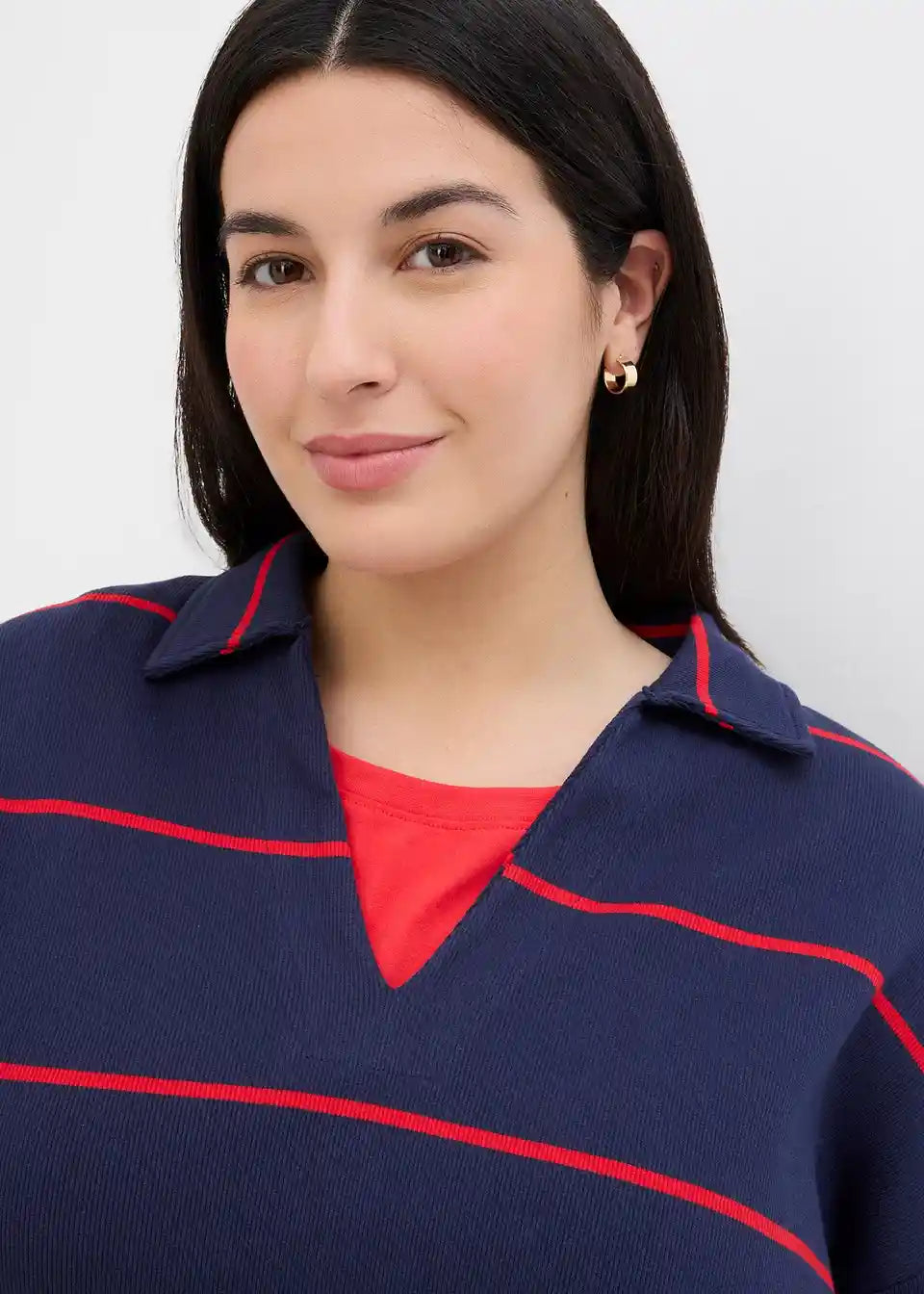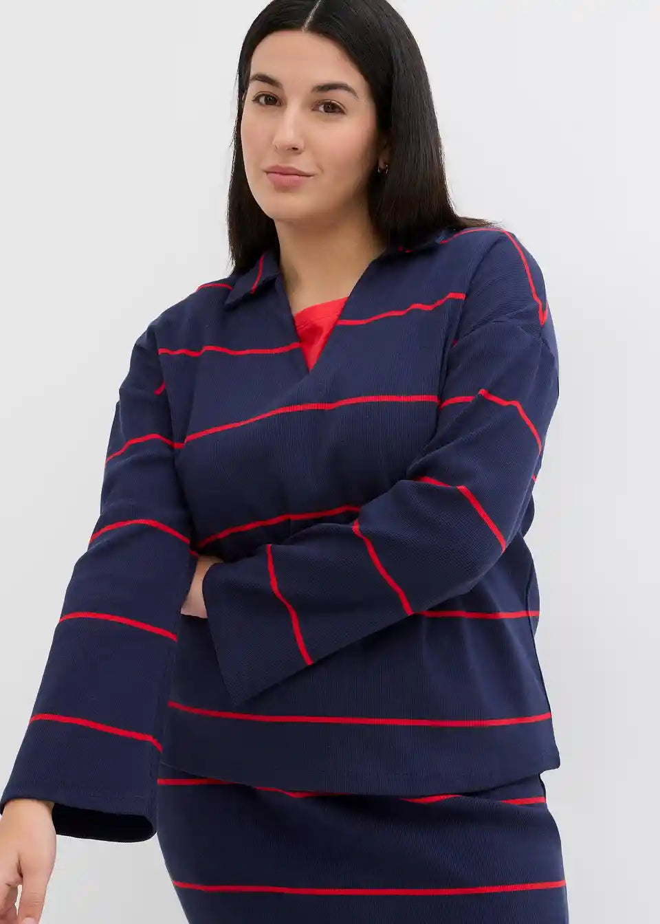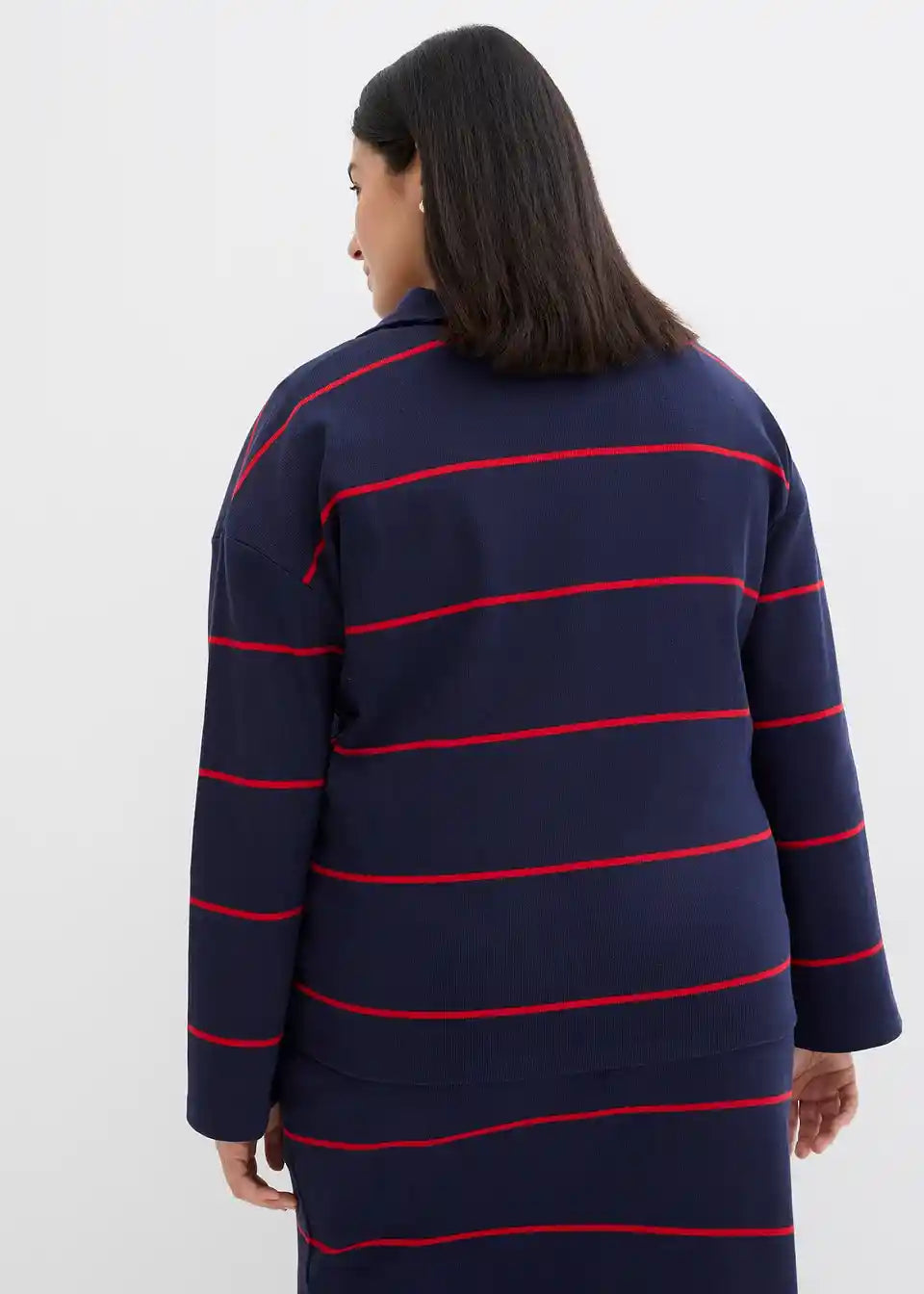 Geripptes Langarm-Poloshirt
