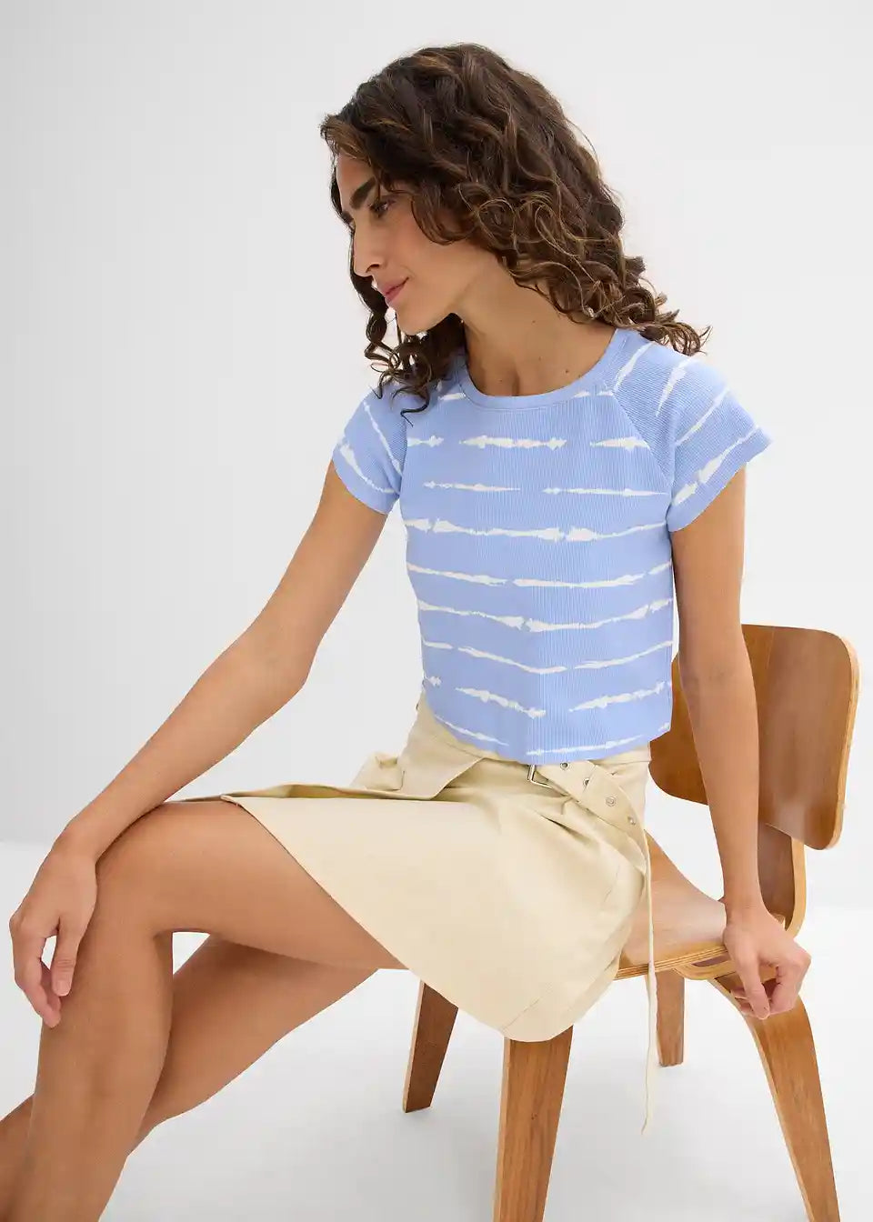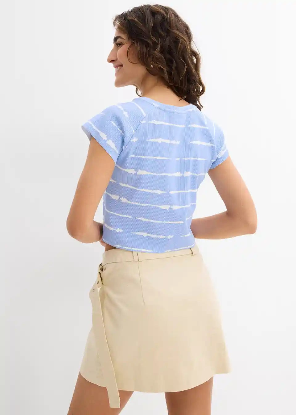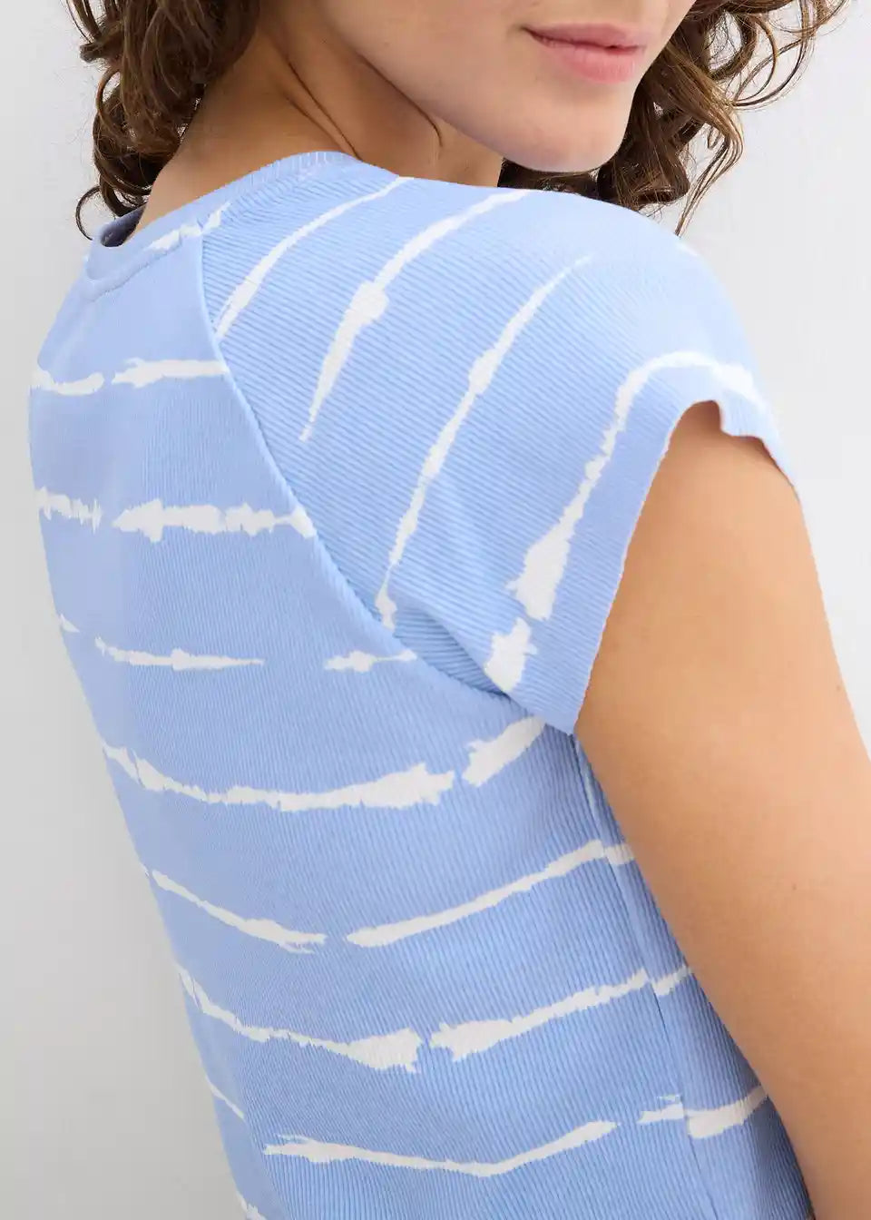 Kurzes Rippshirt mit Batikdruck