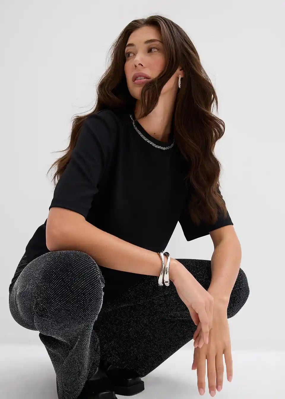 Lässiges Oversize-T-Shirt mit Applikationen am Ausschnitt