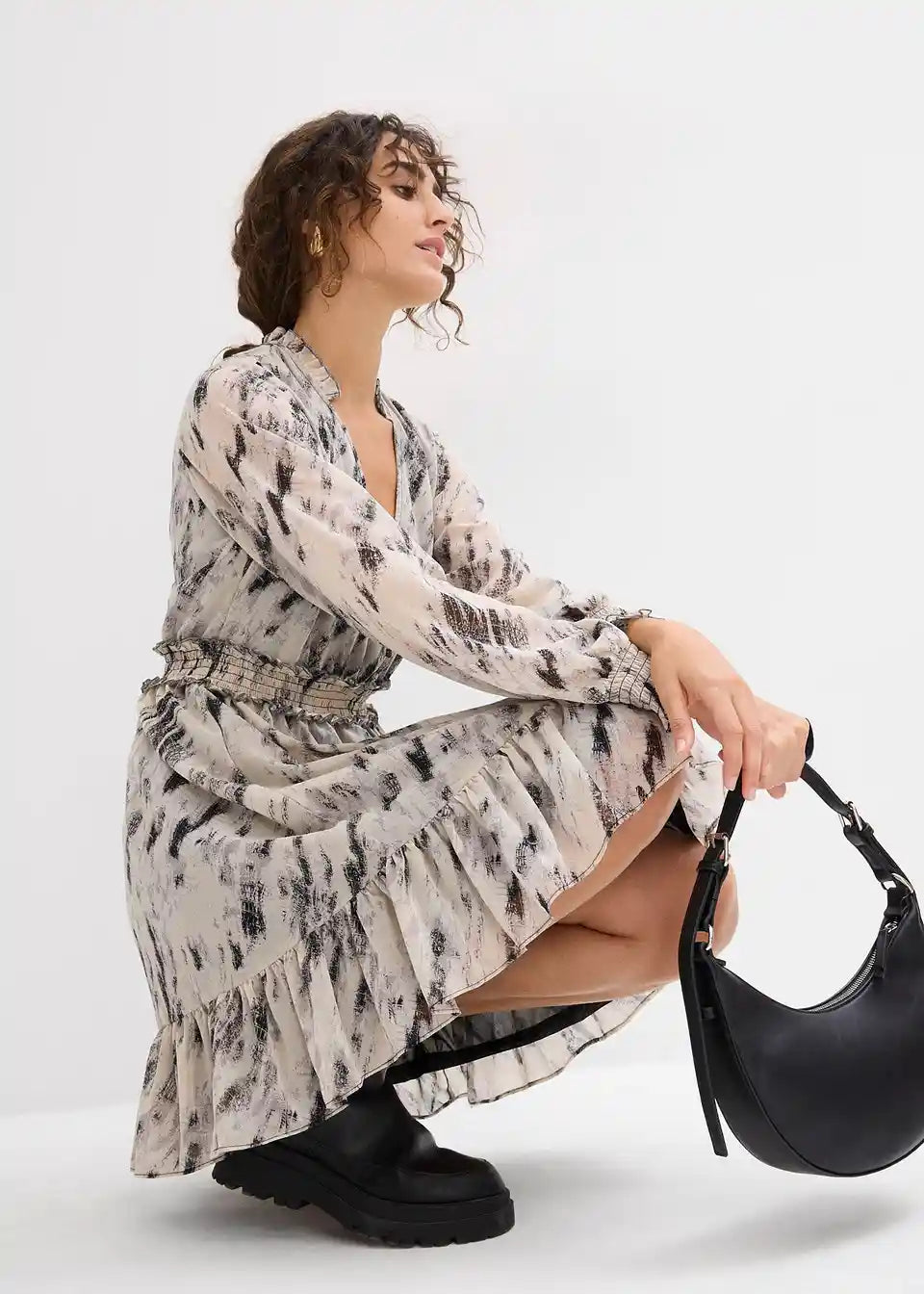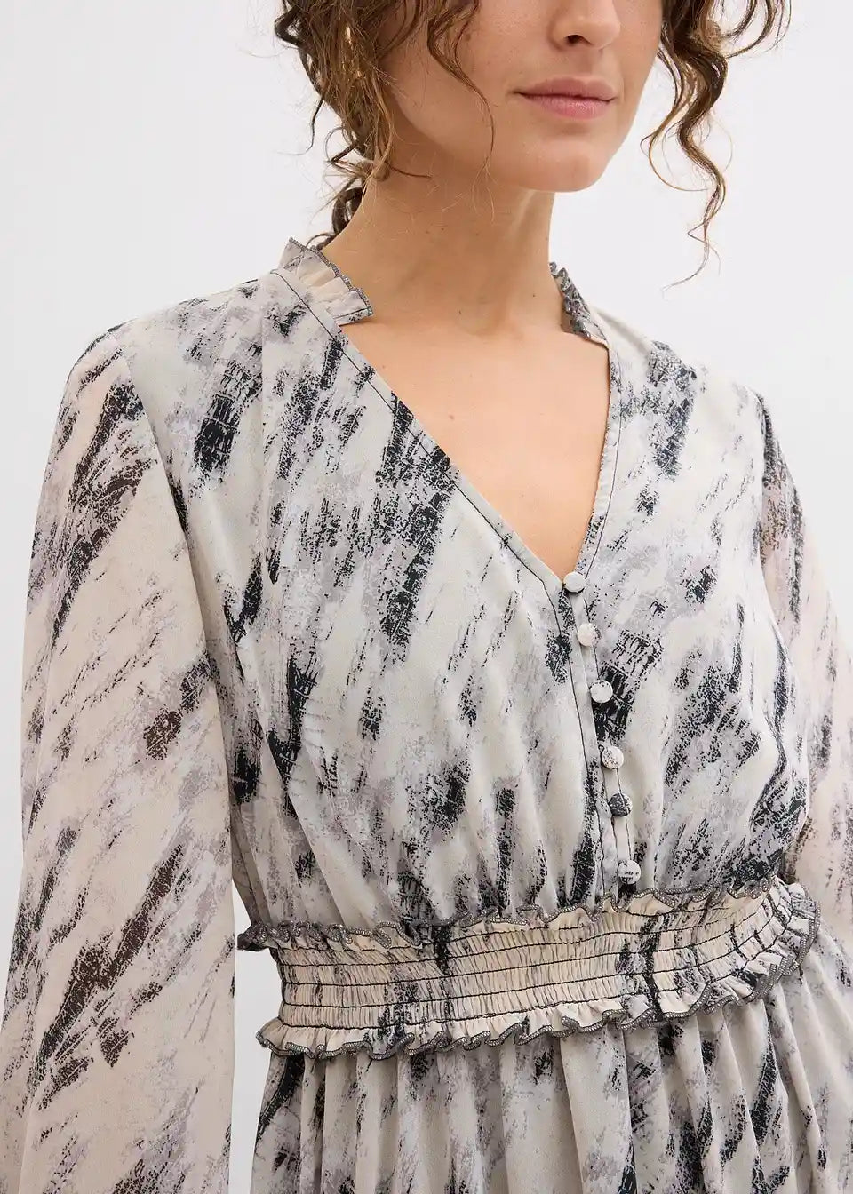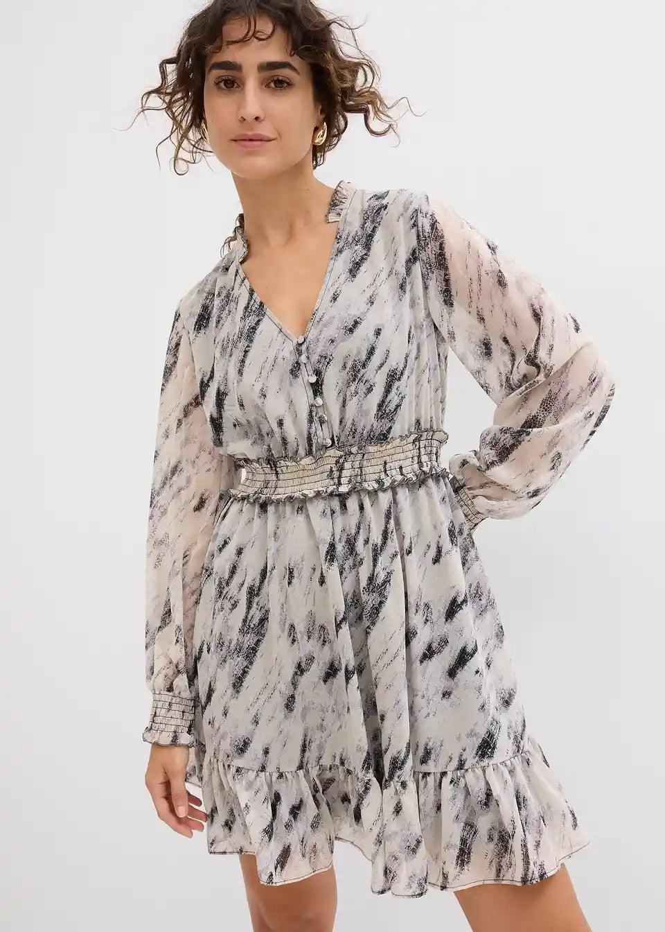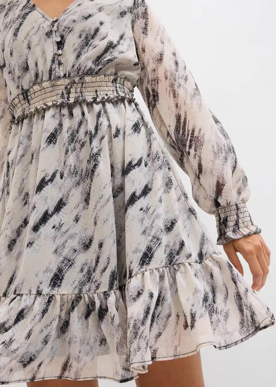 Kurzes Chiffonkleid mit Volants und langen Ärmeln