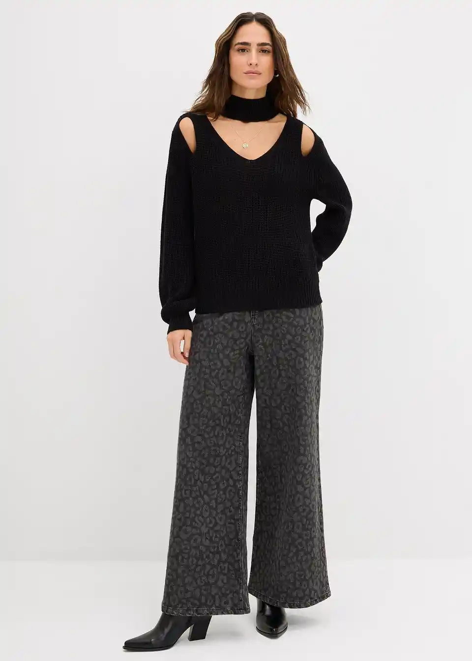 Trendiger Grobstrick-Pullover mit Cut Outs