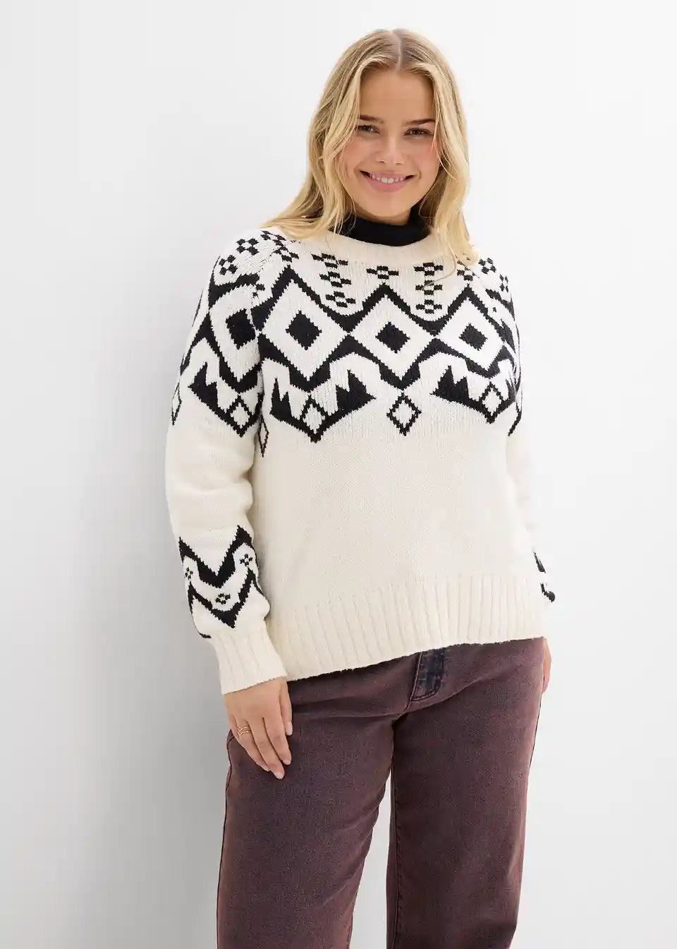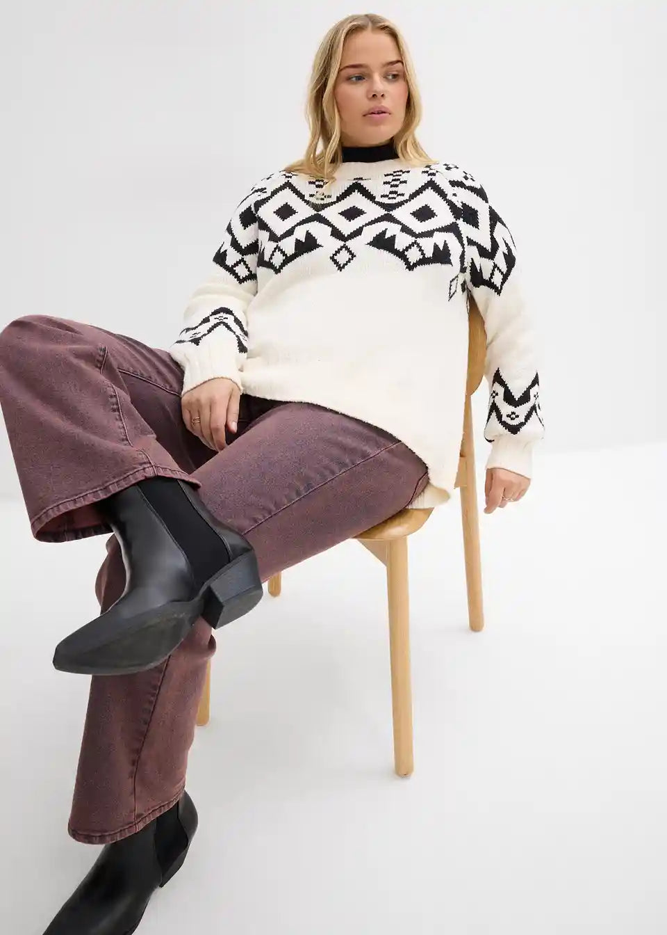 Modischer Oversize Norweger-Pullover in monochromer Optik