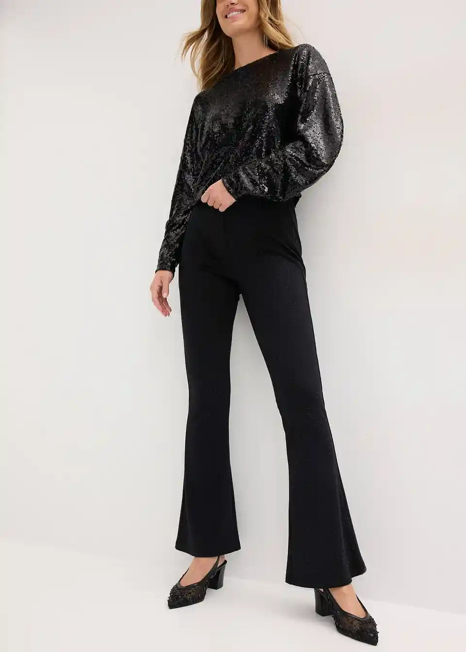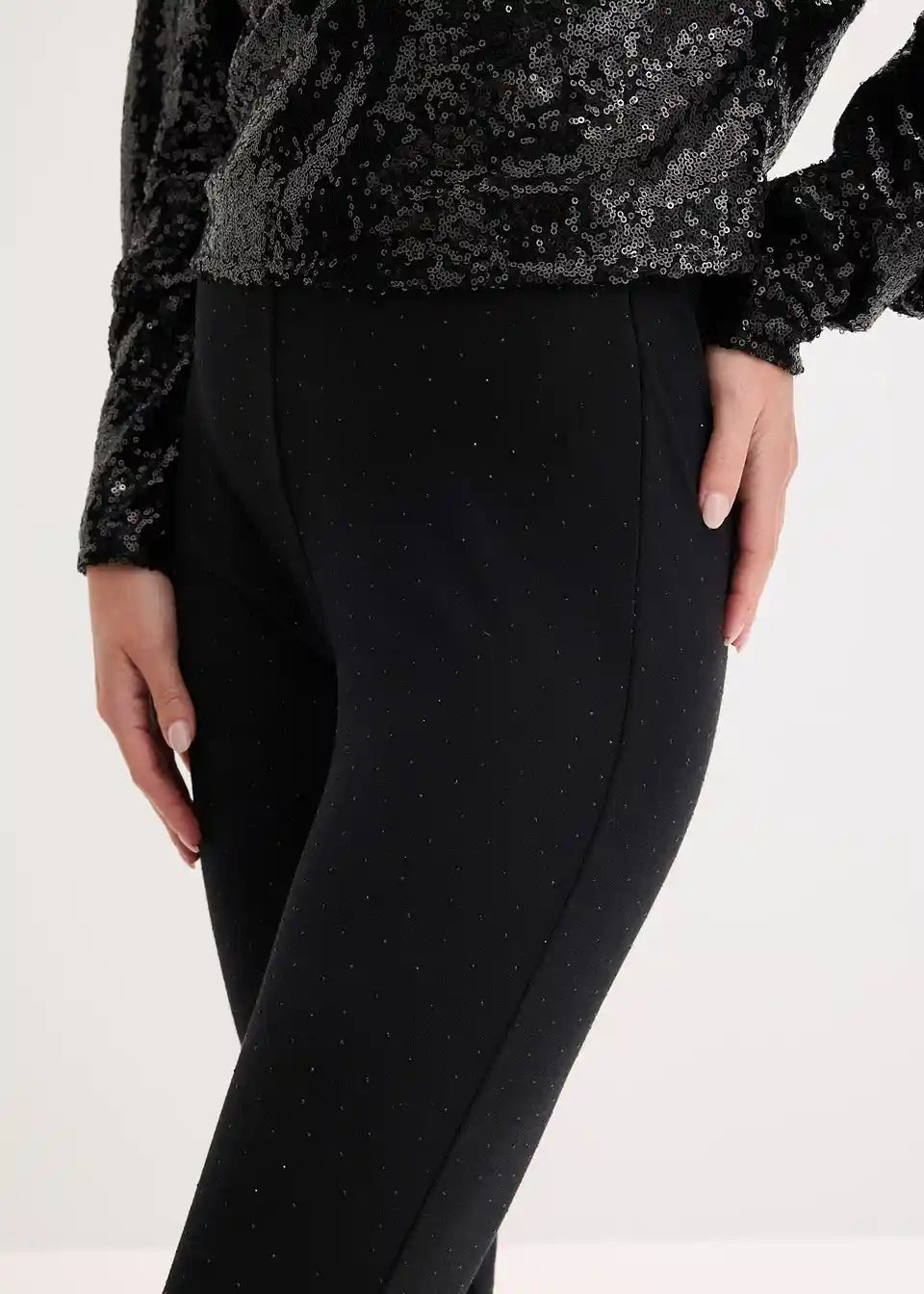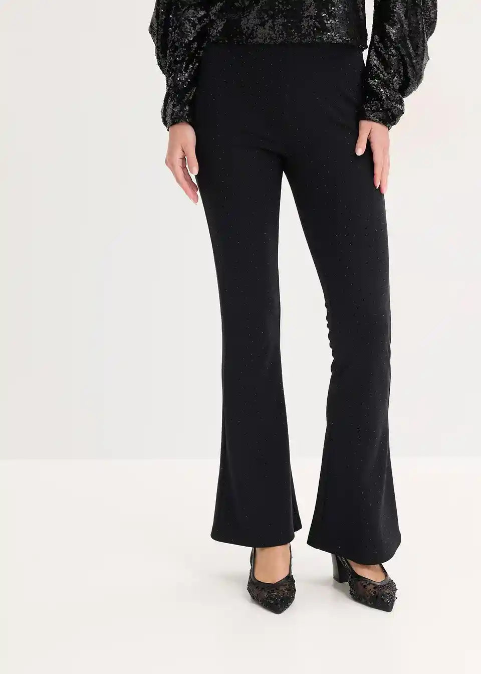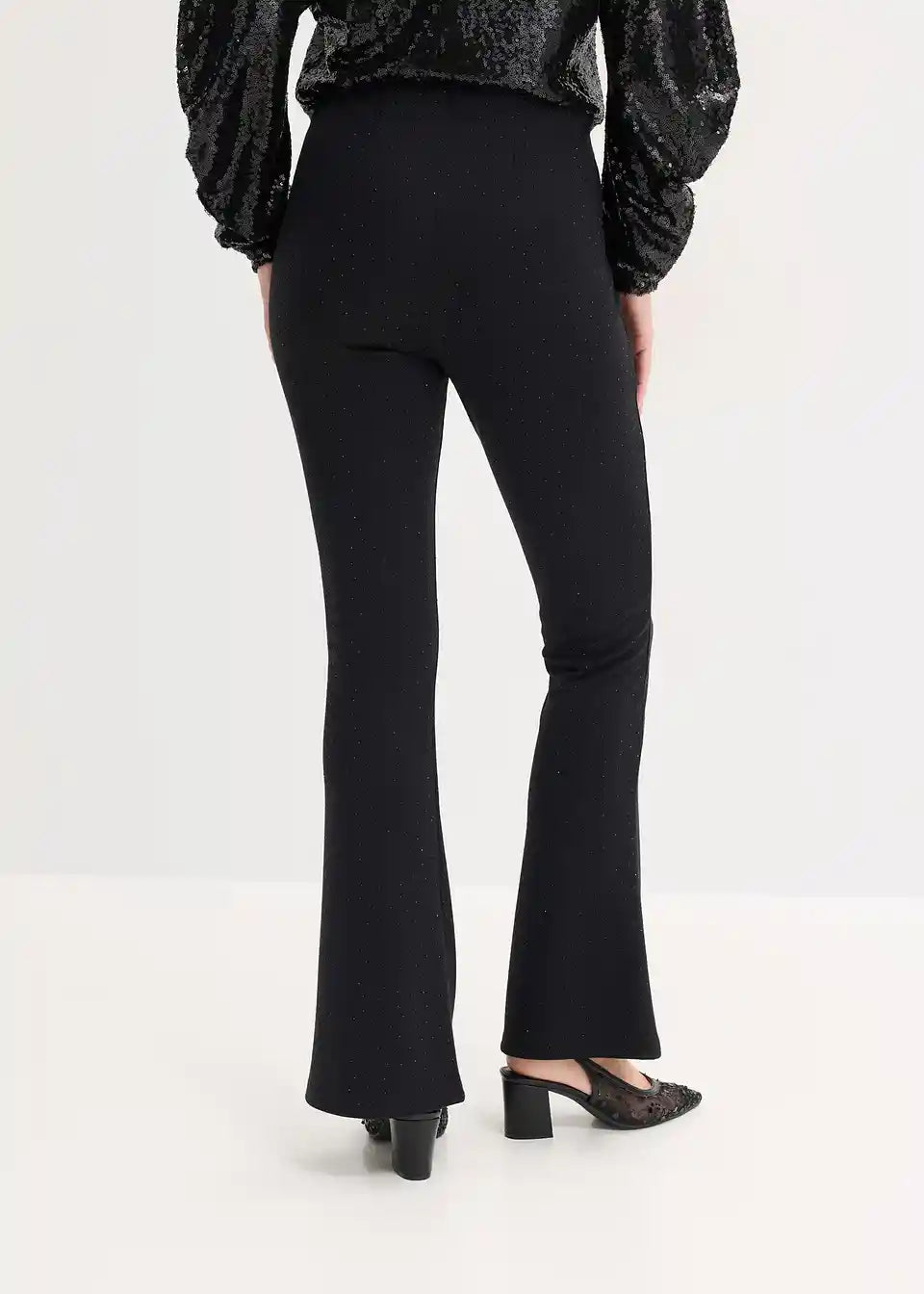 Flared Leggings aus bequemen Punto di Roma mit Strasssteinen
