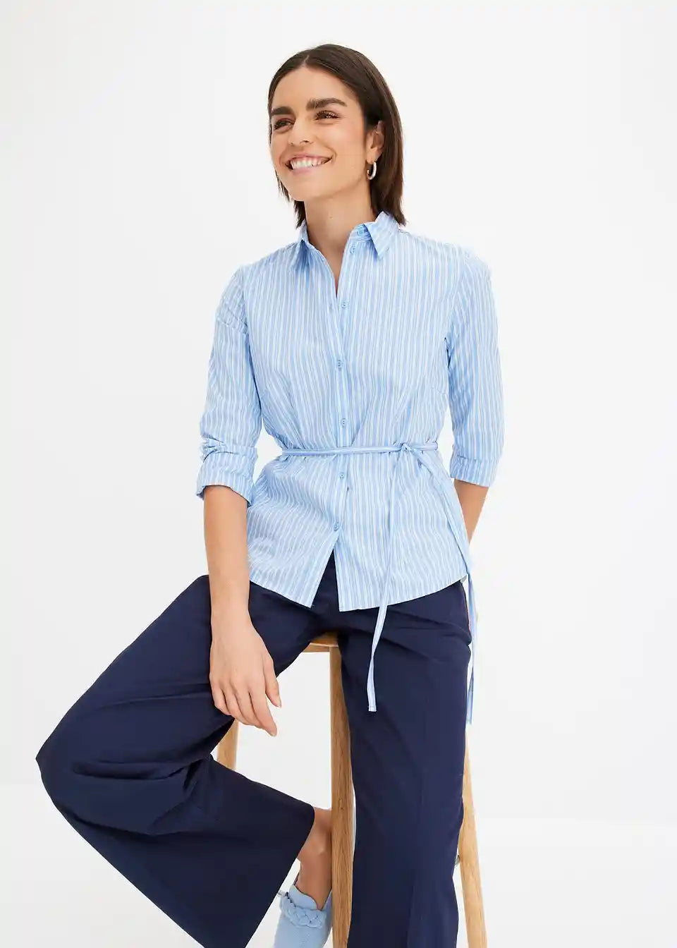 Zeitlose Bluse mit Bindegürtel