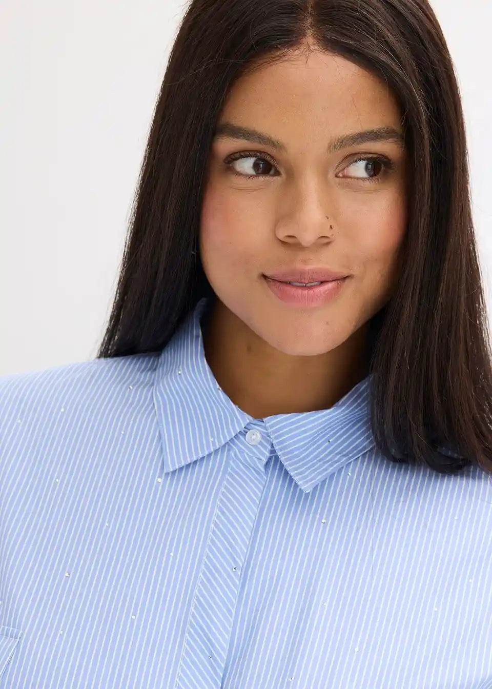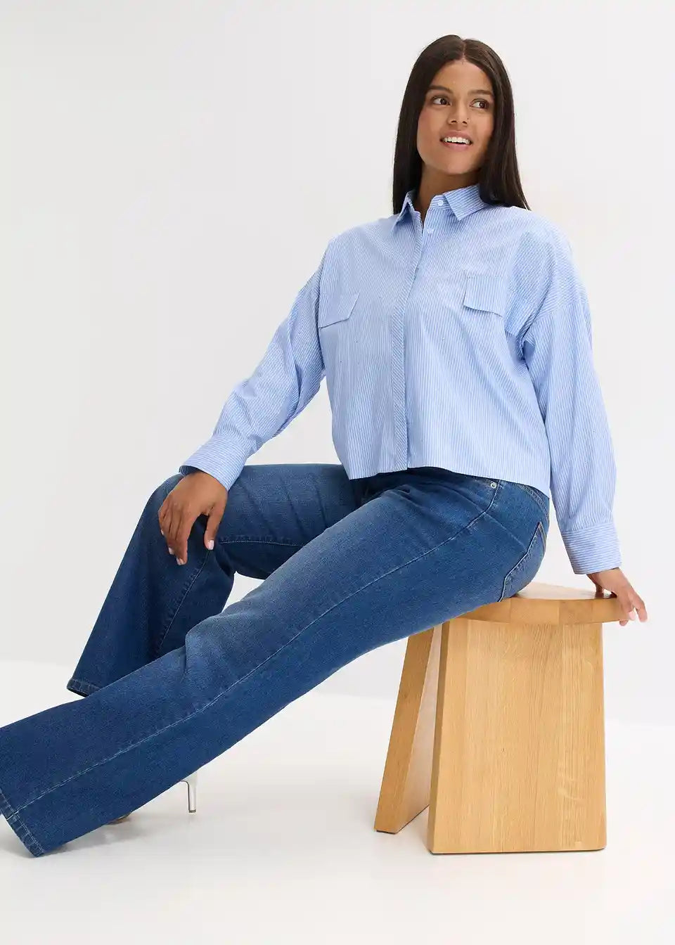 Kurze Bluse in Streifendessin mit aufgesetzten Patten