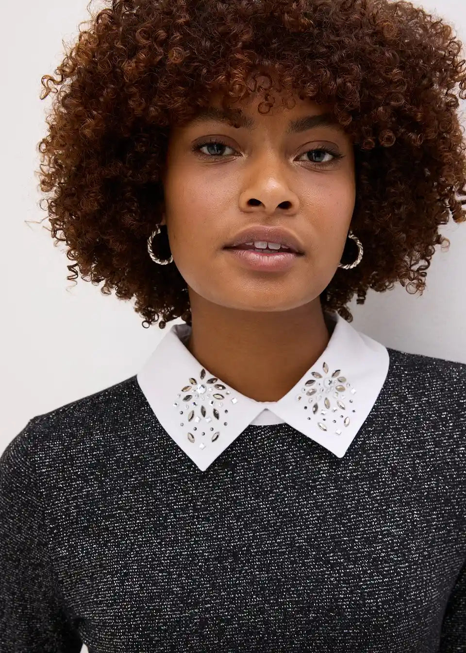 Material:Obermaterial: 90% Baumwolle, 8% Elasthan, 2% metallisierte Fasern, Kragen: 100% Baumwolle