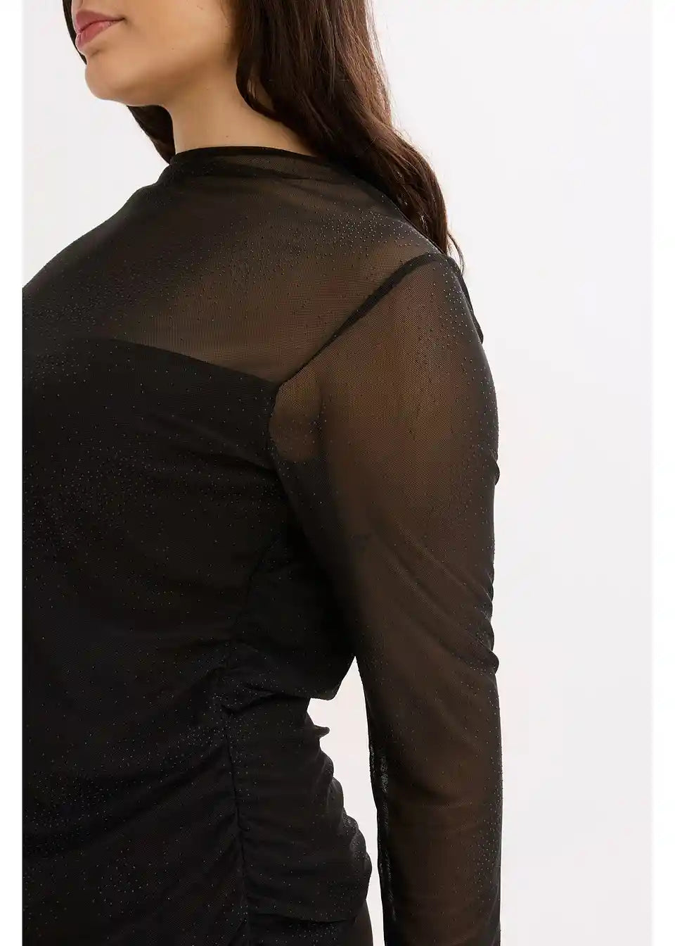 Aufregendes teilweise transparentes Shirt mit Glitzerprint