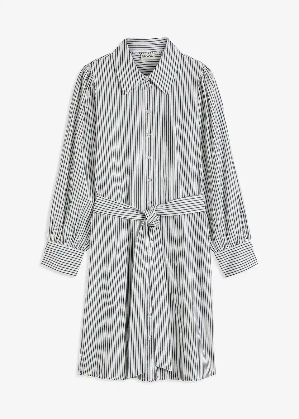 Blusenkleid mit Puffärmeln und Bindegürtel