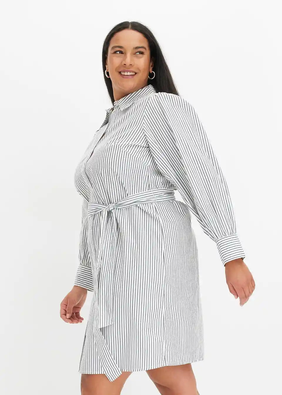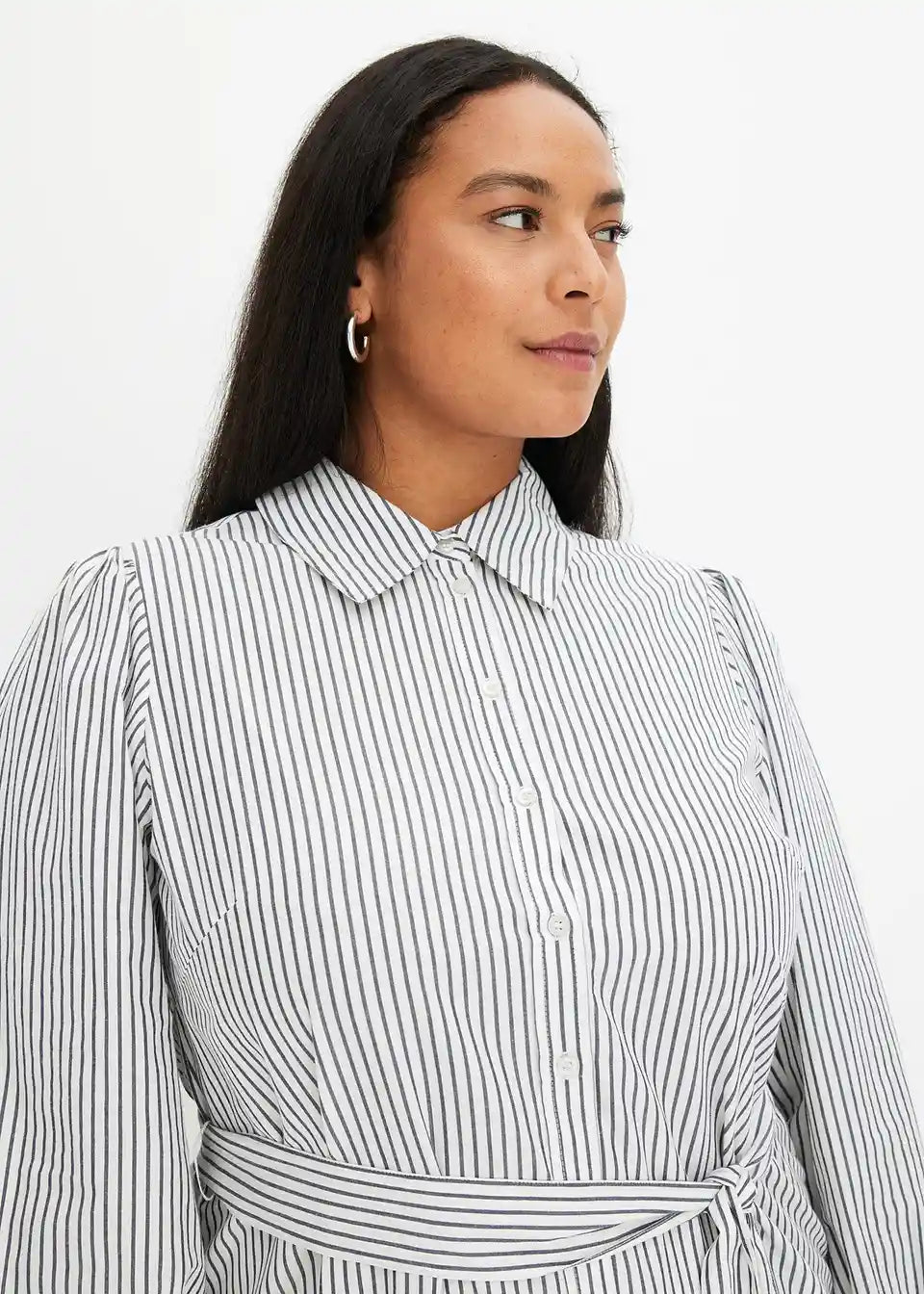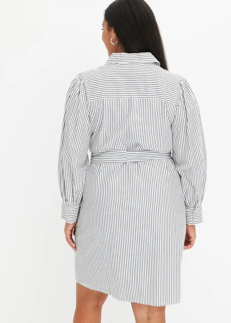 Gestreiftes Kleid mit Knopfleiste und Volumenärmeln
