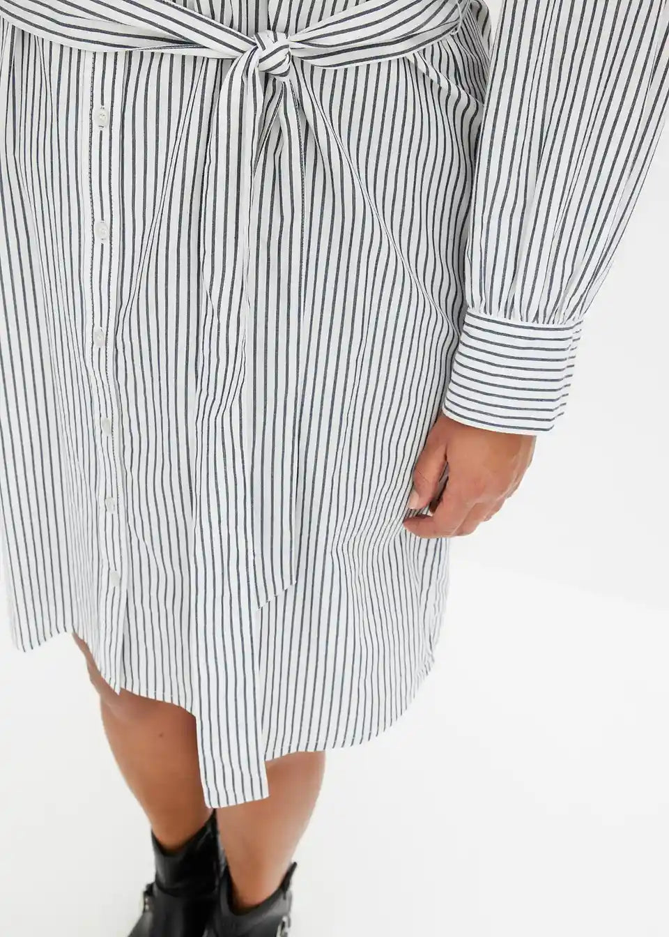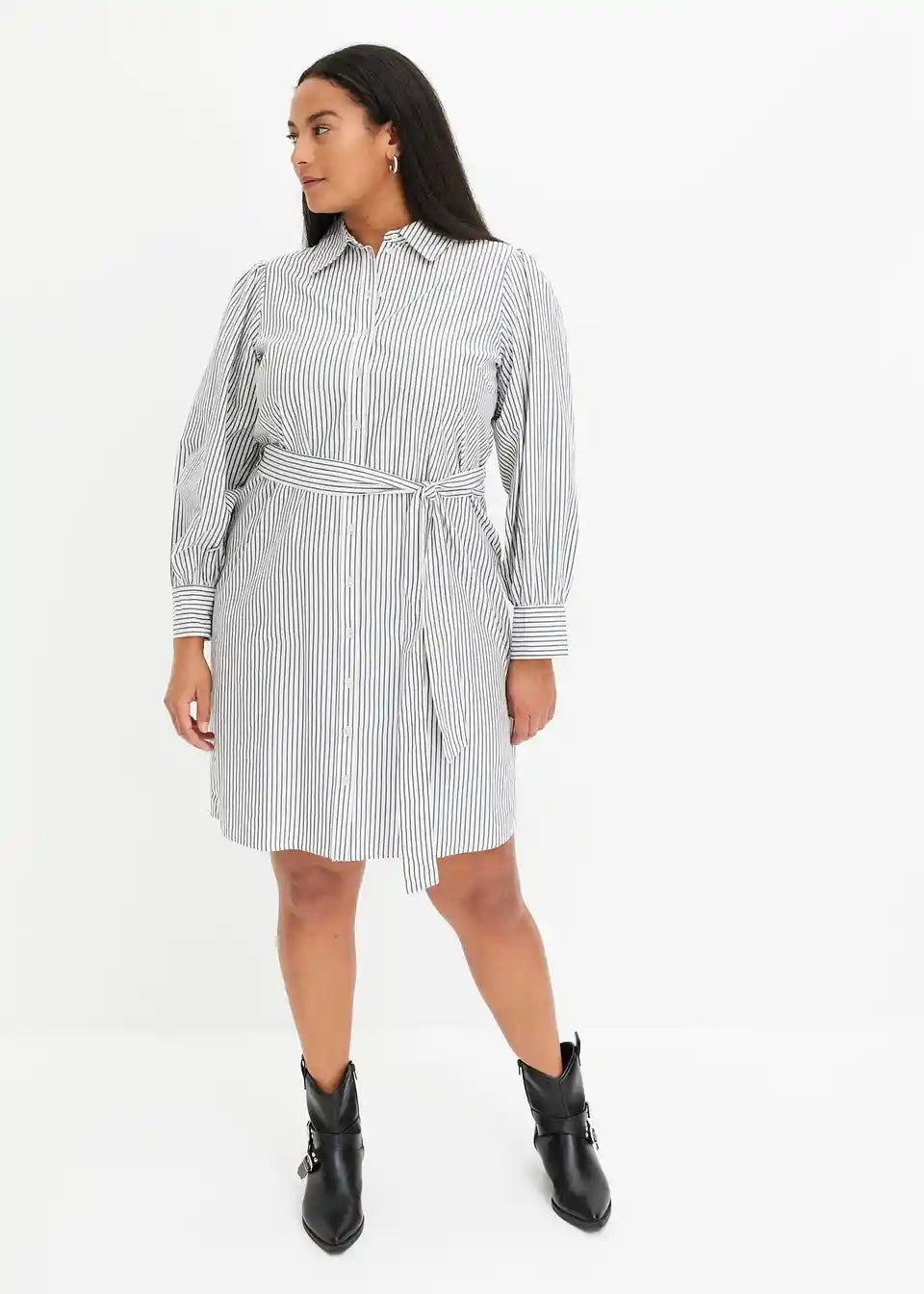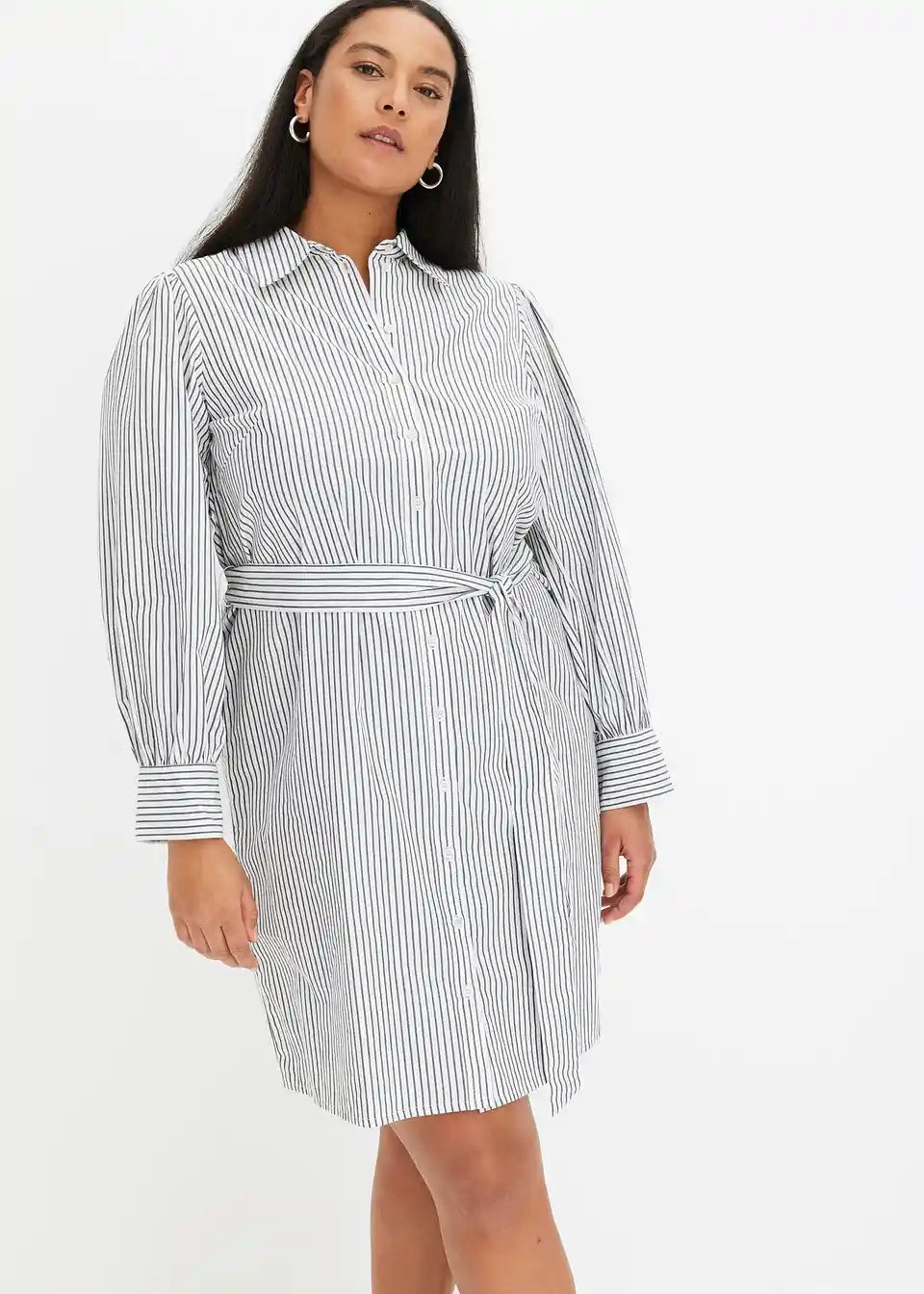 Gestreiftes Kleid mit Knopfleiste und Volumenärmeln