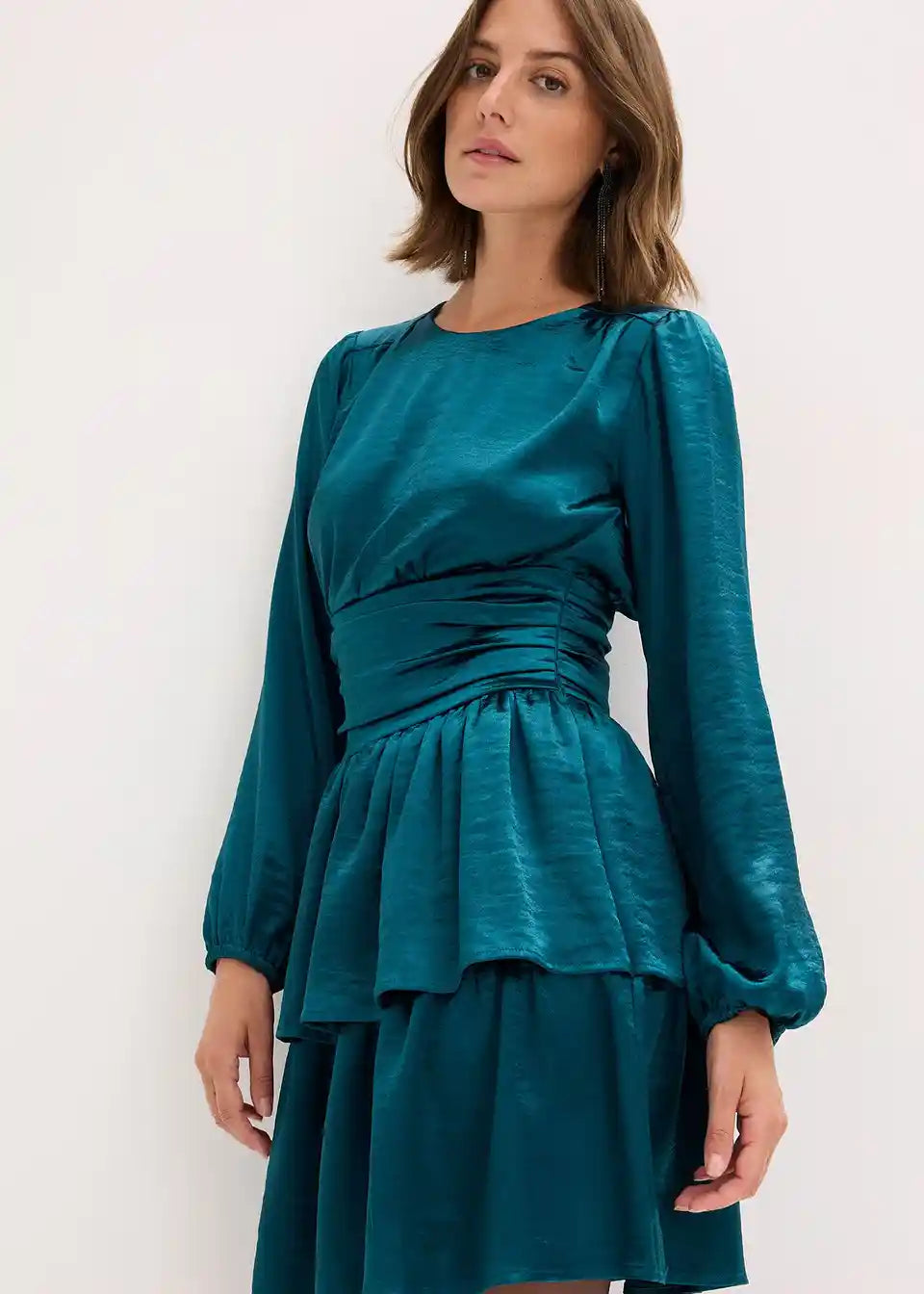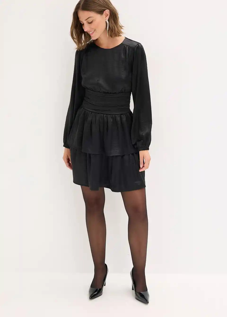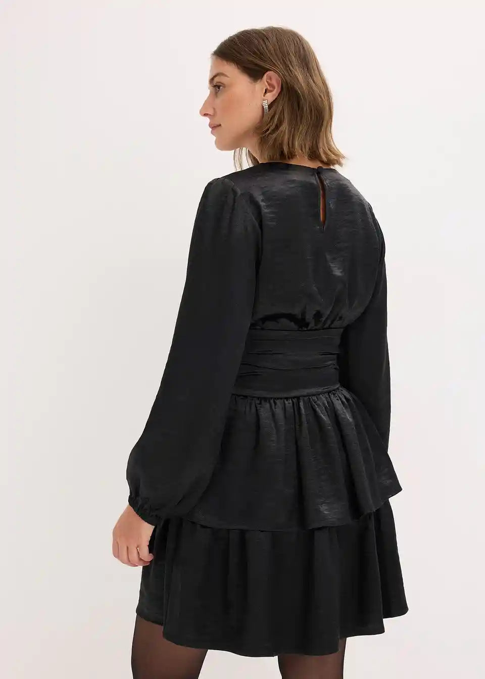 Kurzes Volantskleid mit Puffärmeln und gerafftem Taillenbund