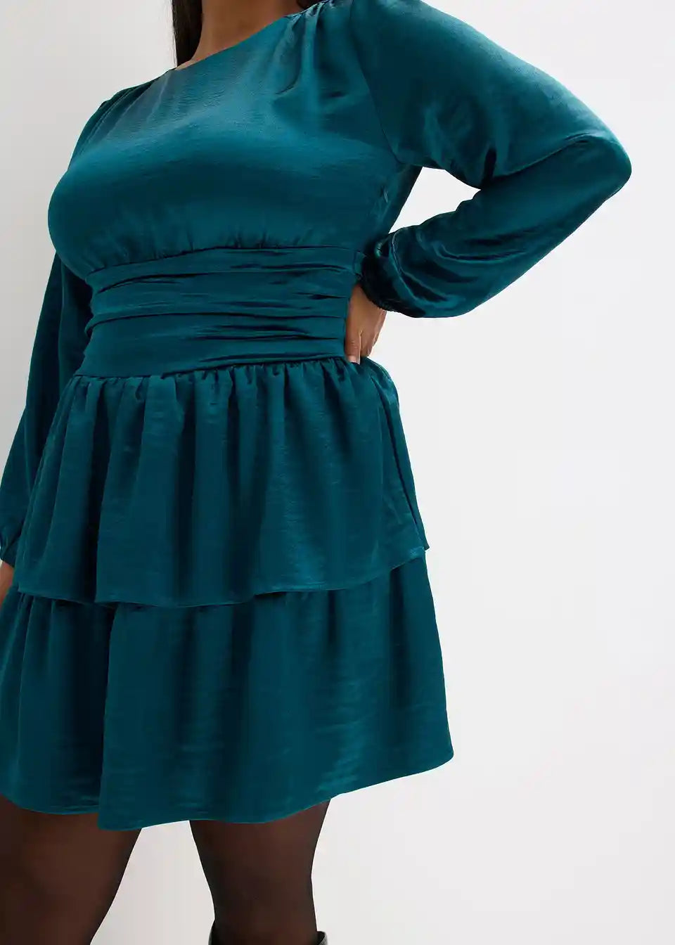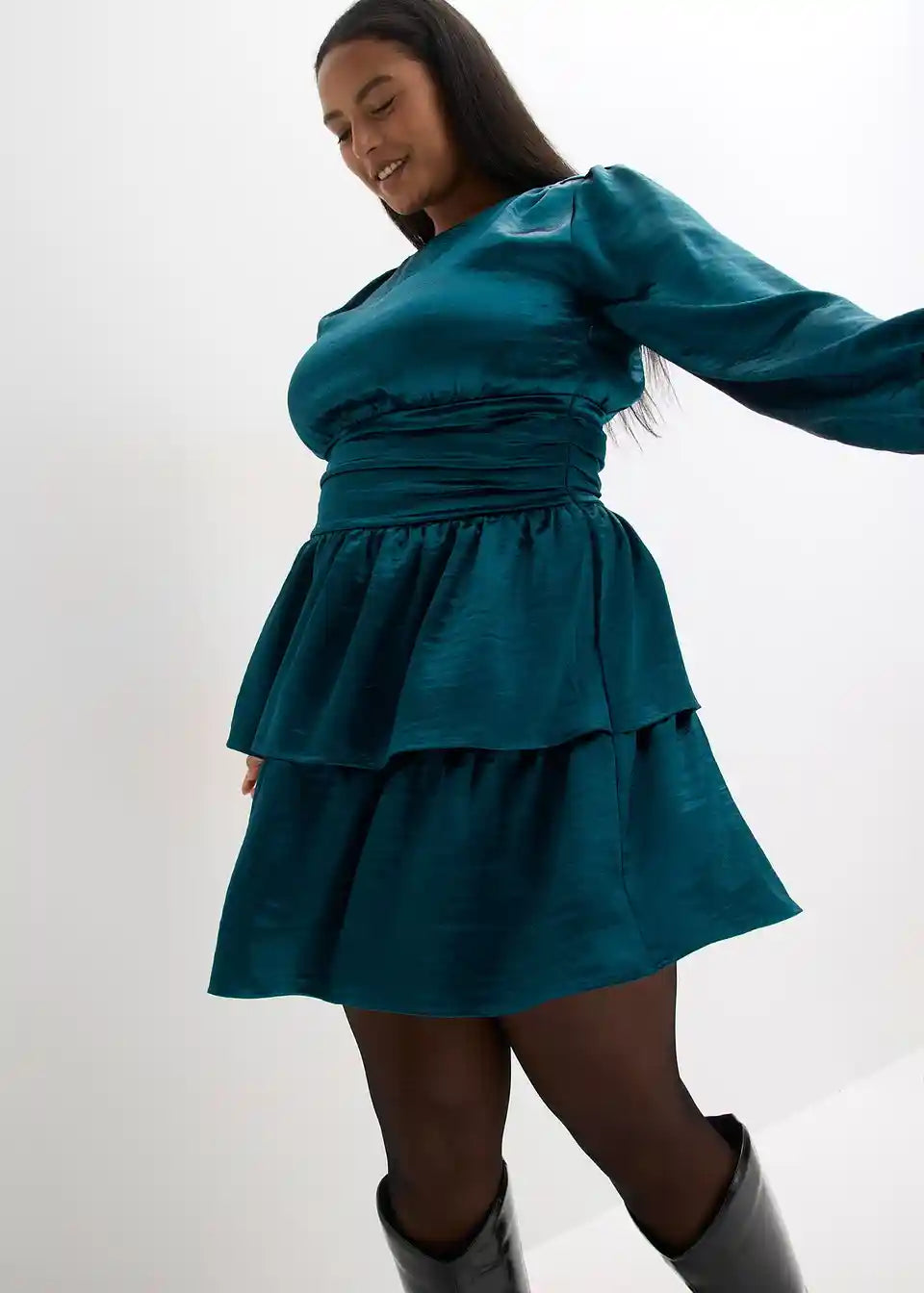 Kurzes Volantskleid mit Puffärmeln und gerafftem Taillenbund