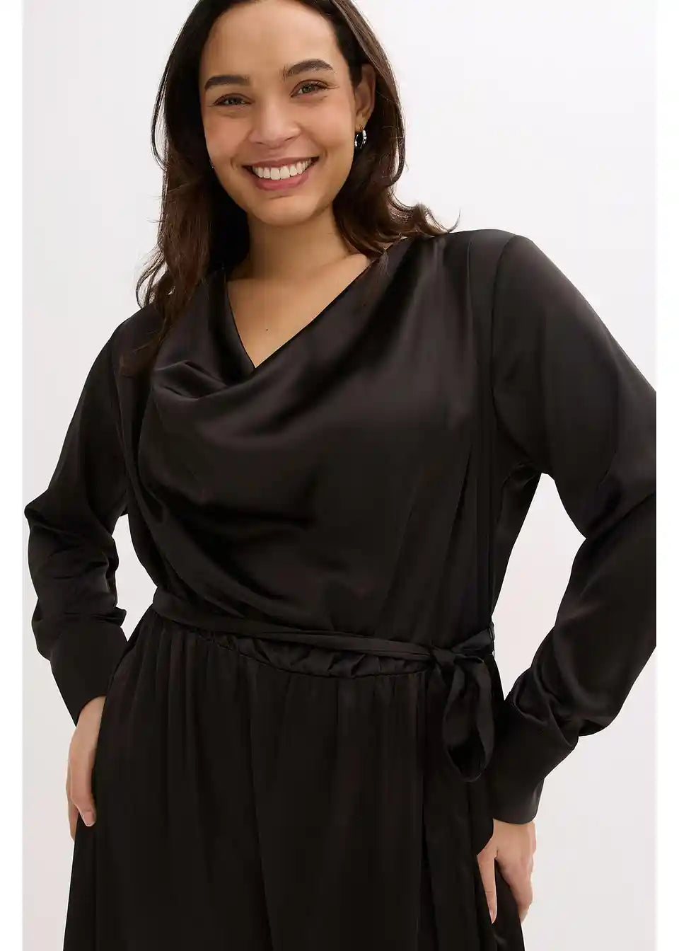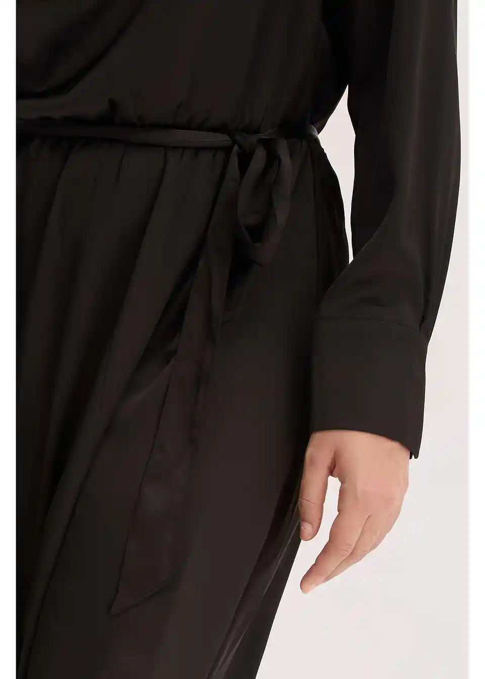 Fallendes leicht ausgestelltes Satinkleid mit Bindegürtel