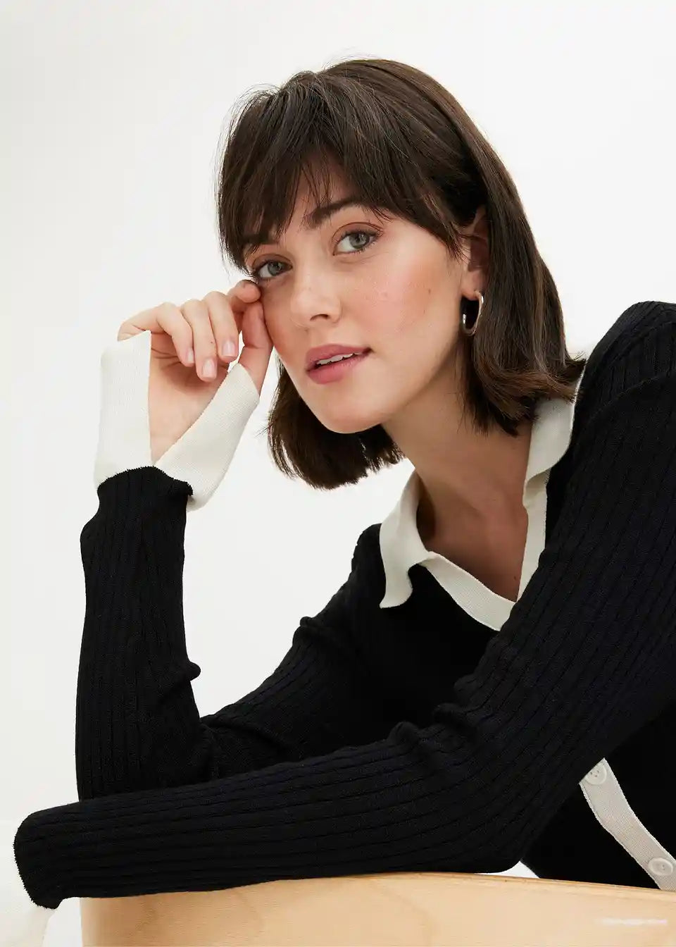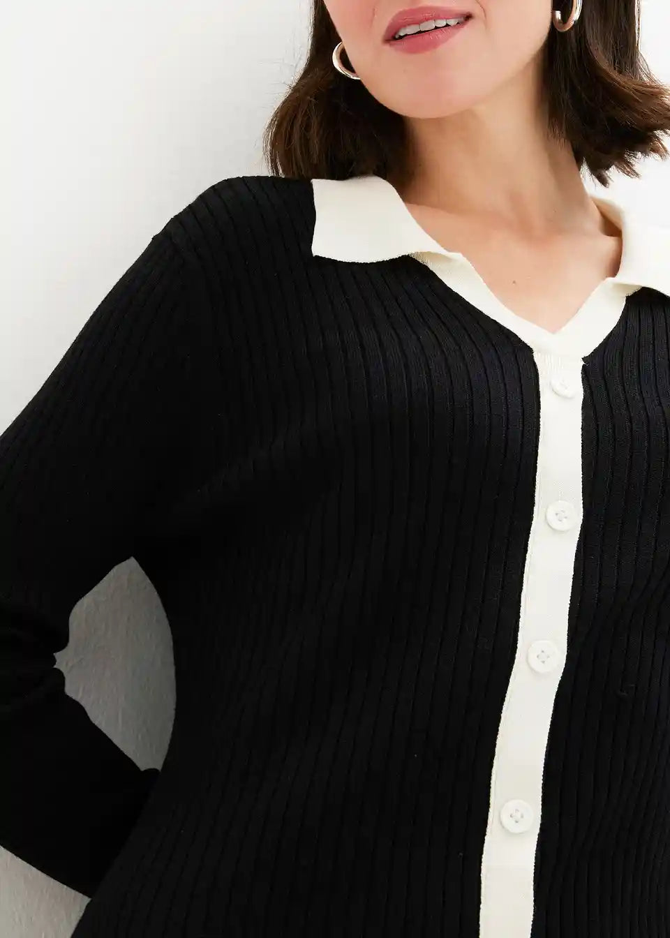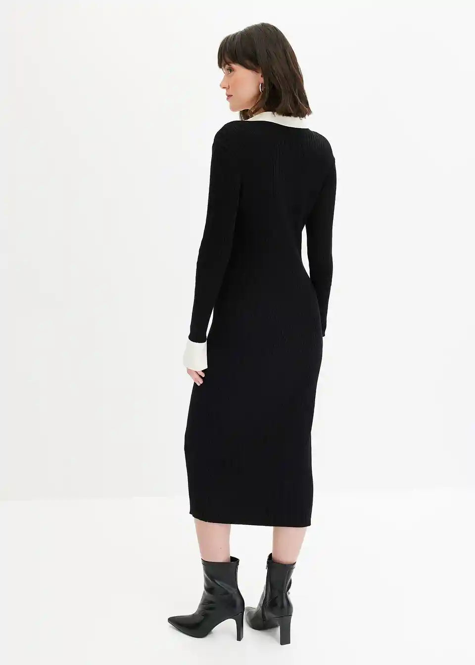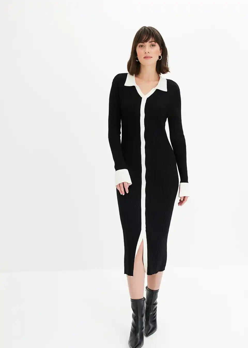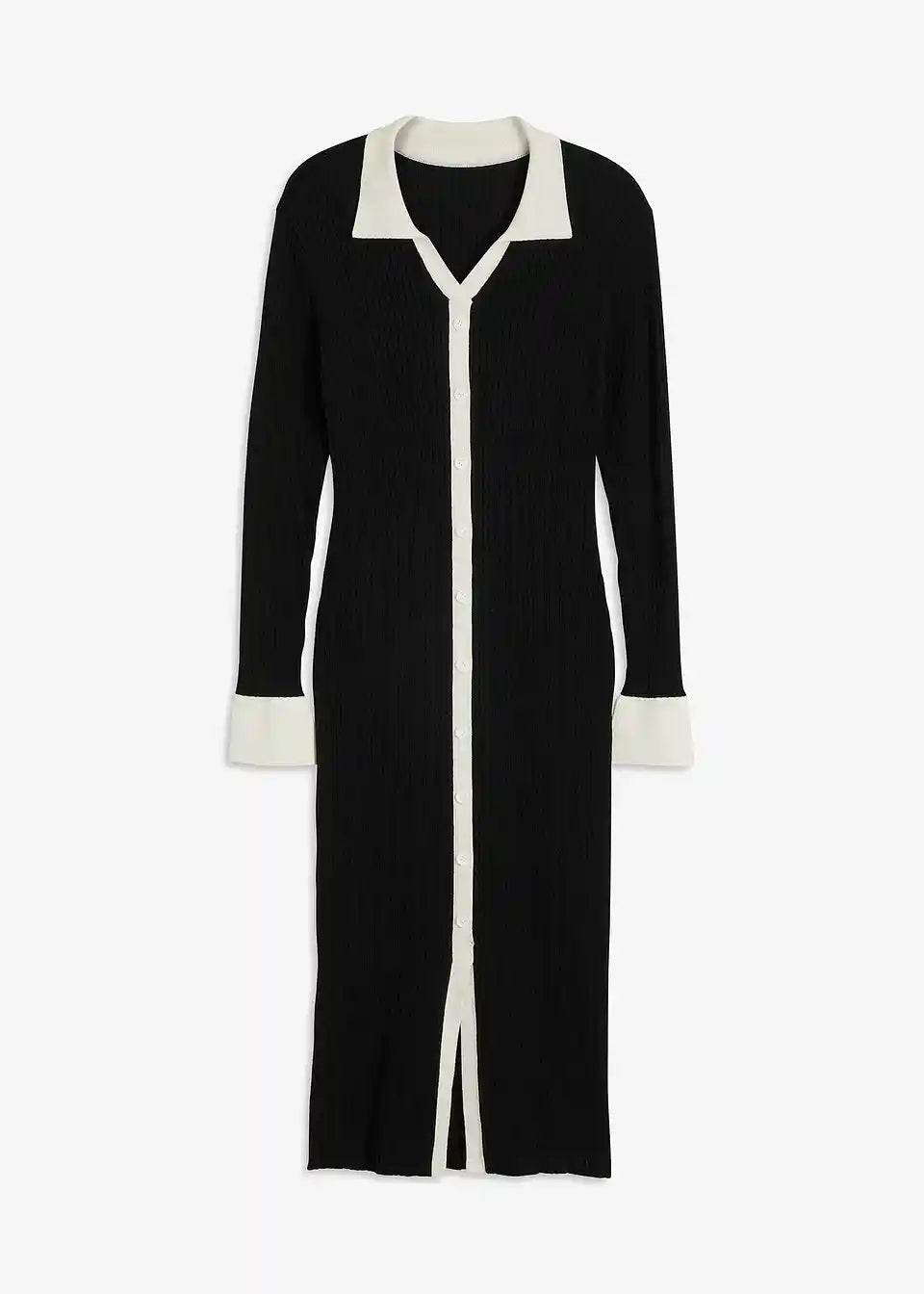 Strickkleid mit Polokragen und Kontrast-Knopfleiste