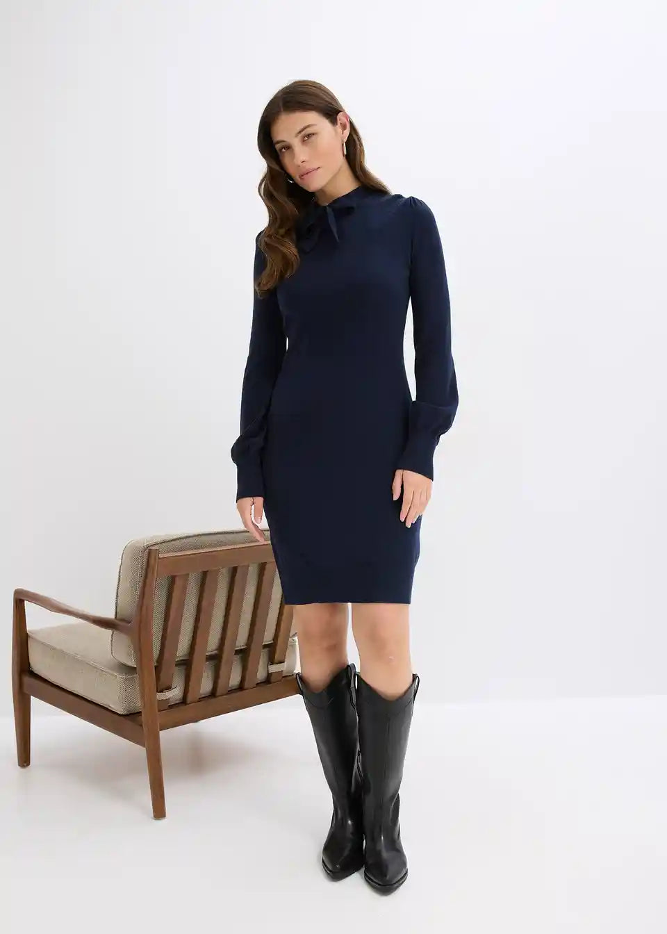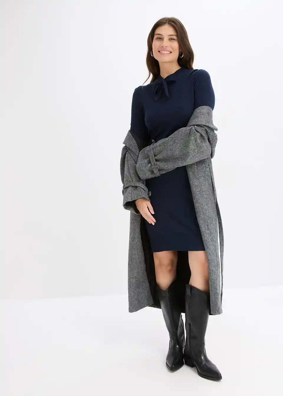 Elegantes Strickkleid mit Zierschal