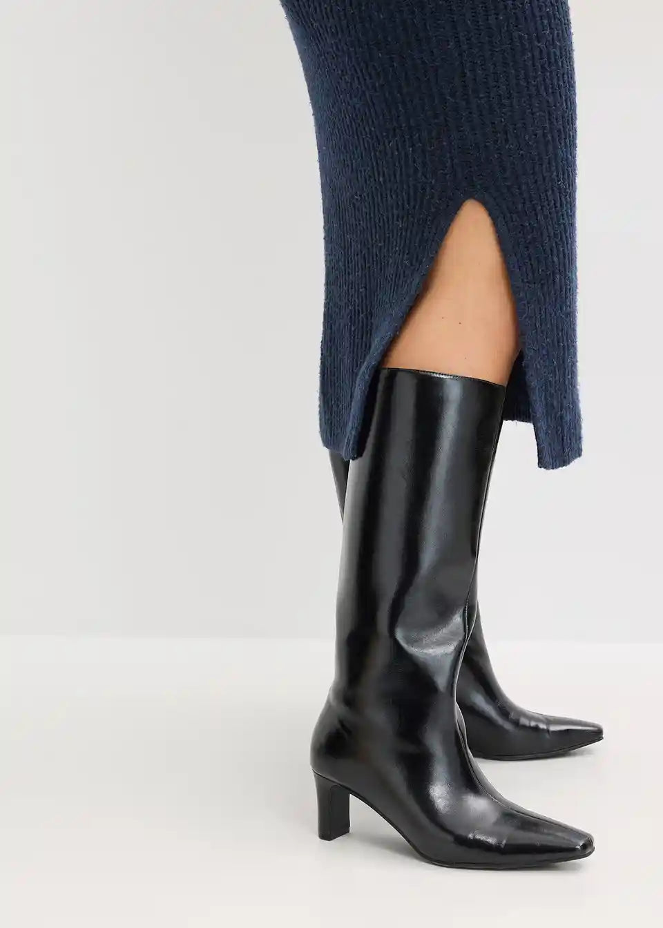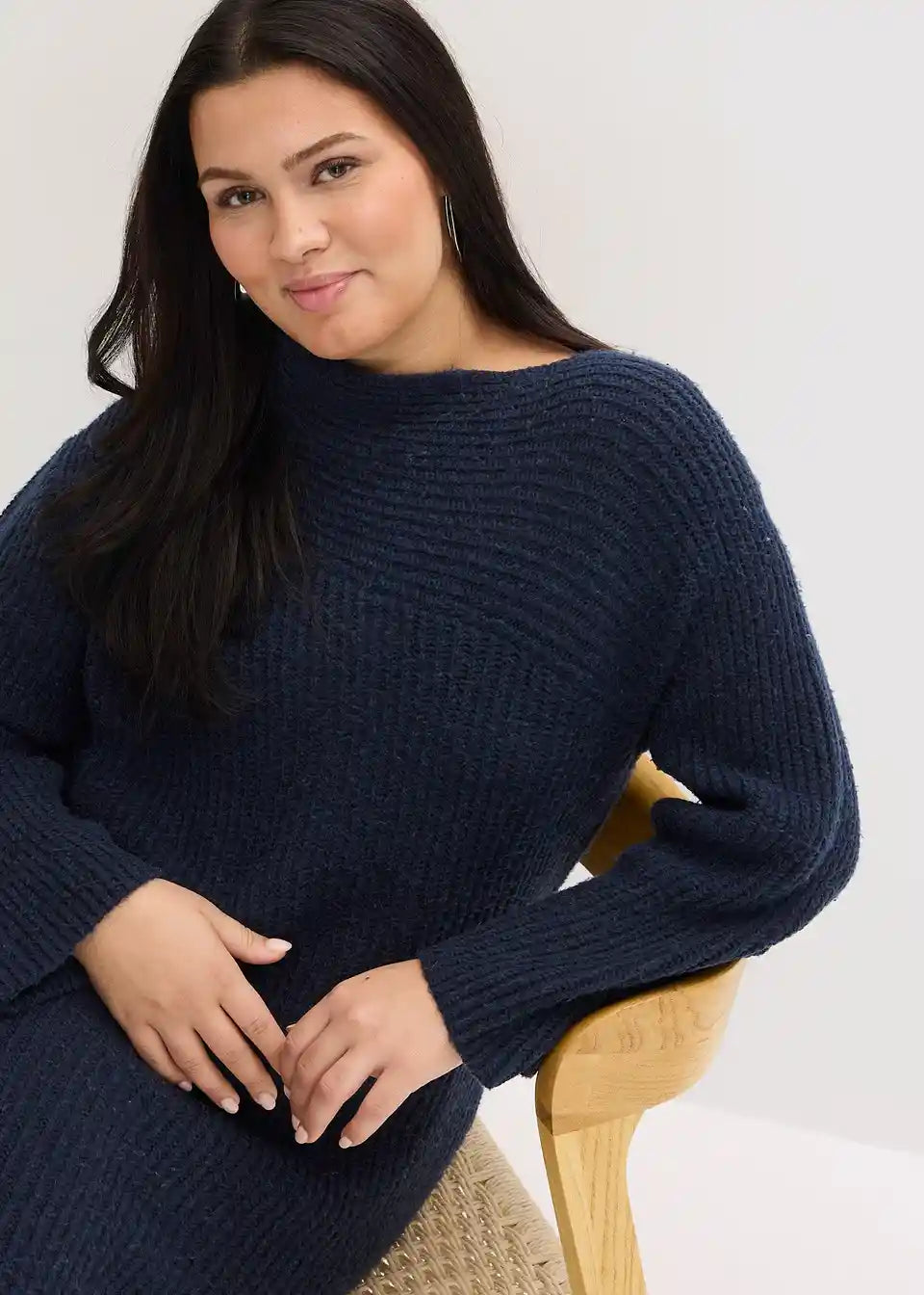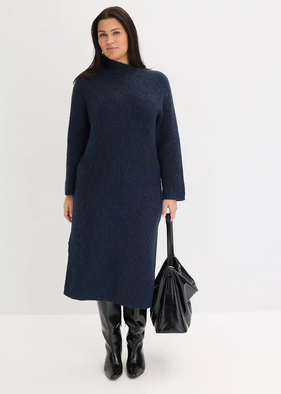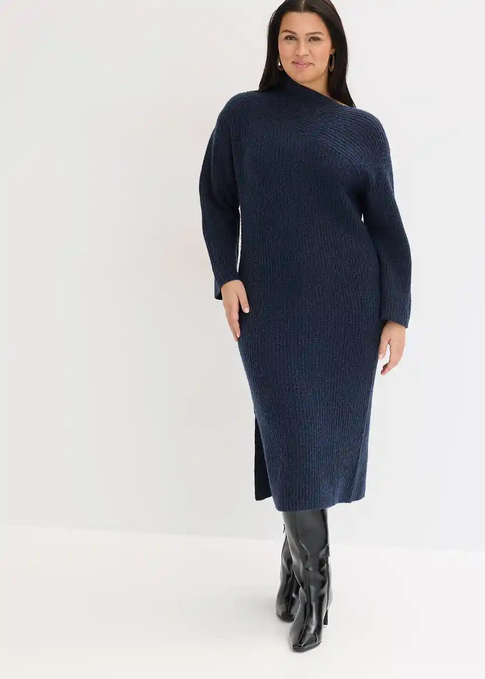 Mit asymmetrischem Ausschnitt und Schlitz am Saum