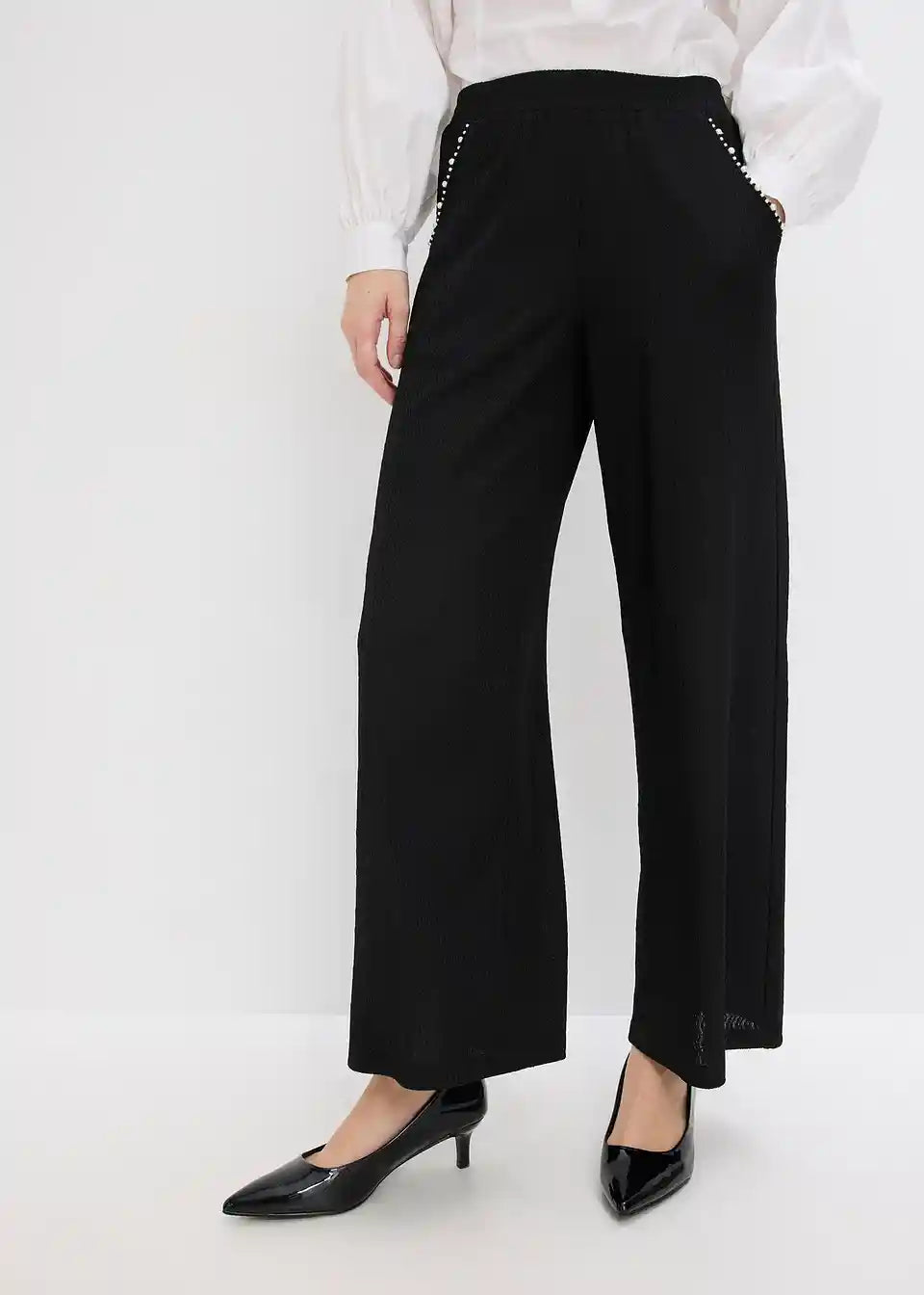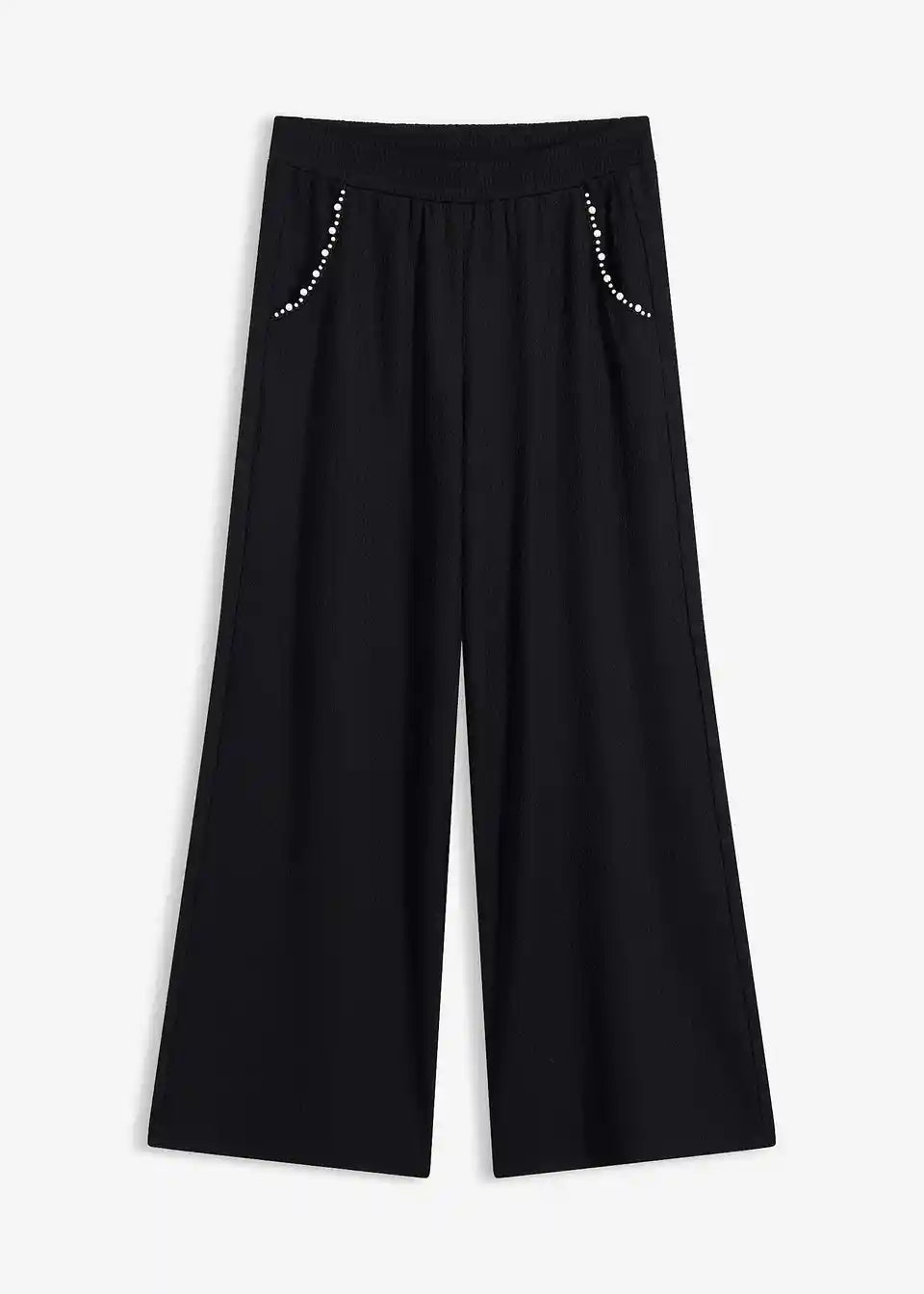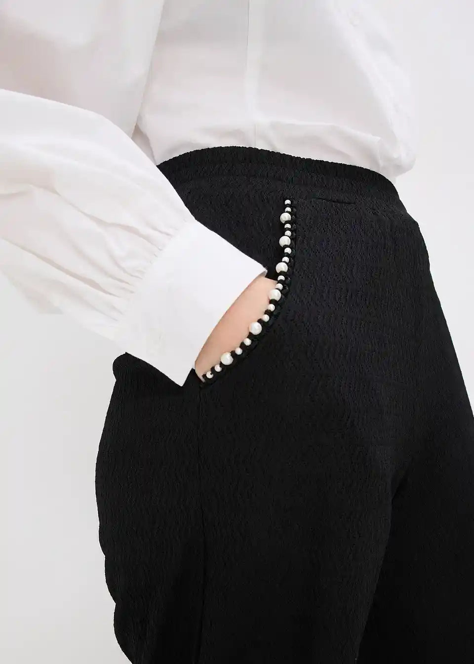 Hose mit Perlen Applikation aus strukturiertem Jersey