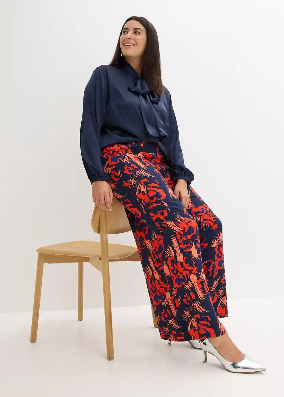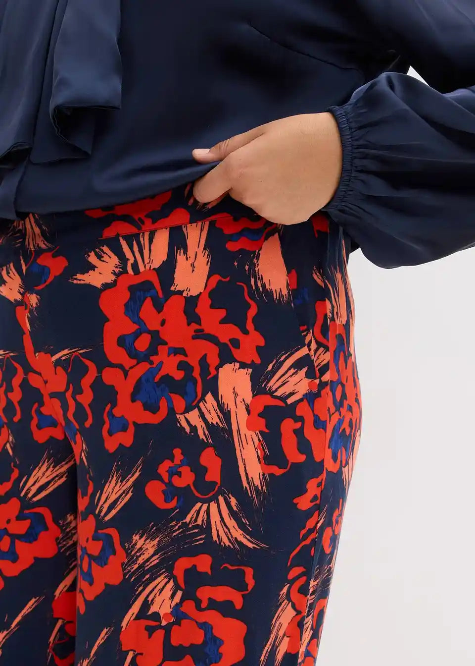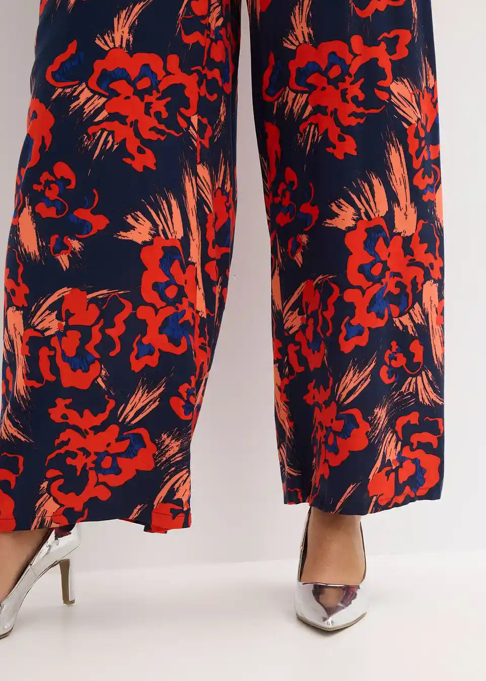 weit geschnittene Palazzo-Hose aus leichtem Viskose-Crêpe mit floralem Print und Gummibund hinten