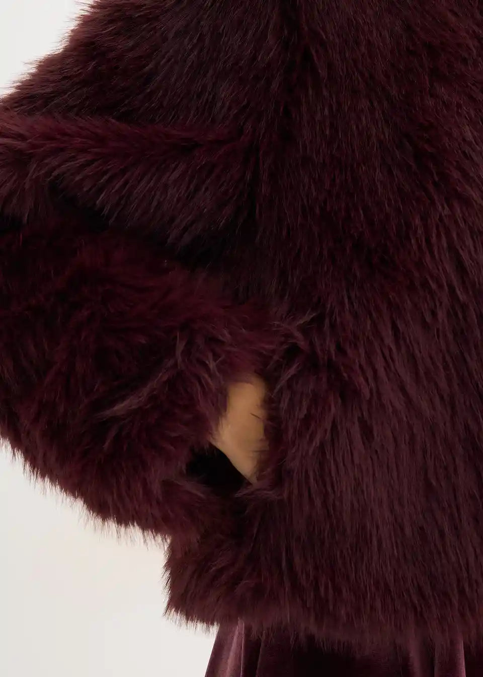 modische kurze Fellimitat-Jacke mit Rundhals-Ausschnitt und Haken-und Ösen-Verschluss vorne