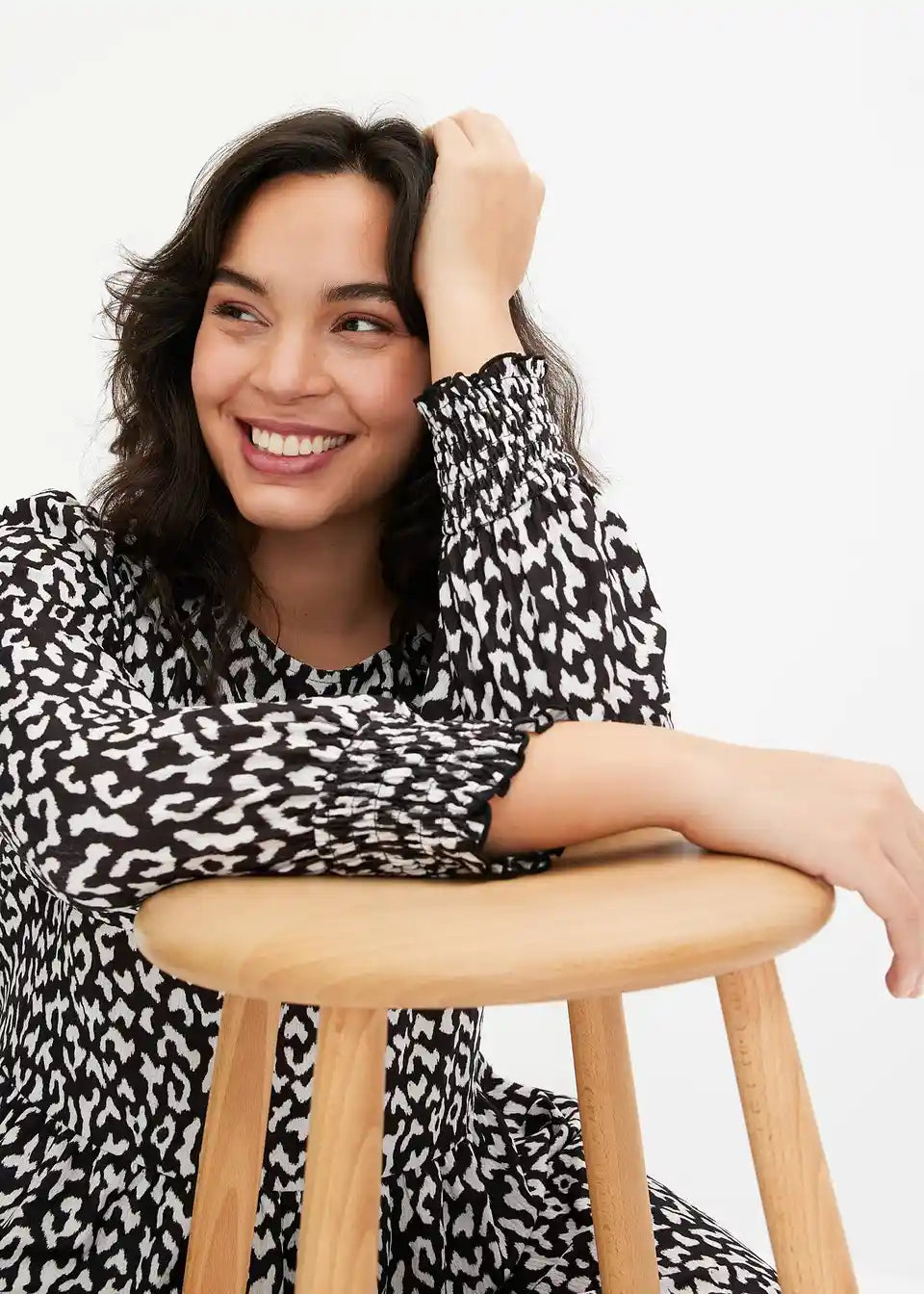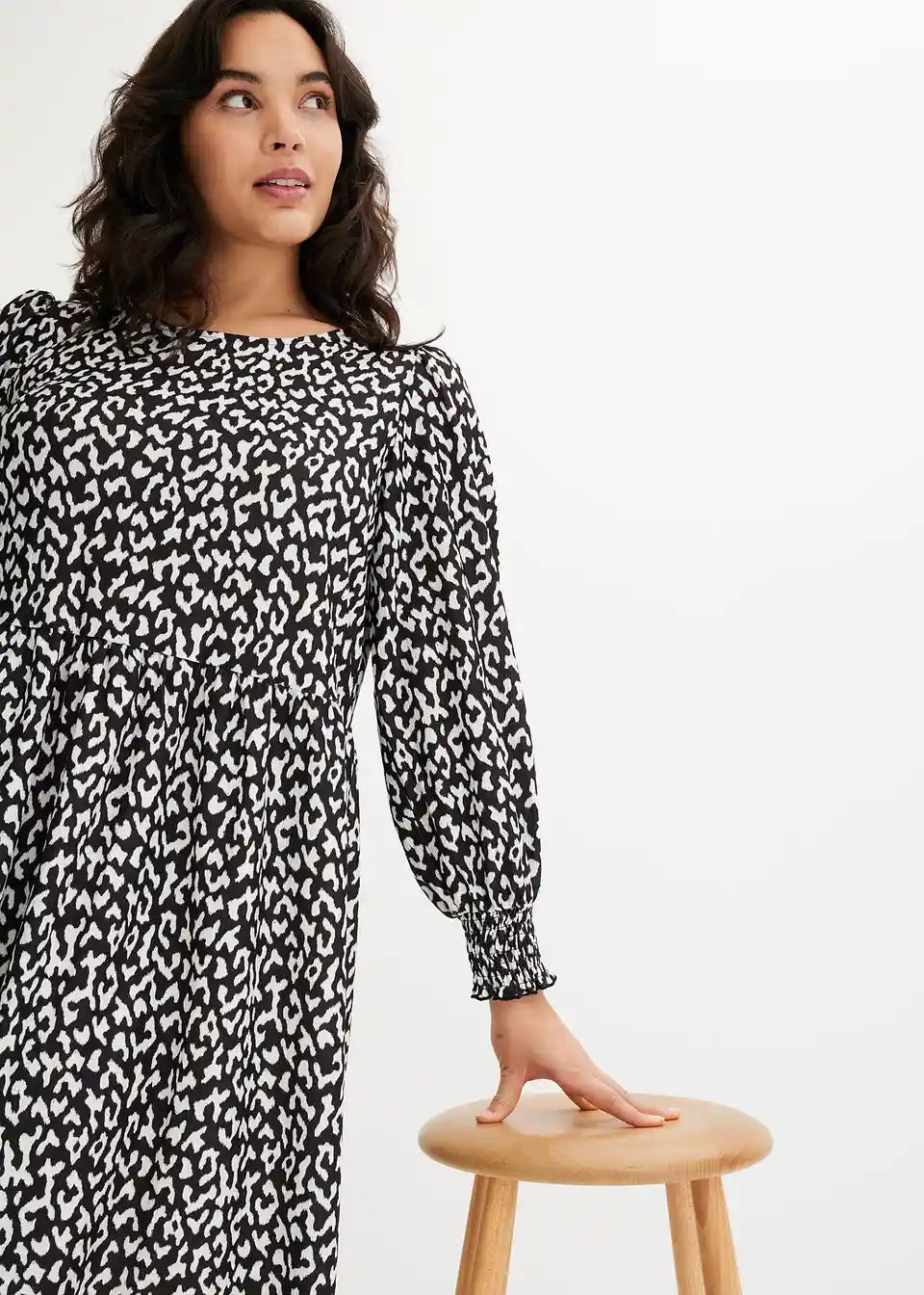 feminines Midikleid aus Struktur-Jersey mit Animal-Print