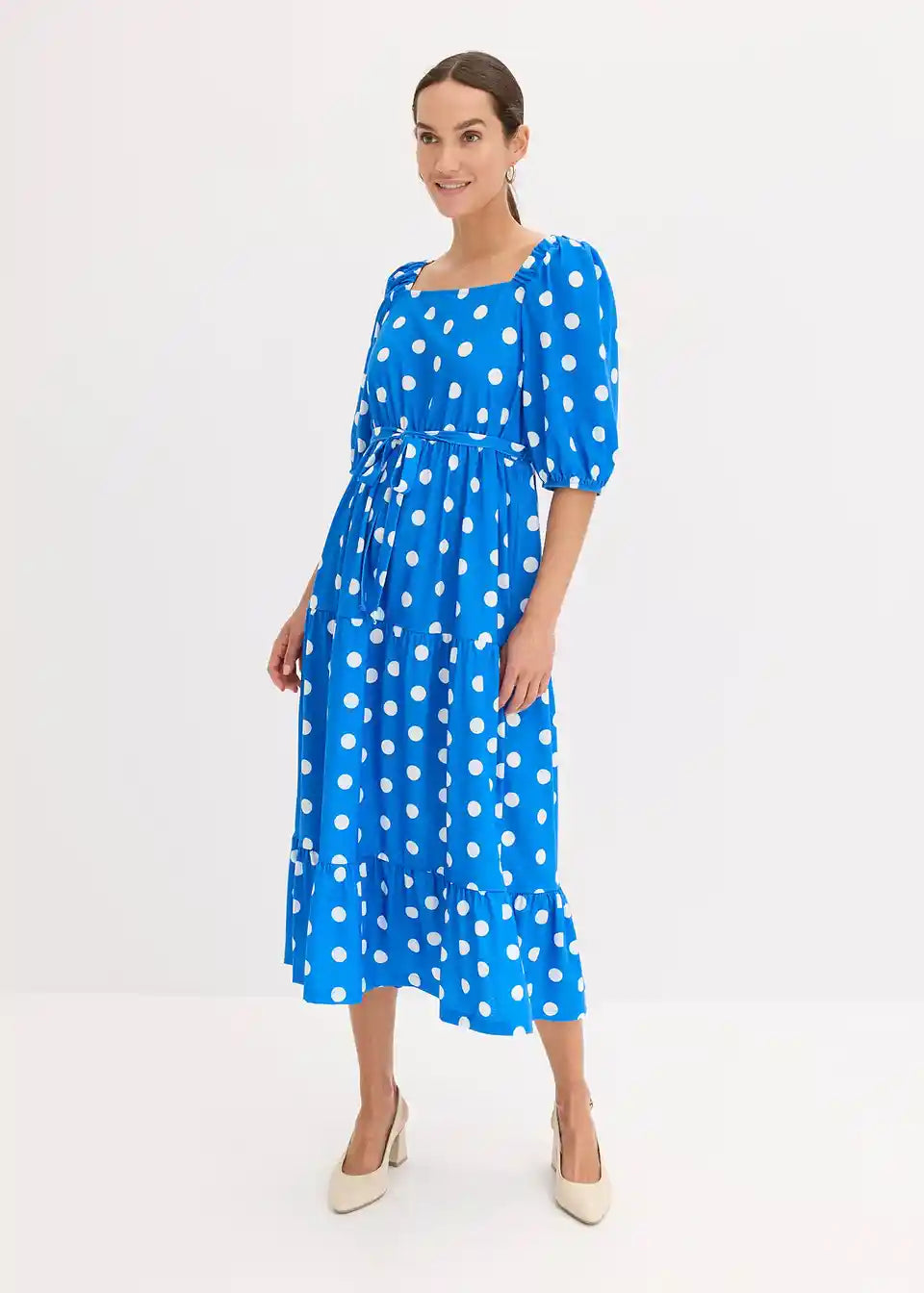 feminines Midi-Jerseykleid mit modischem Punkte-Print.