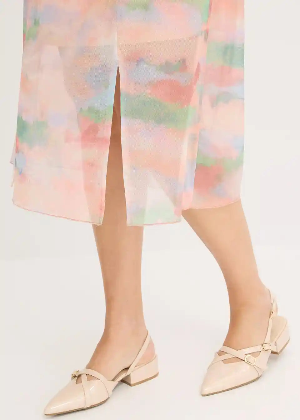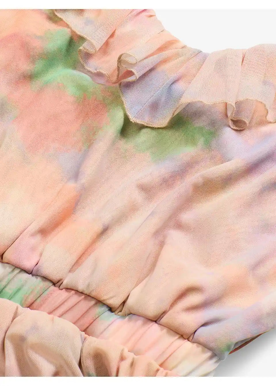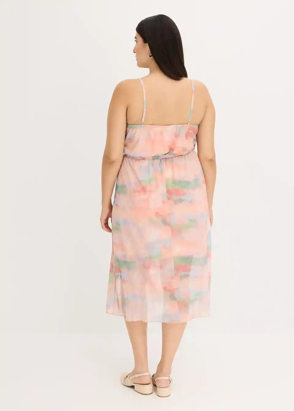 modisch bedrucktes Jerseykleid aus softem Mesh mit verstellbaren Spaghetti-Trägern und Volant vorne am Ausschnitt