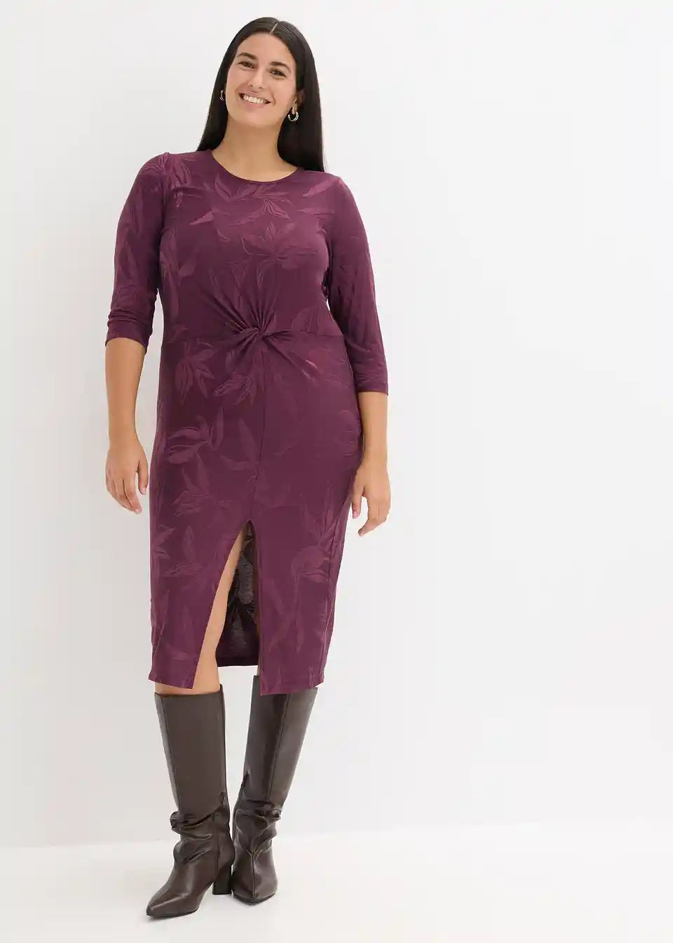 femines Jerseykleid in Midilänge aus modischem Jacquard-Jersey