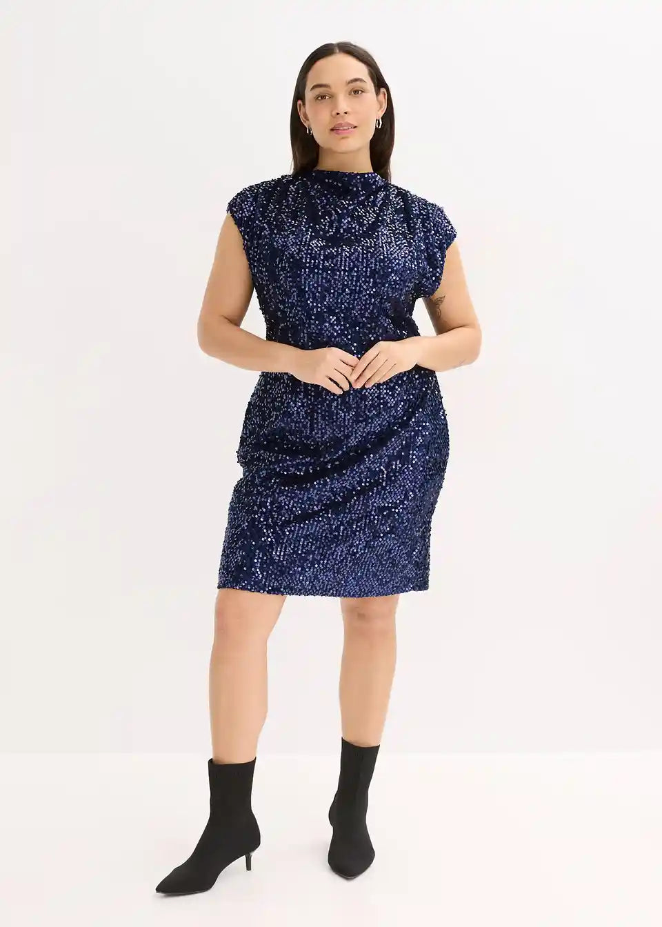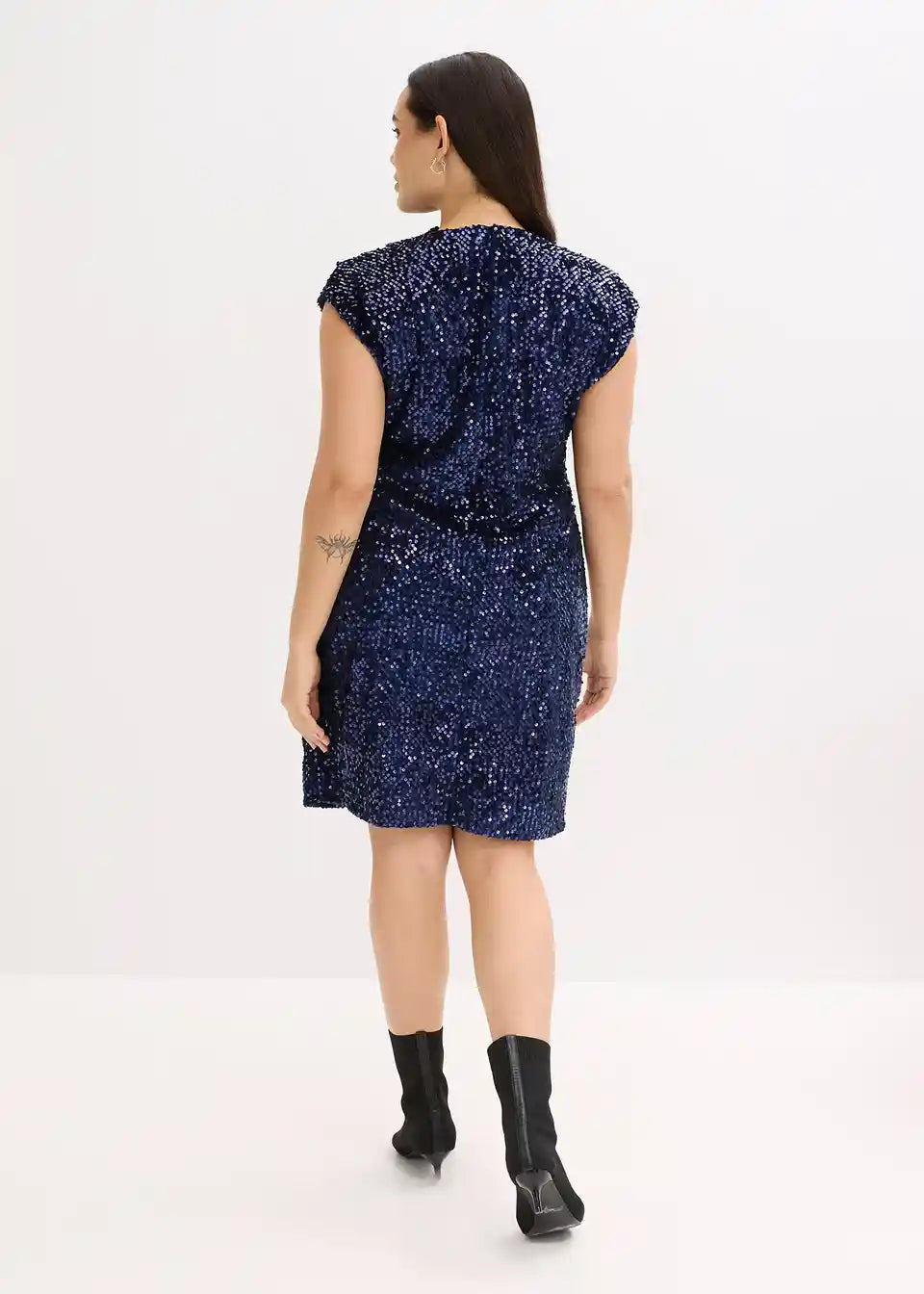 figurbetonendes Paillettenkleid mit Schulterpolstern und Raffungs-Detail an der Schulter
