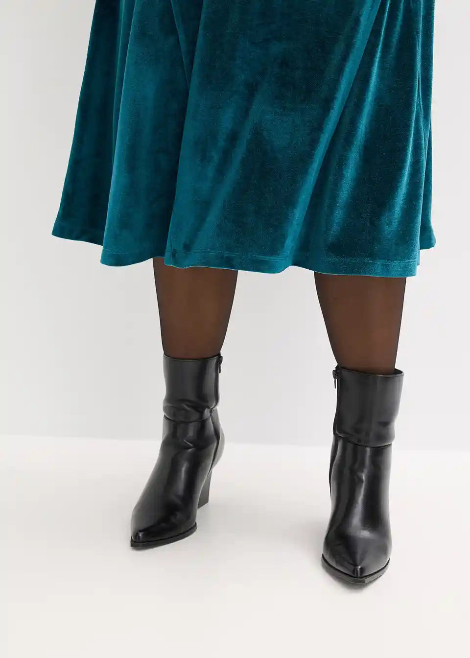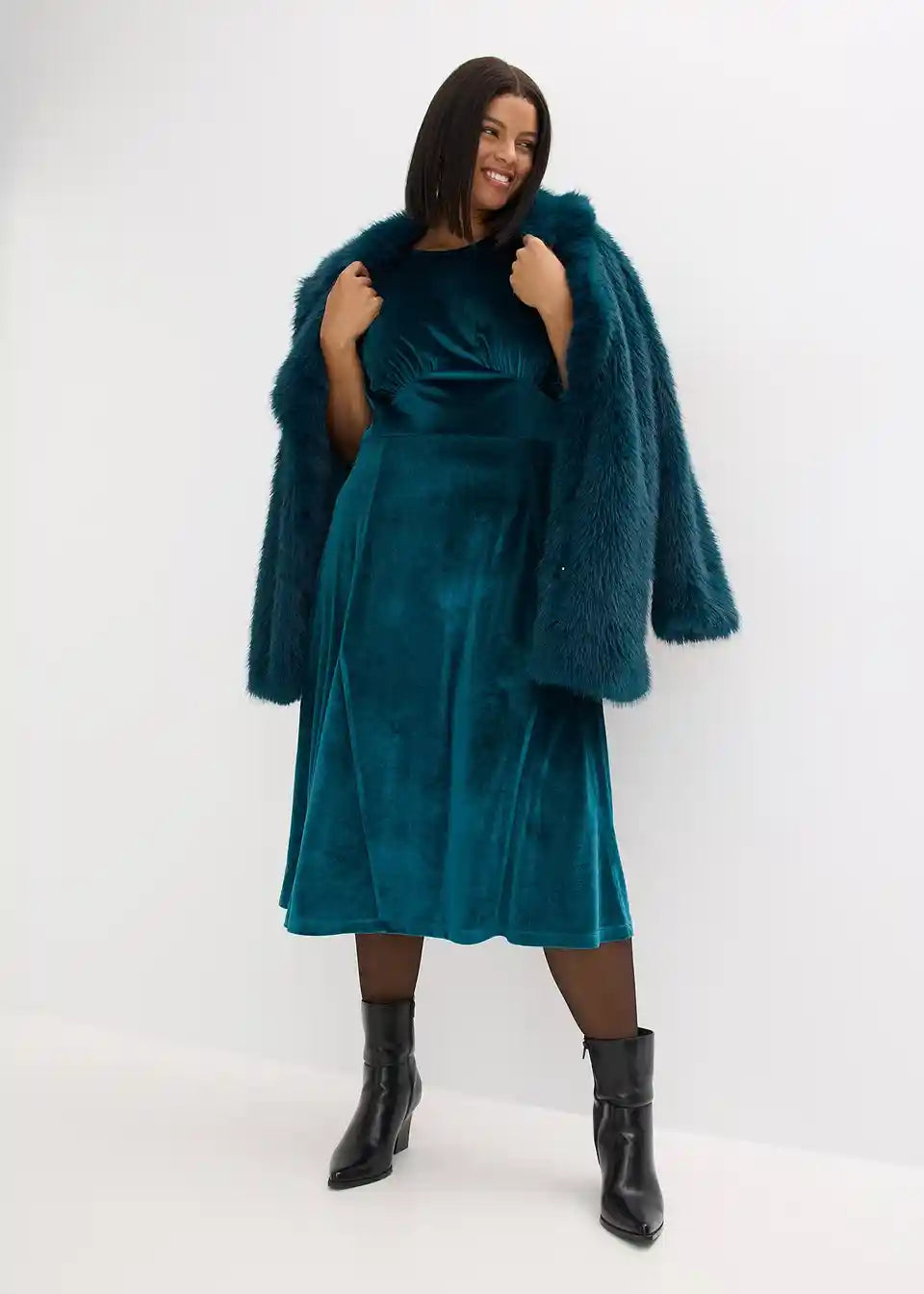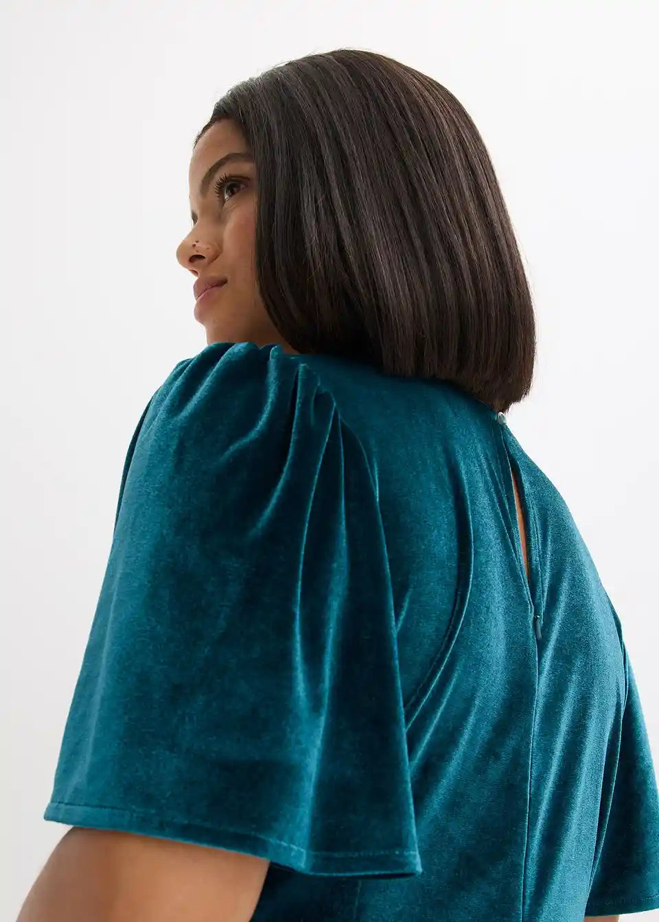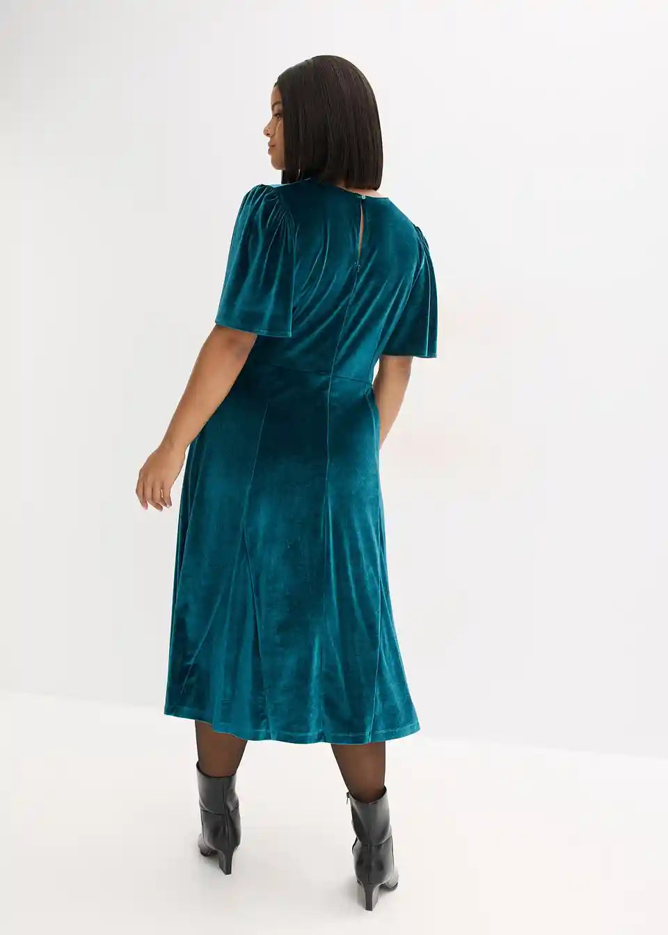 feminines Midikleid aus softem Samt mit weitem Rock und Flügelärmeln