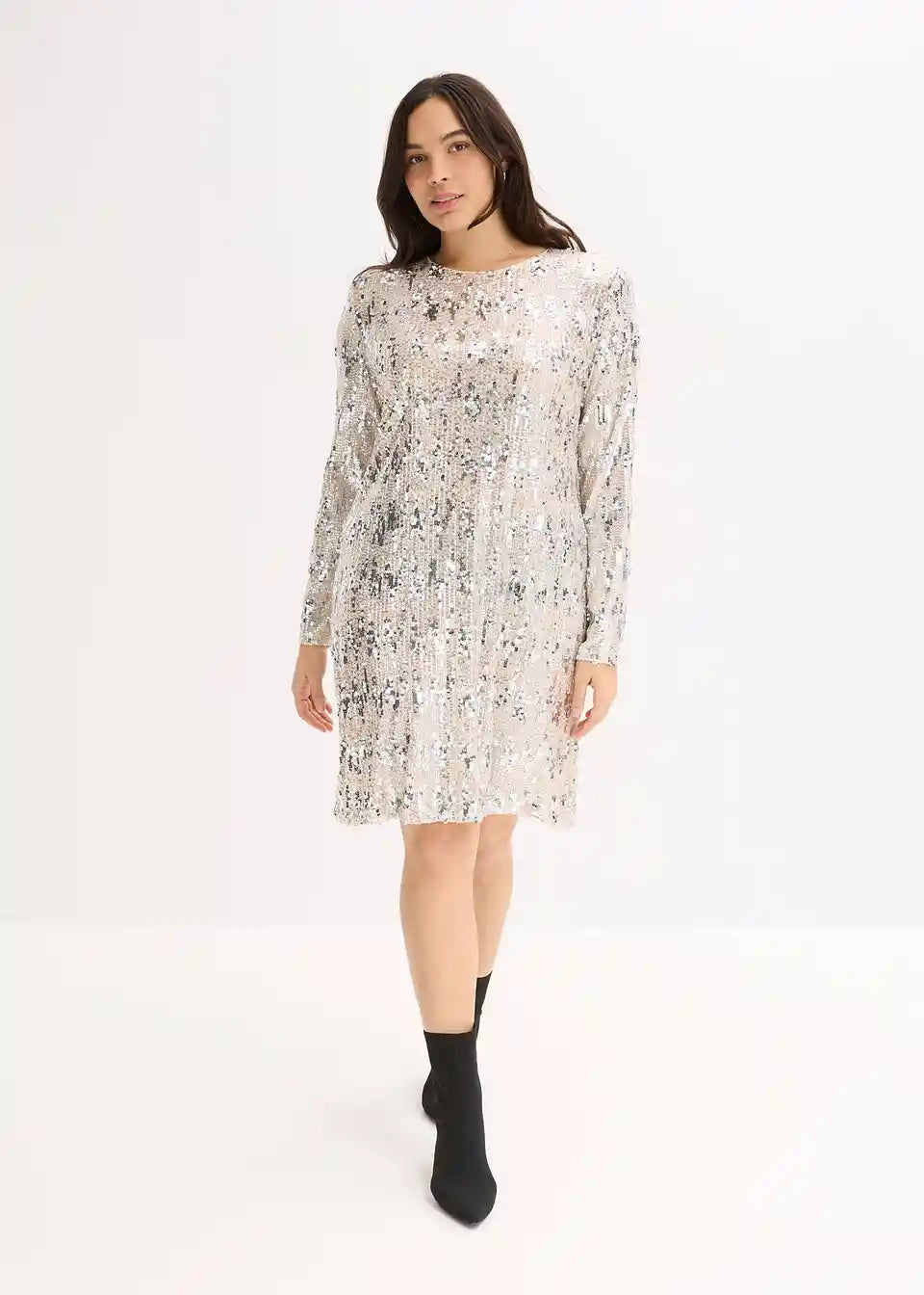 schmal geschnittenes Paillettenkleid mit Rundhals-Ausschnitt