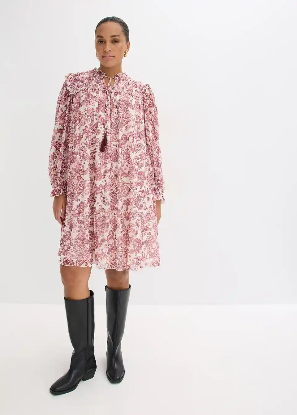 feminines Tunika-Kleid aus softem Mesh mit Binde-Detail vorne am Ausschnitt