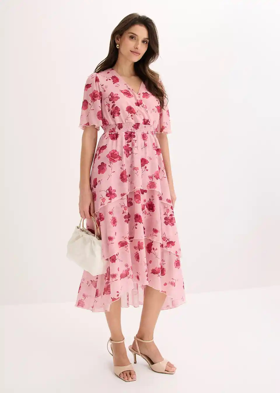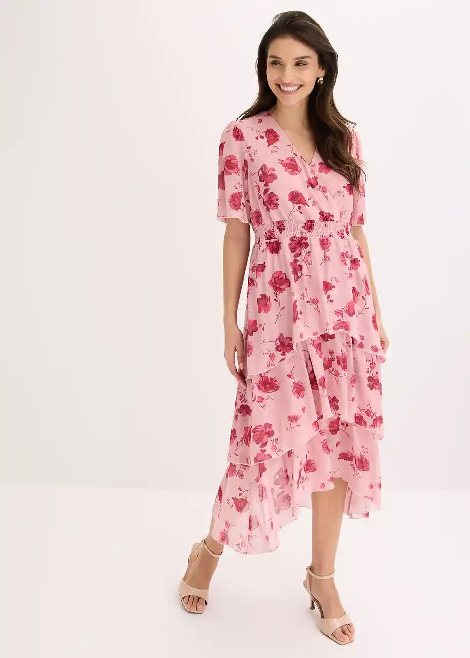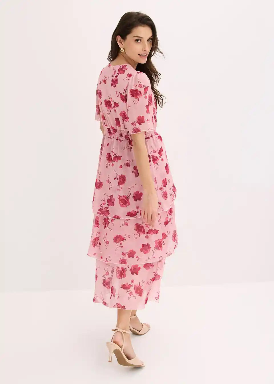 feminines Midikleid aus softem Mesh mit floralem Print