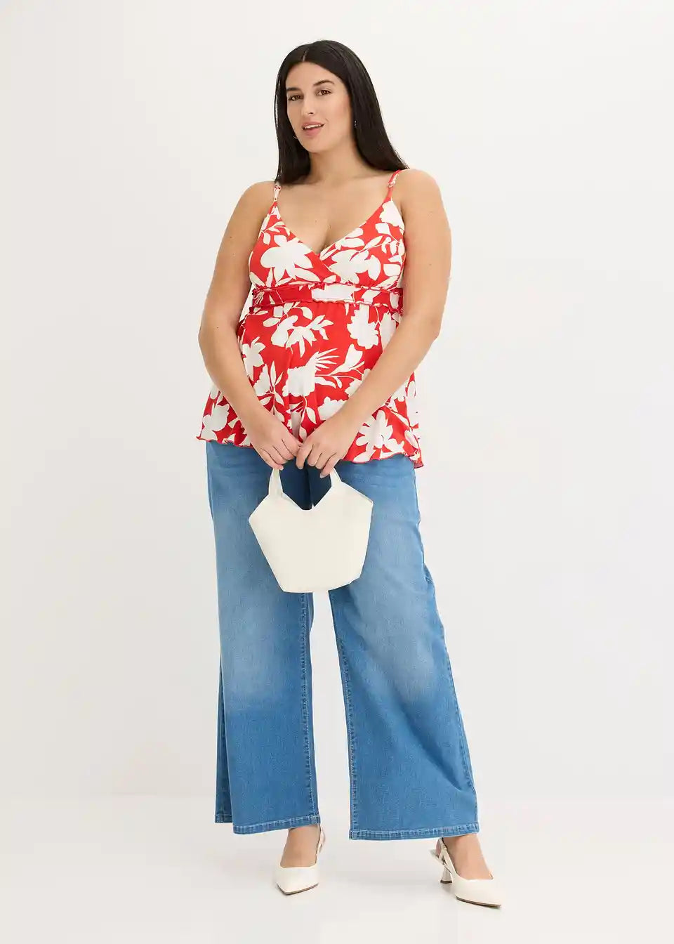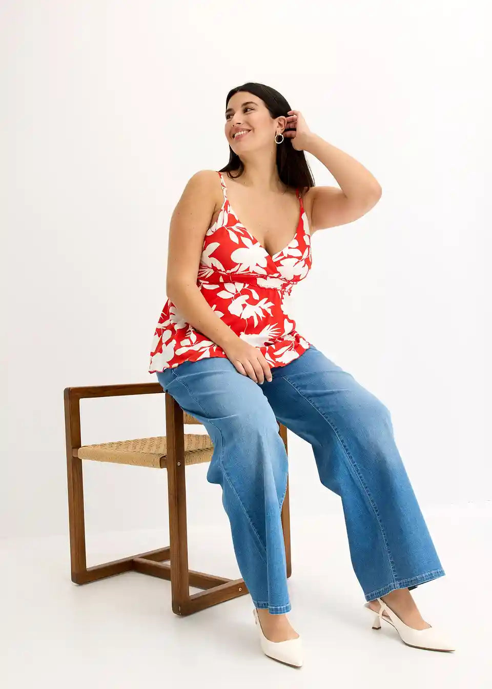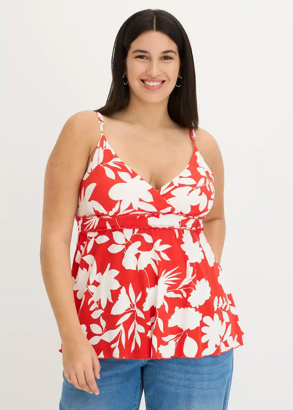 floral bedrucktes Spaghettiträger-Top aus softem Viskose-Mix mit verstellbaren Trägern