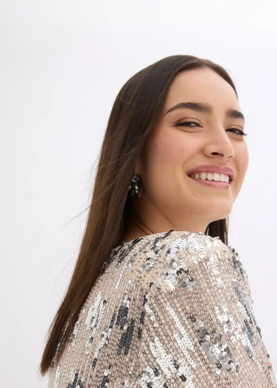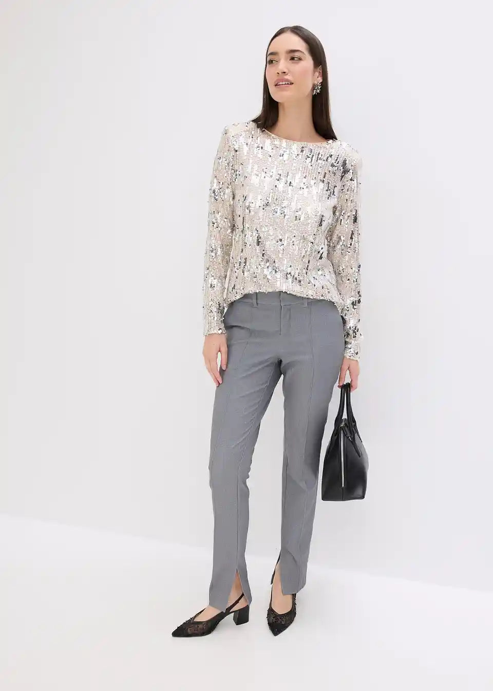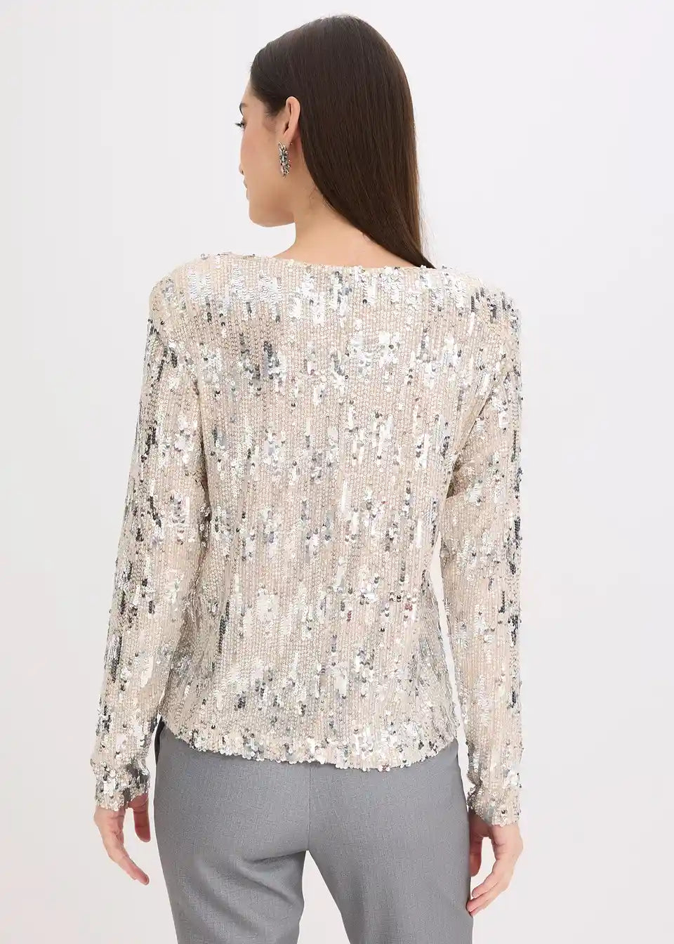 modisches Pailletten-Langarmshirt mit Schulterpolstern