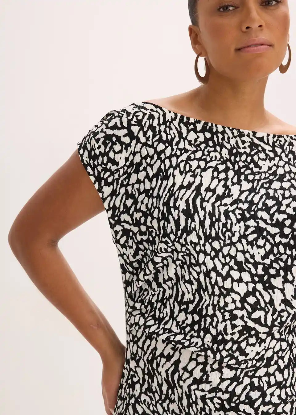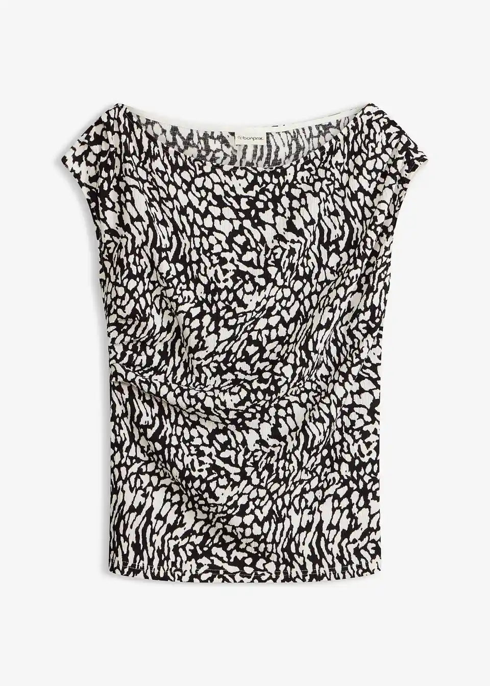 modisch bedrucktes Top aus strukturiertem Jersey mit Raffungen und leicht asymmetrischem Ausschnitt