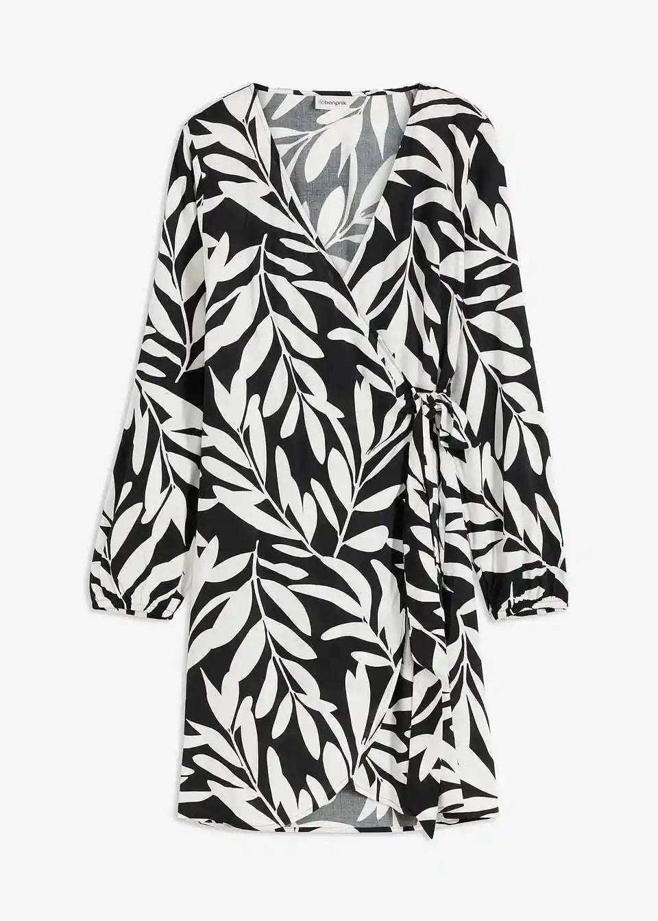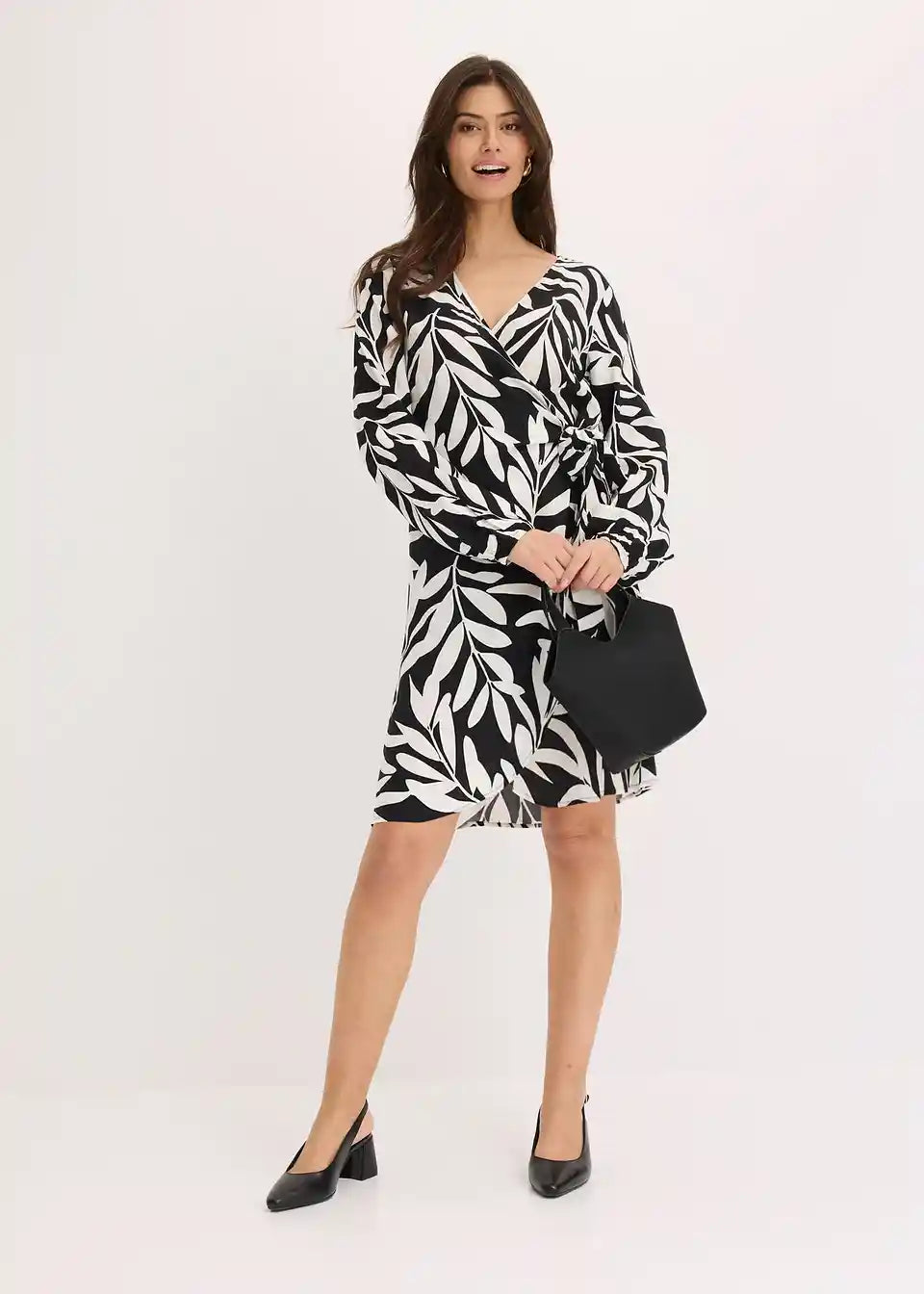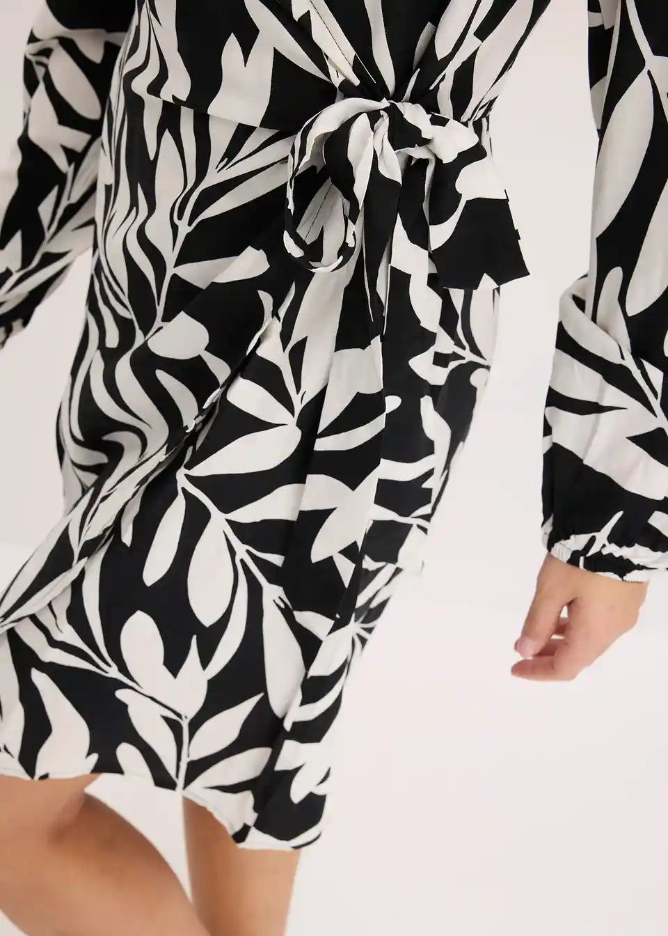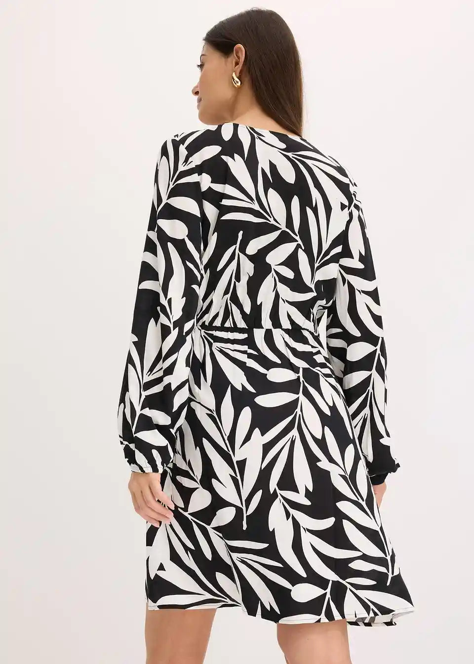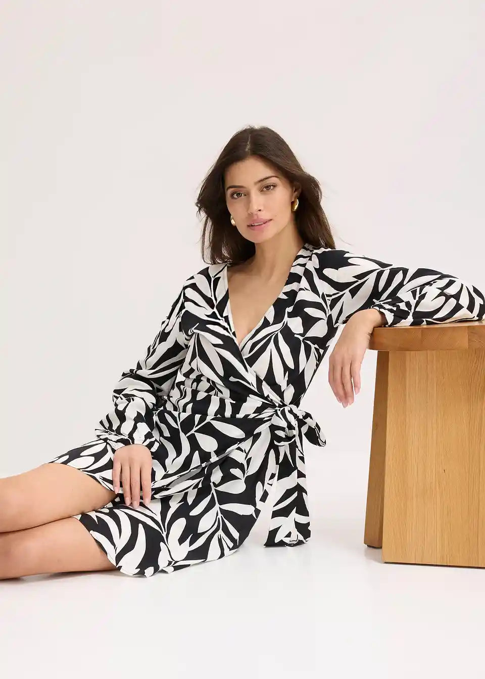 floral bedrucktes Wickelkleid mit tiefem V-Ausschnitt vorne.