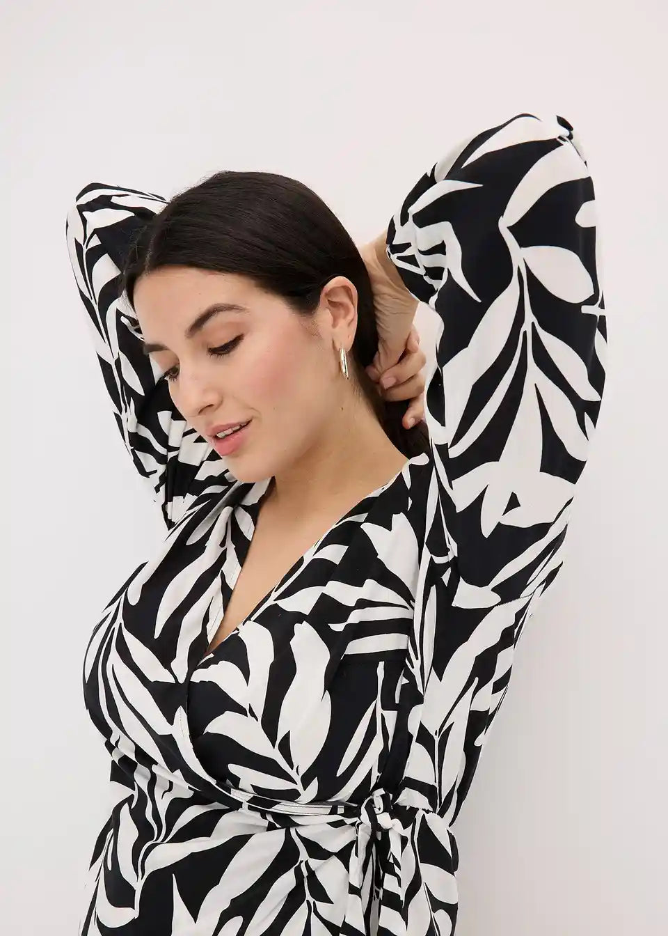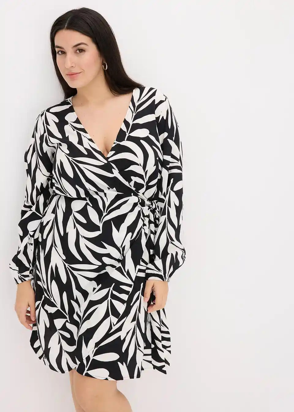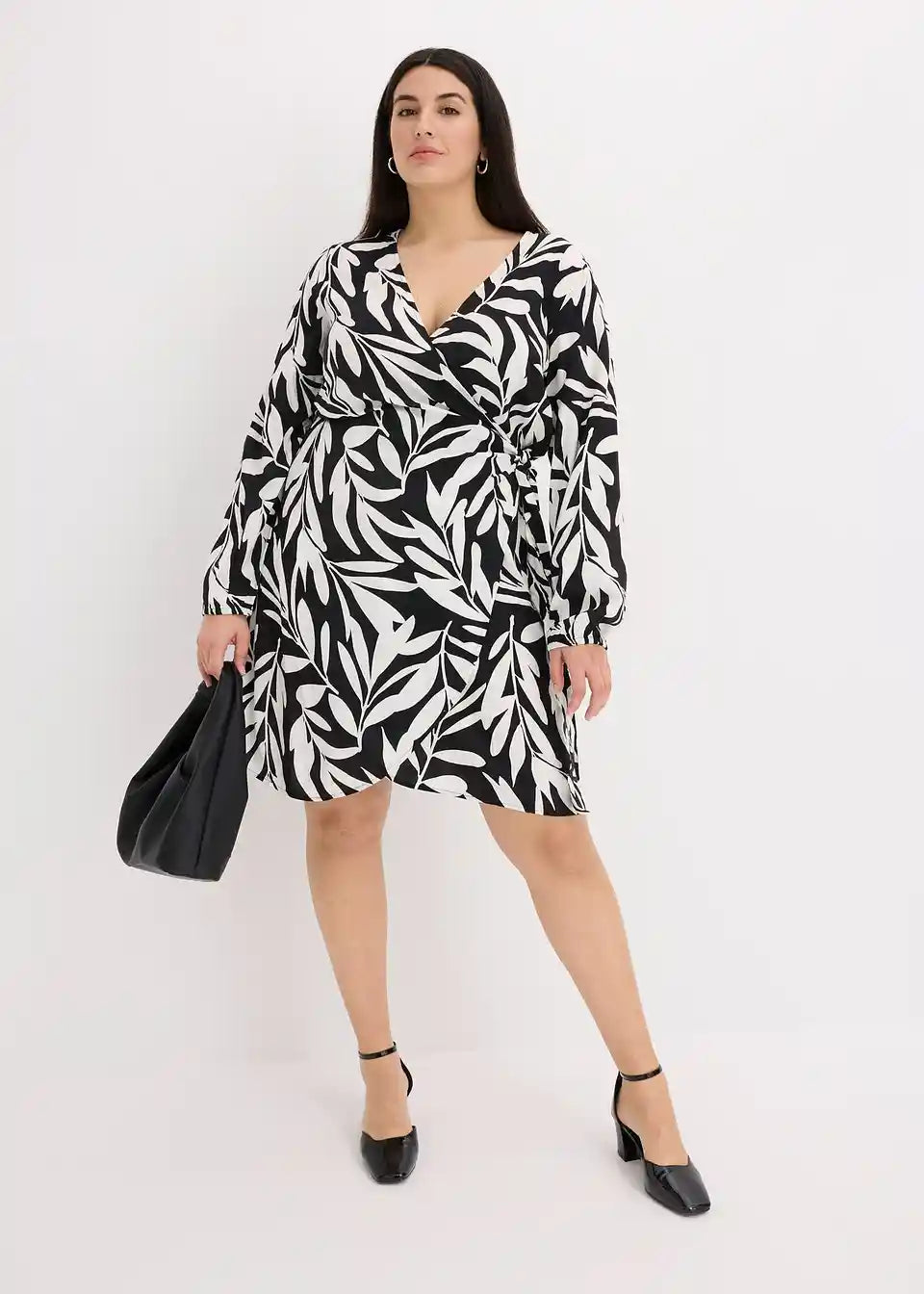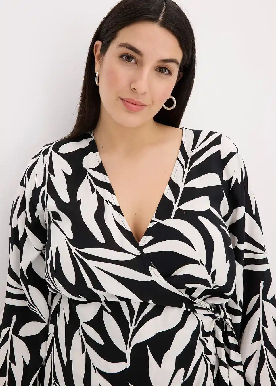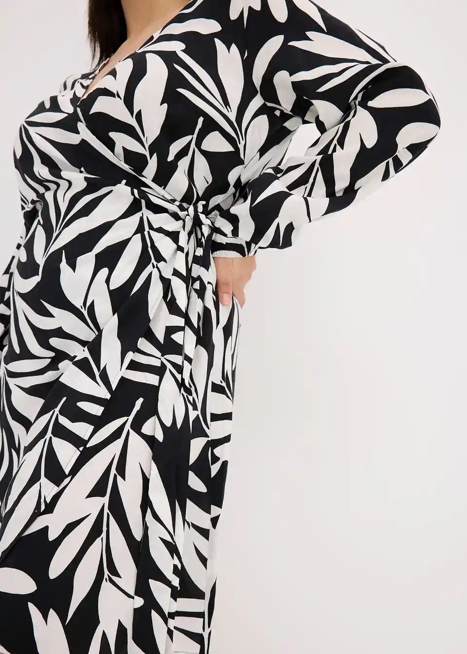 floral bedrucktes Wickelkleid mit tiefem V-Ausschnitt vorne.