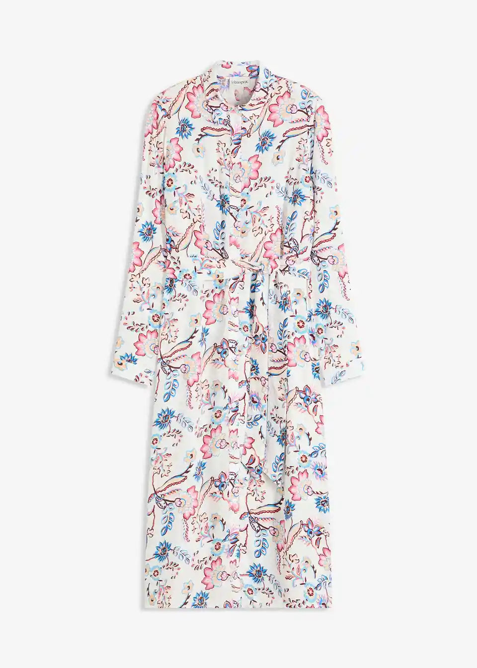 bedrucktes Blusenkleid in Midi-Länge mit Bindeband in der Taille
