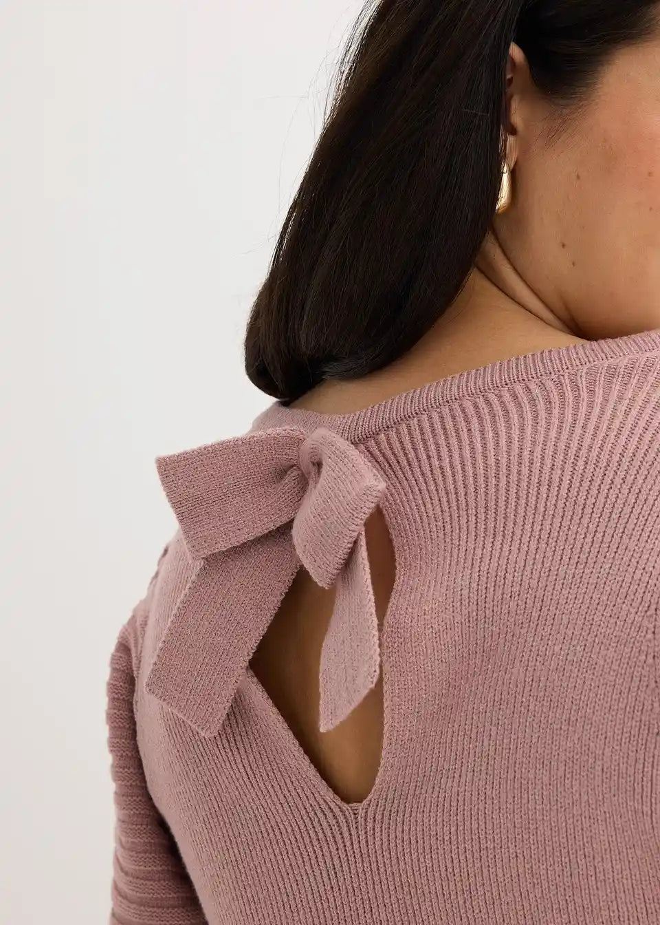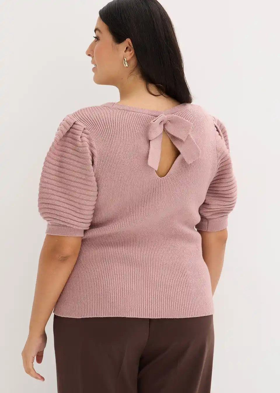 feminines Pullover mit halblangen Puffärmeln und dekorativem Schleifen-Detail hinten Am Ausschnitt