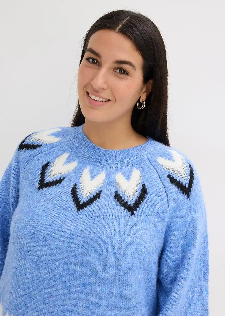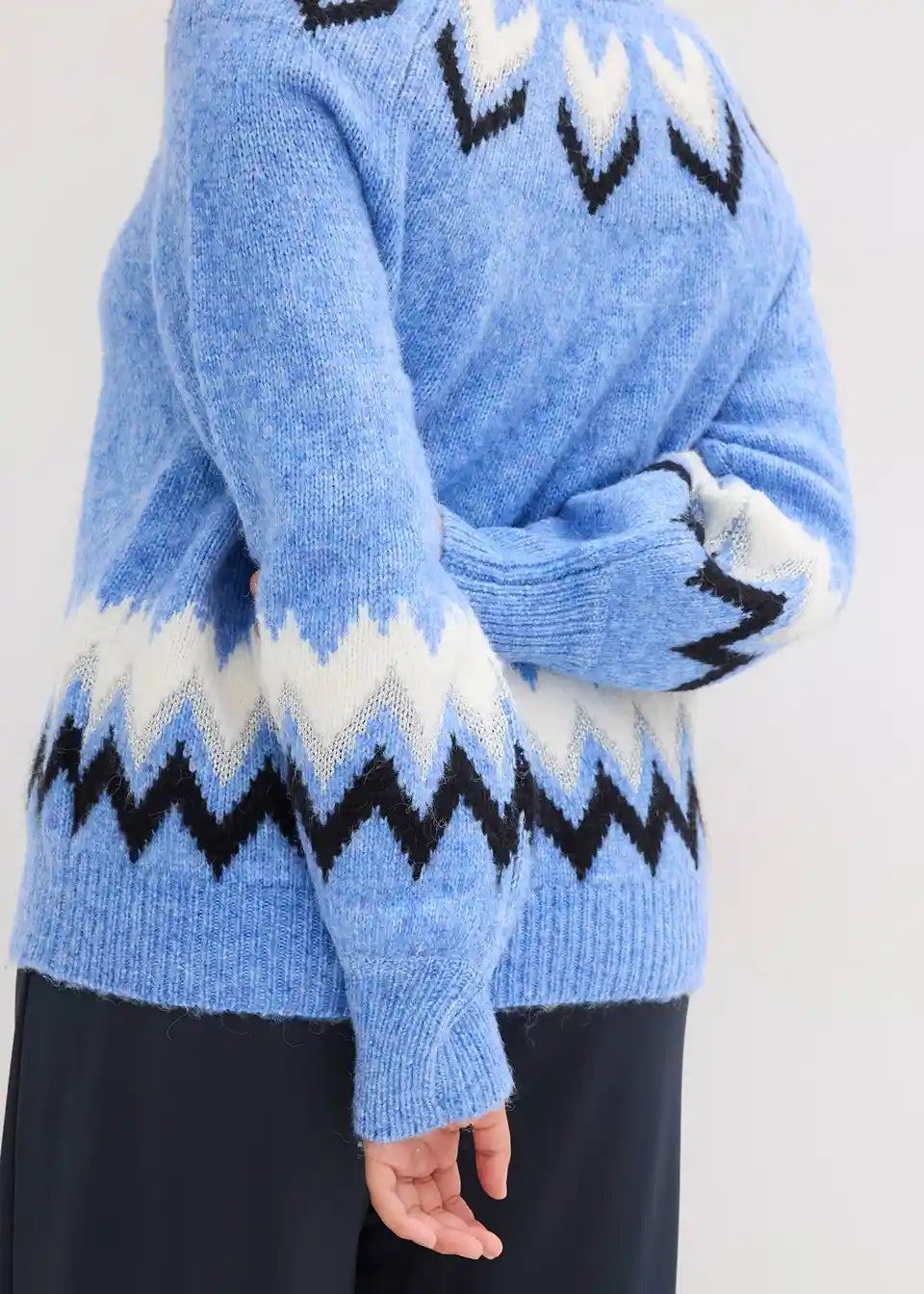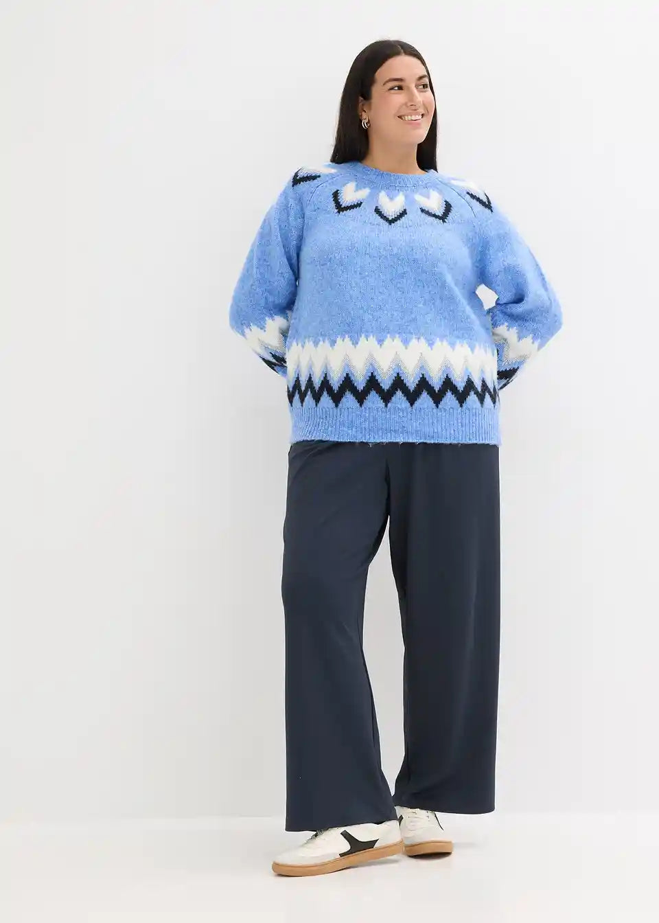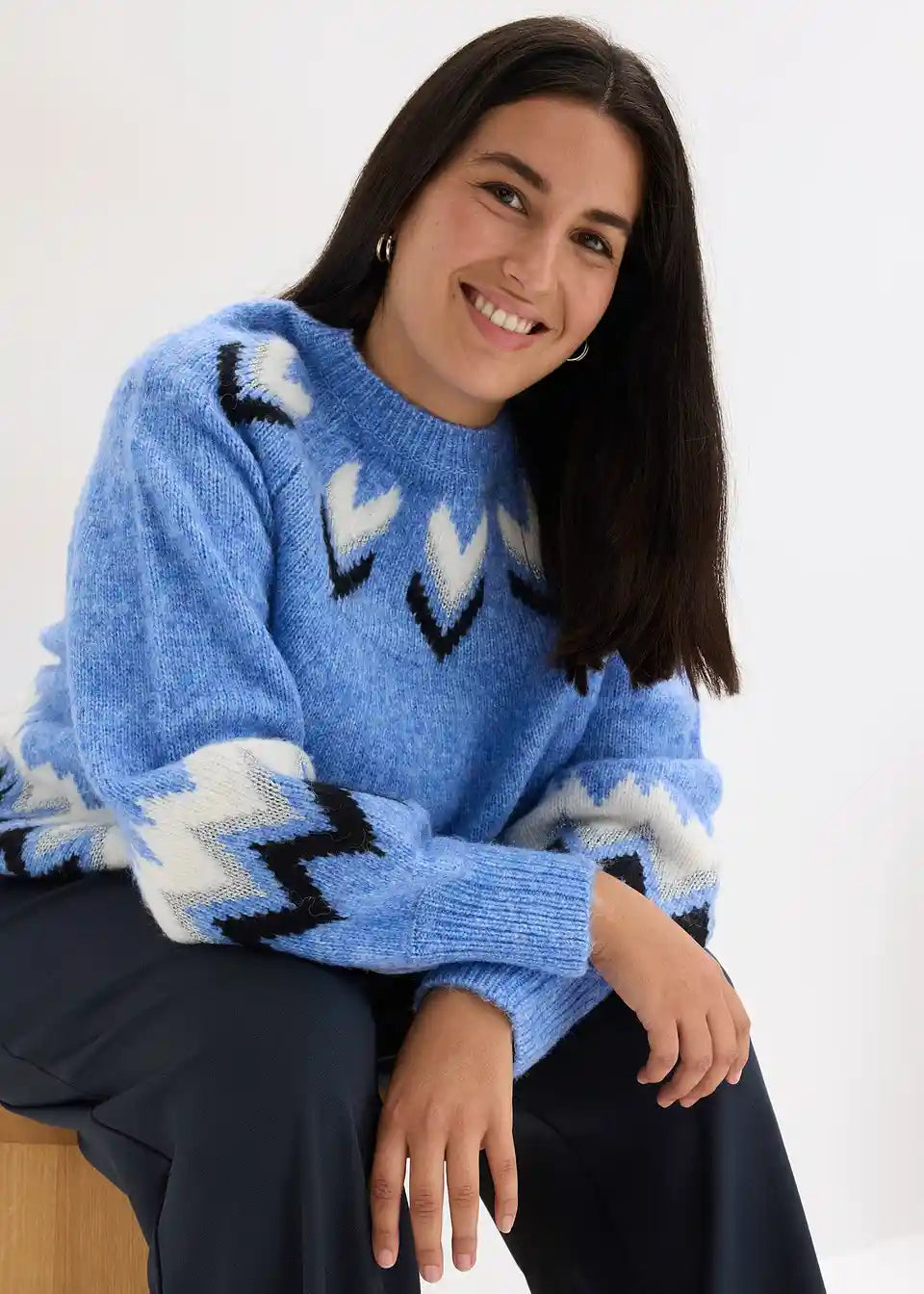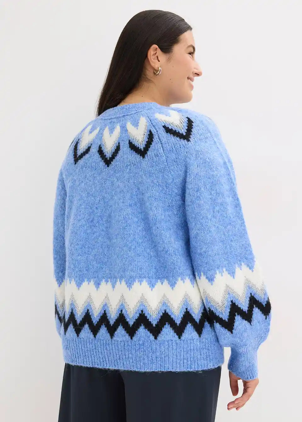 modischer Norweger-Pullover mit Glitzergarn und Ballonärmeln