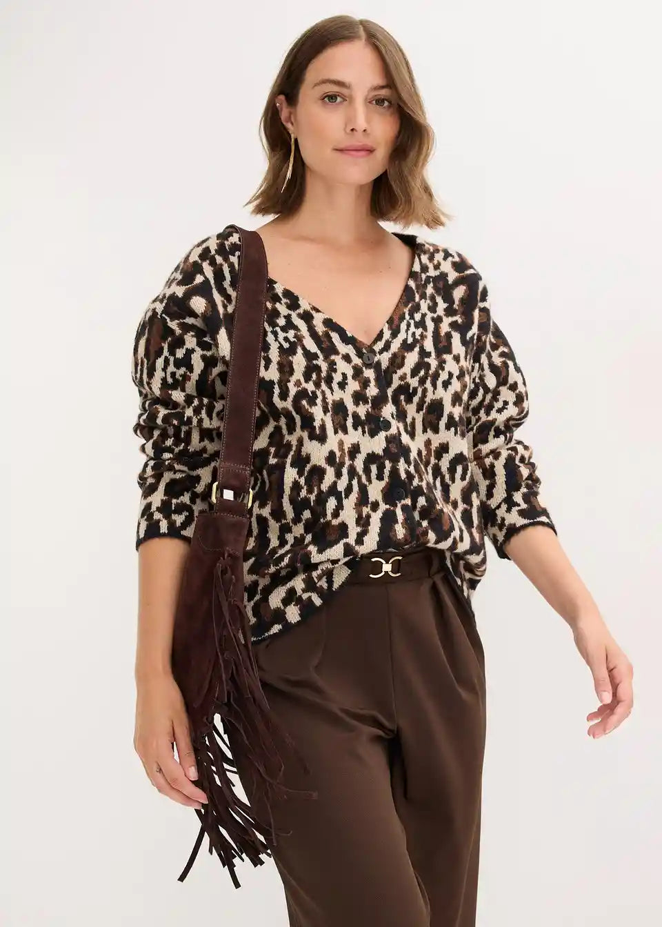 modische Jacquard-Strickjacke mit Knöpfen vorne