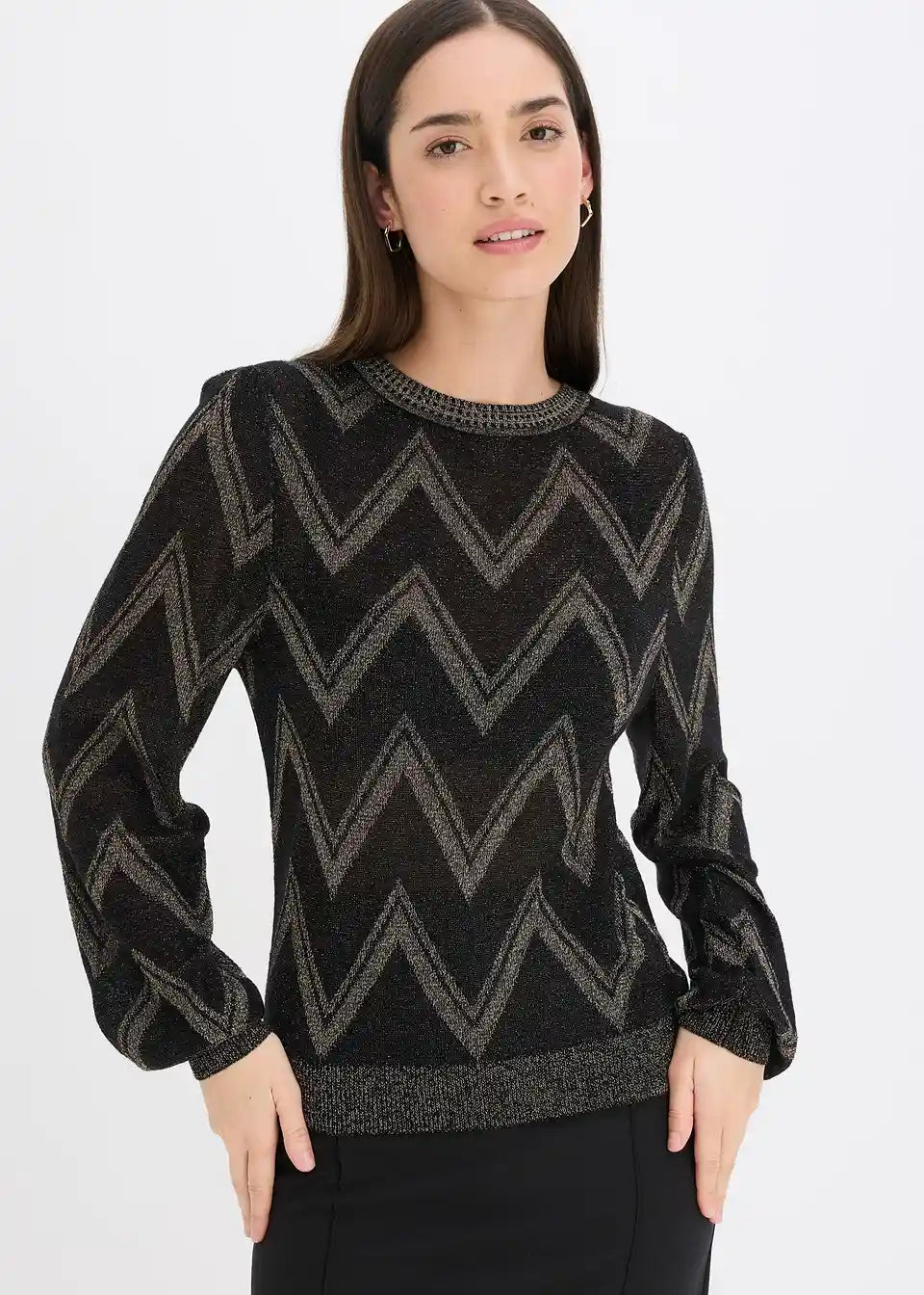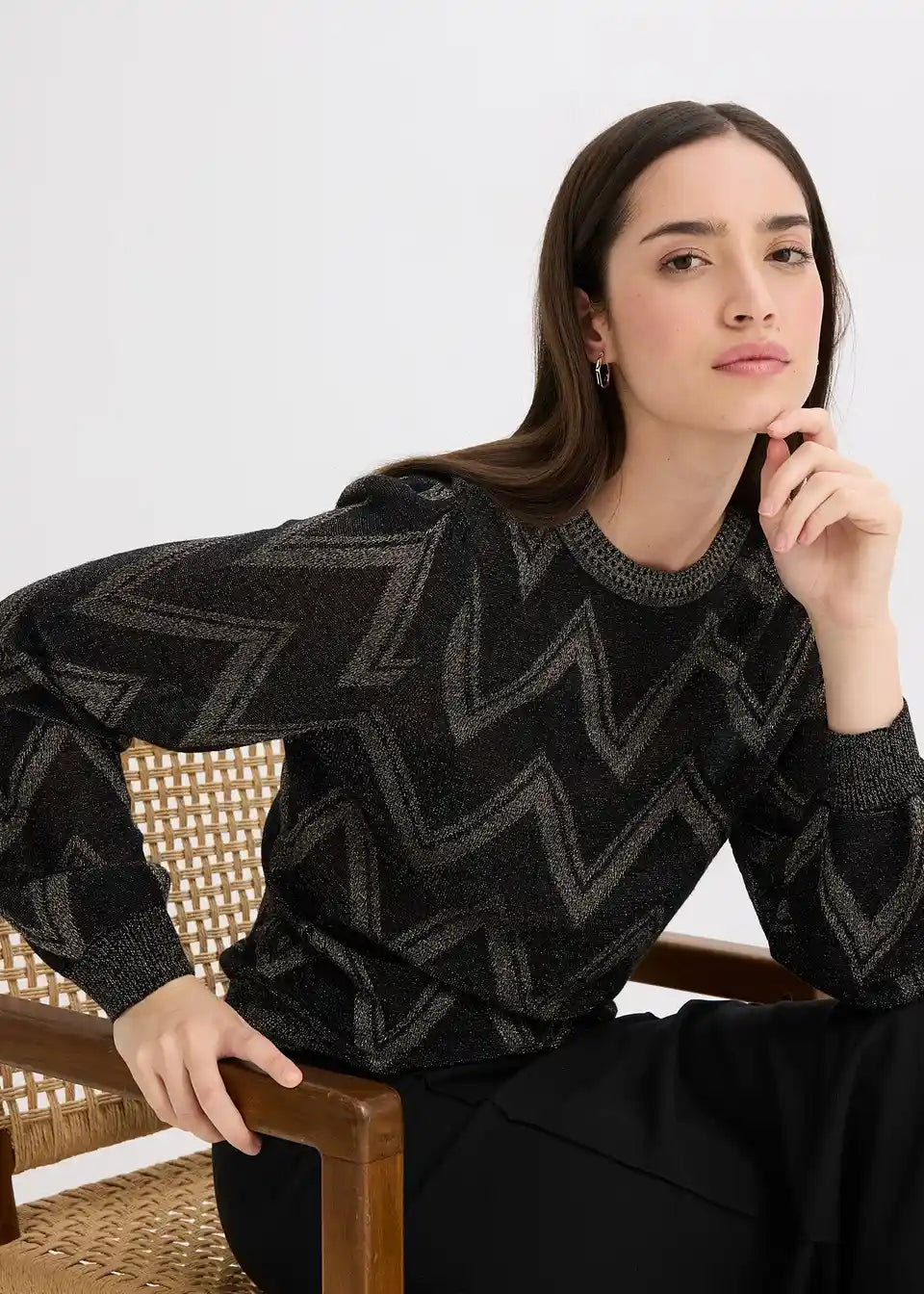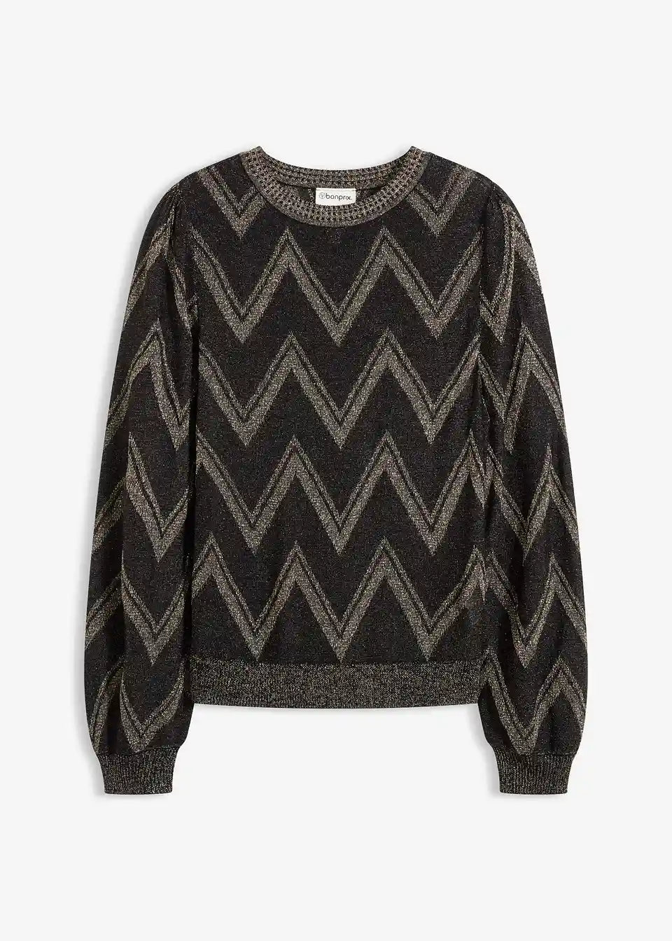 leicht transparenter Feinstrickpullover mit Glitzereffekt