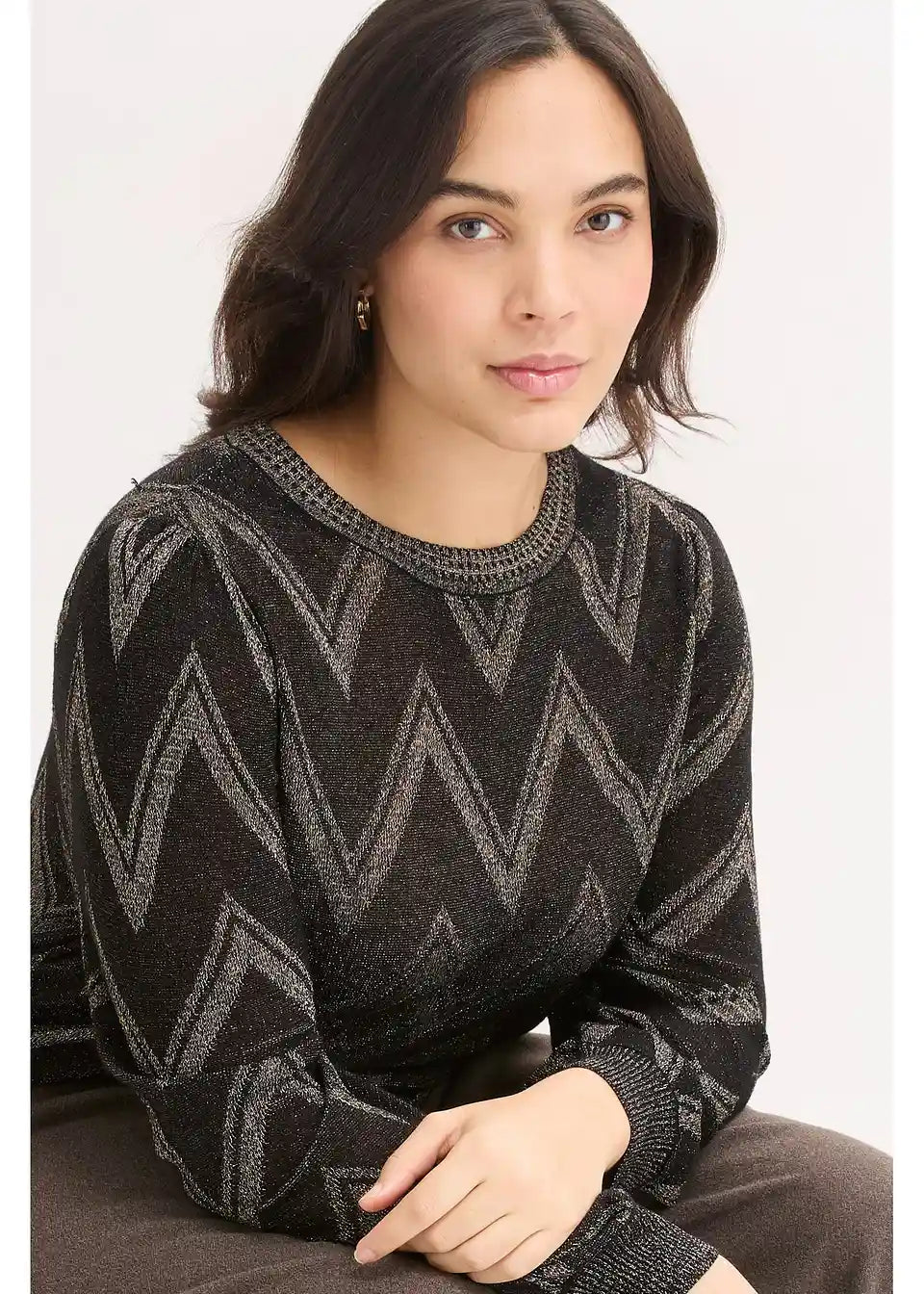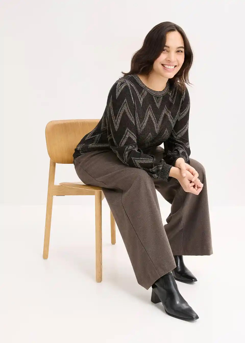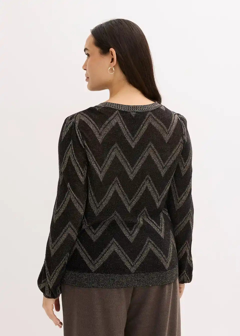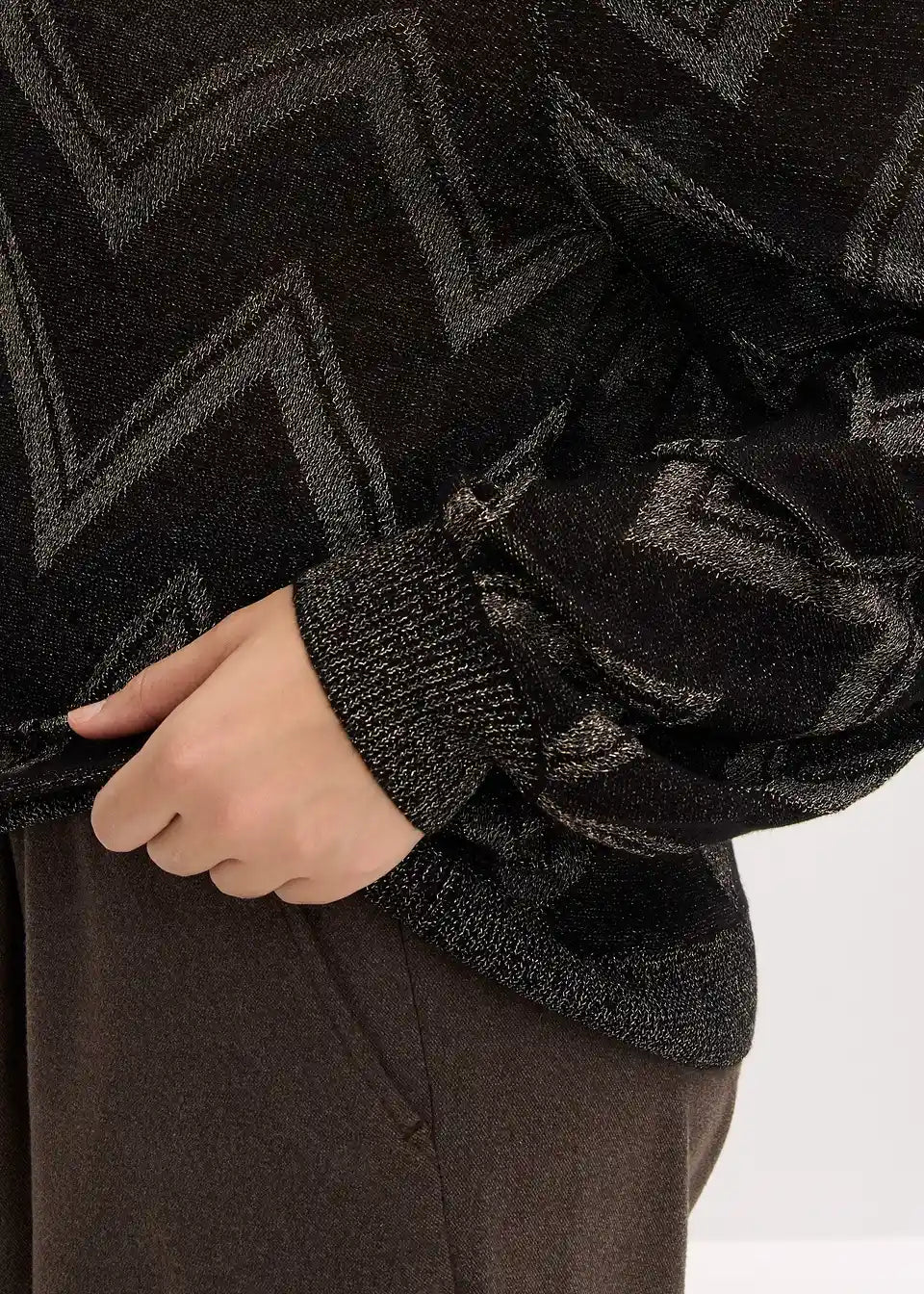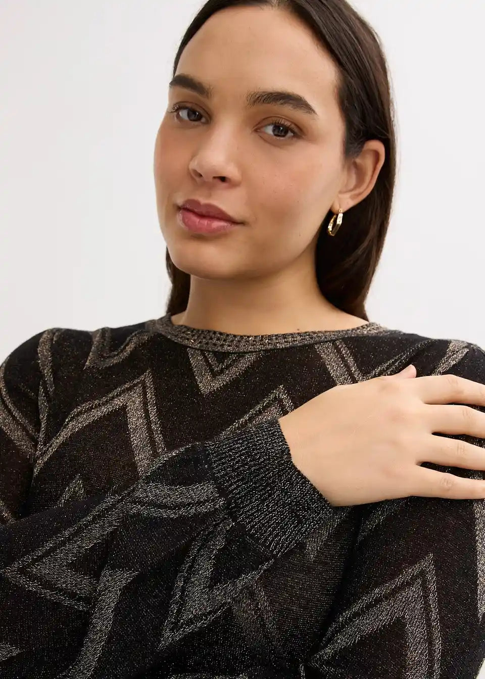 leicht transparenter Feinstrickpullover mit Glitzereffekt